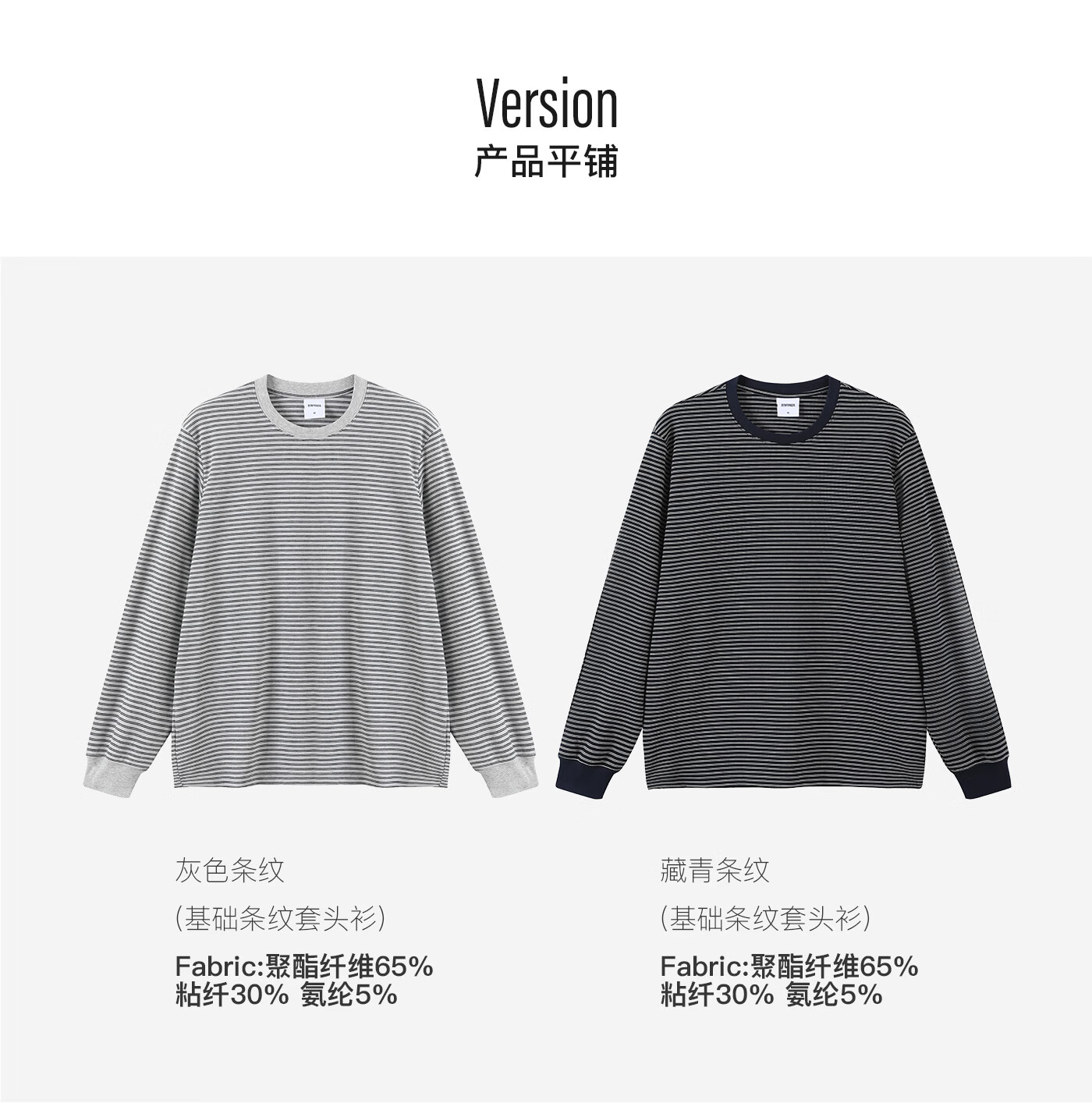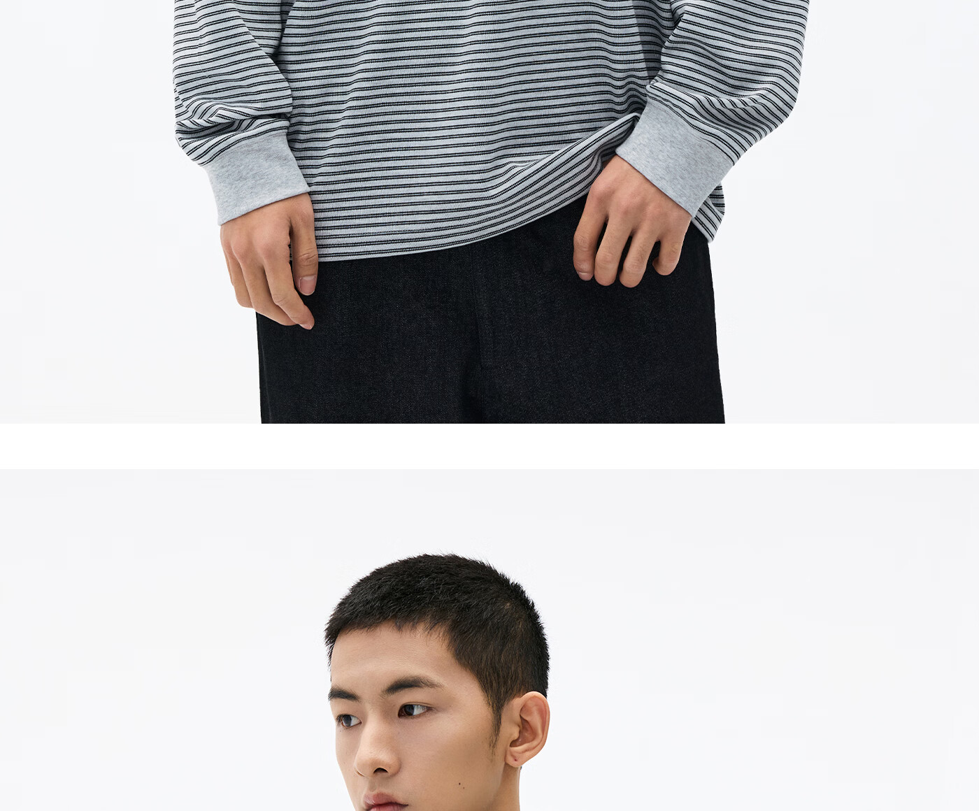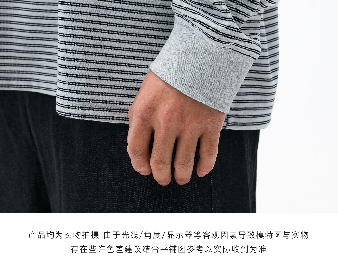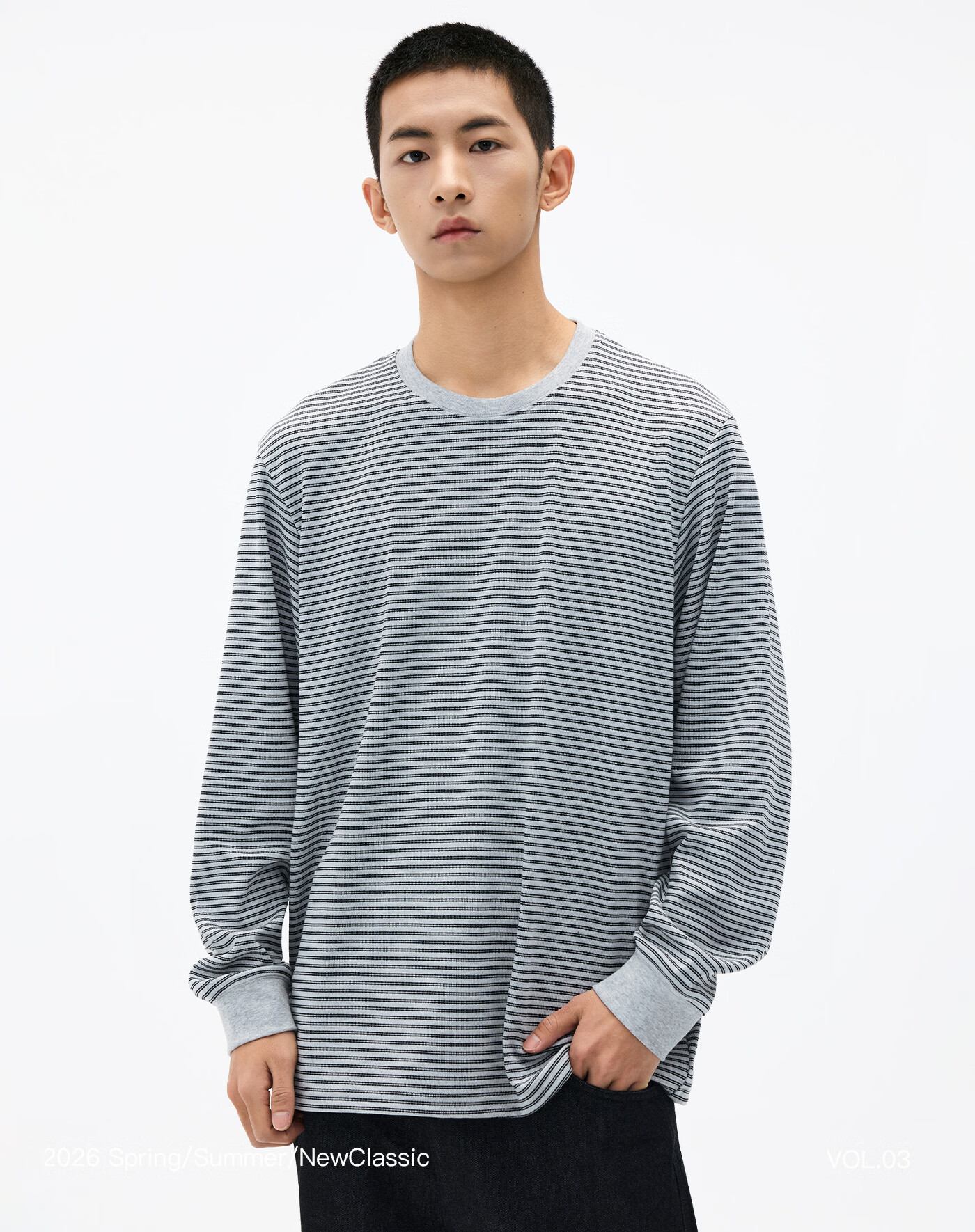 熊猫·本(ben.panda)撞色细条纹圆领长袖T恤男款高弹宽松休闲上衣2026春季 灰色条纹 S