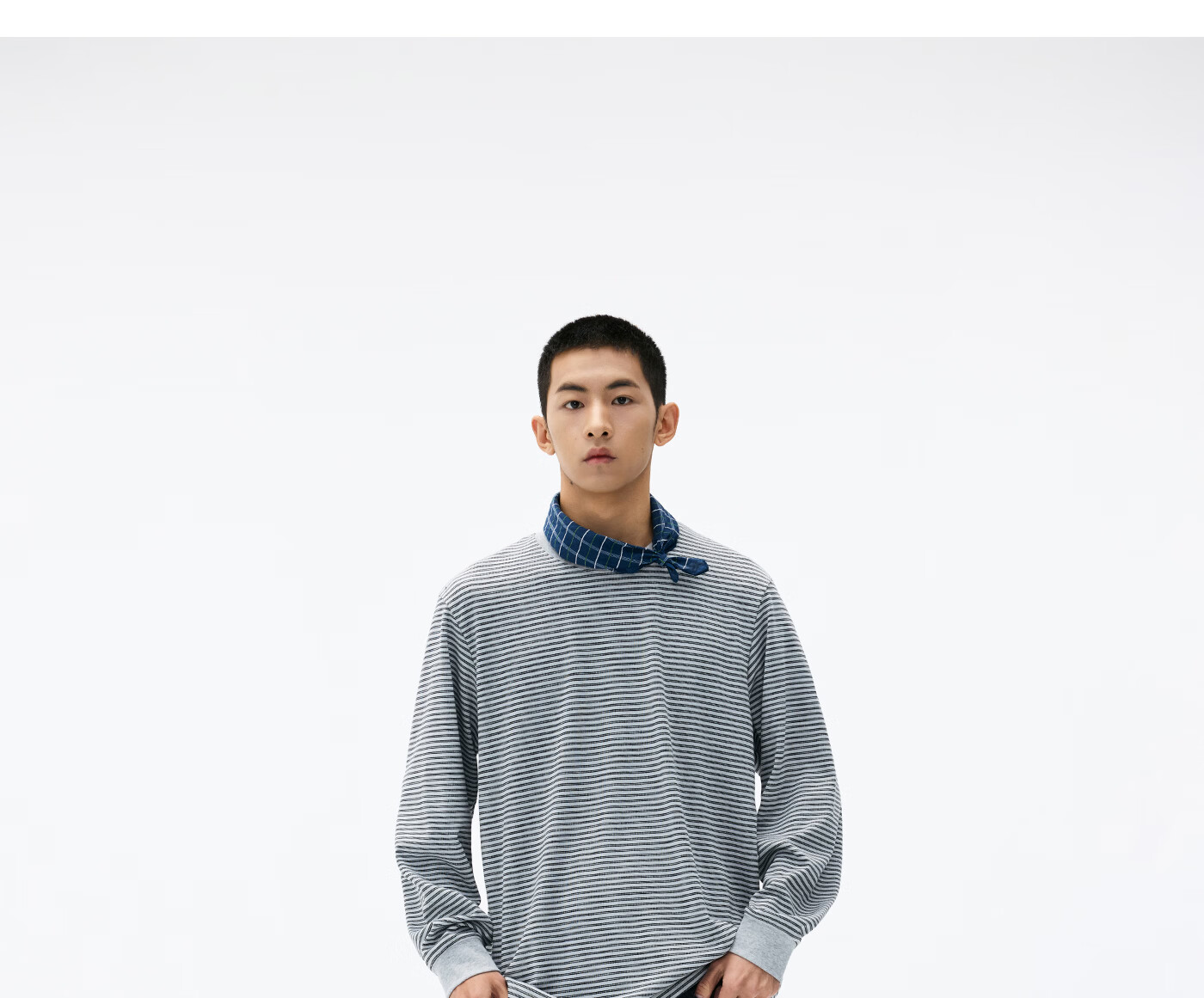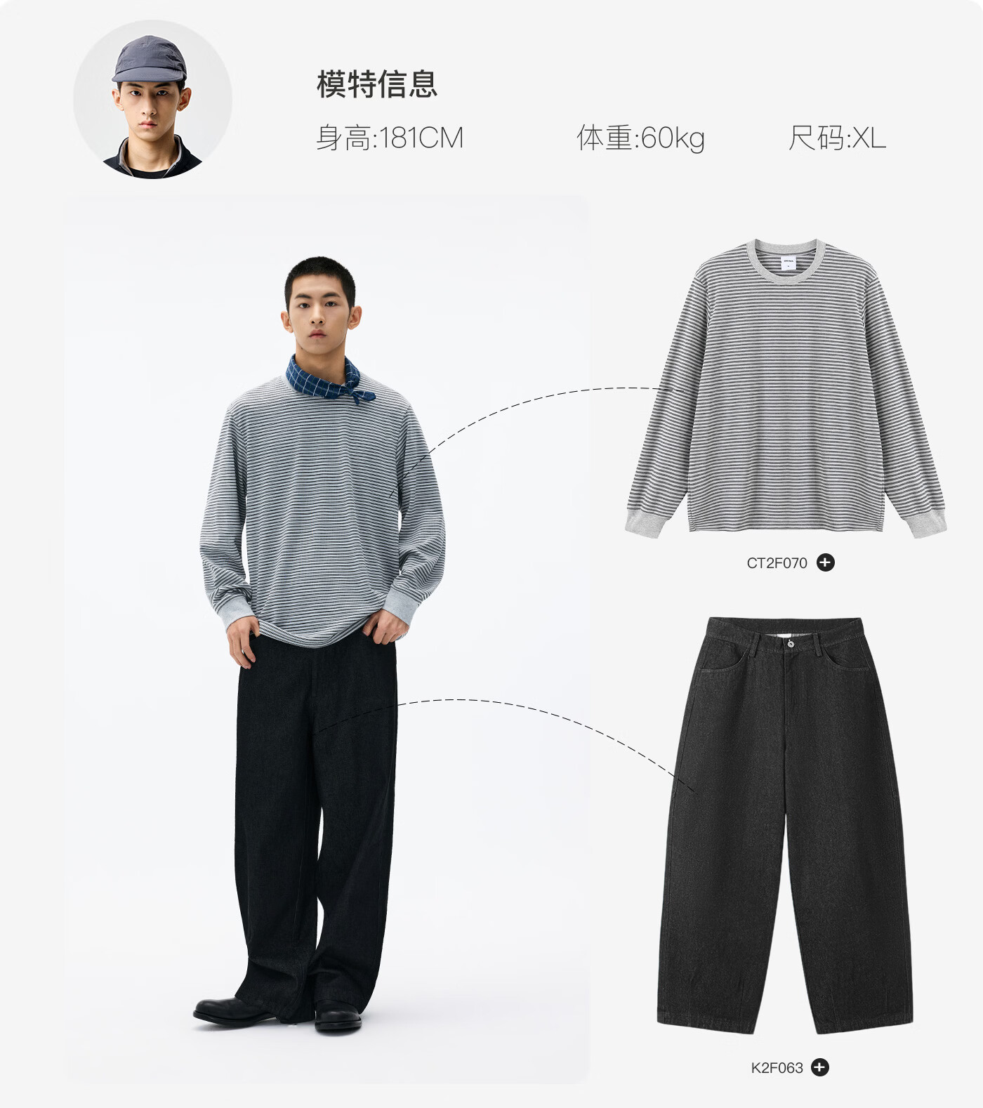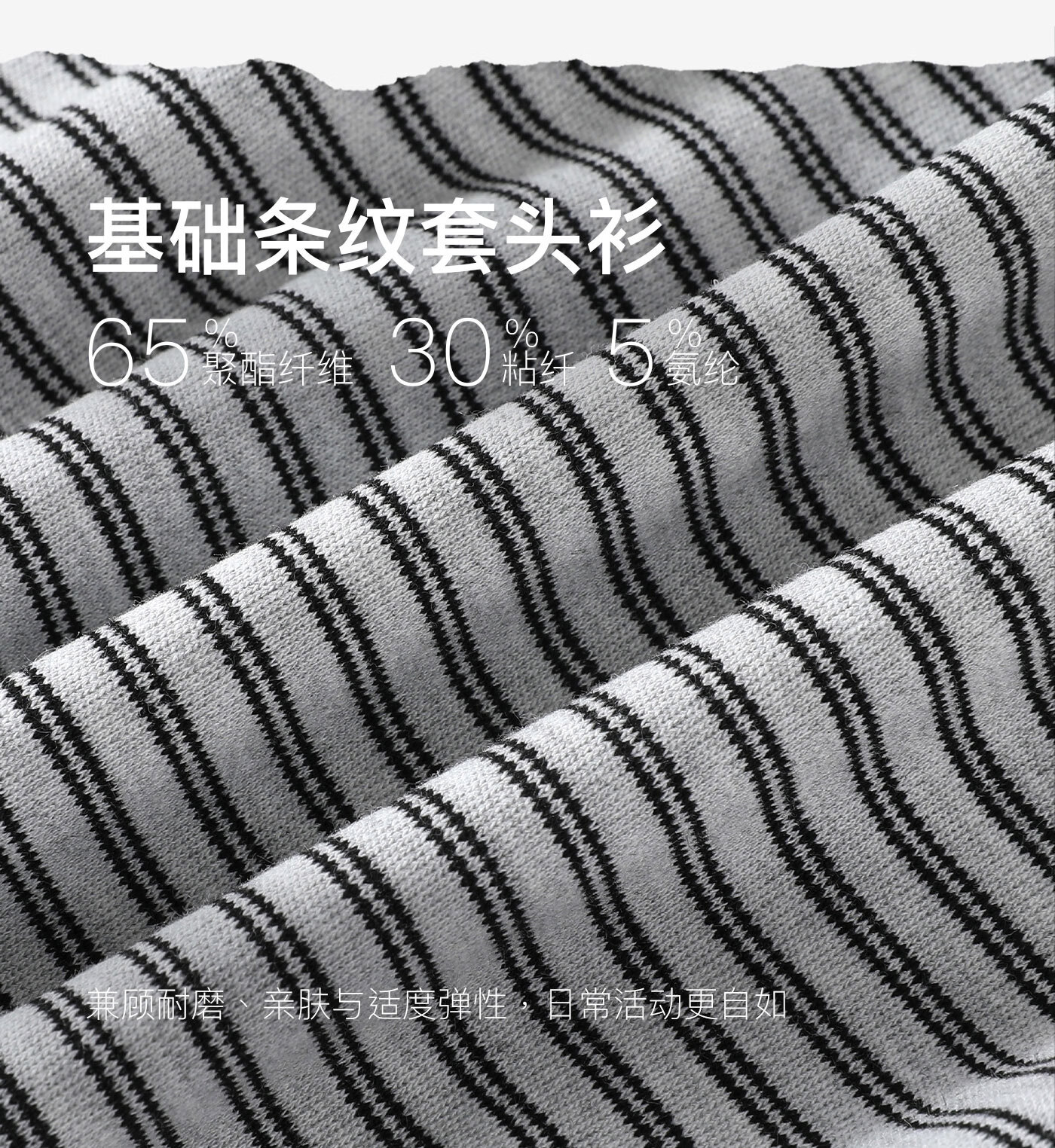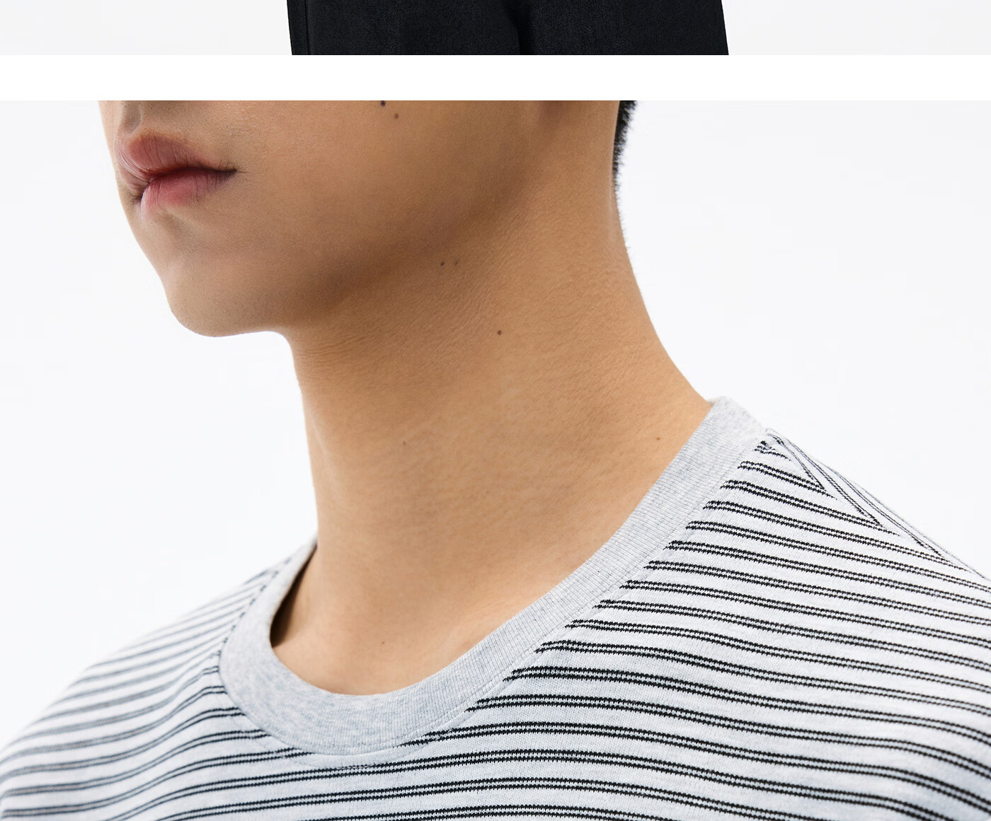 熊猫·本(ben.panda)撞色细条纹圆领长袖T恤男款高弹宽松休闲上衣2026春季 灰色条纹 S