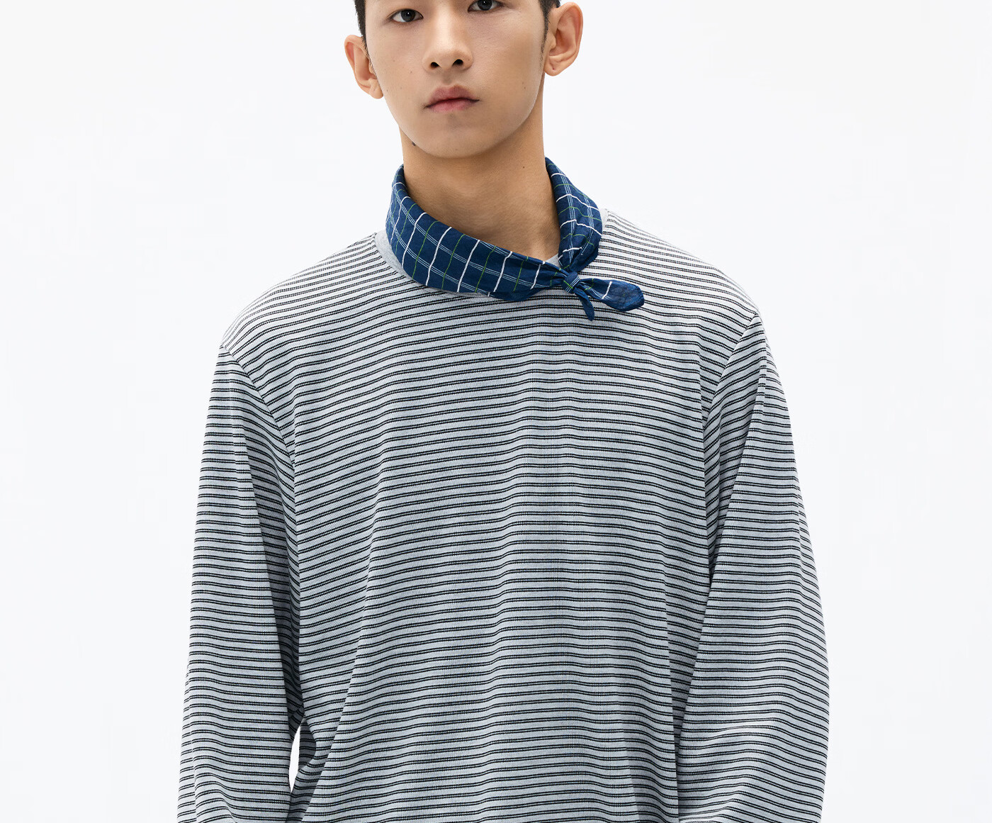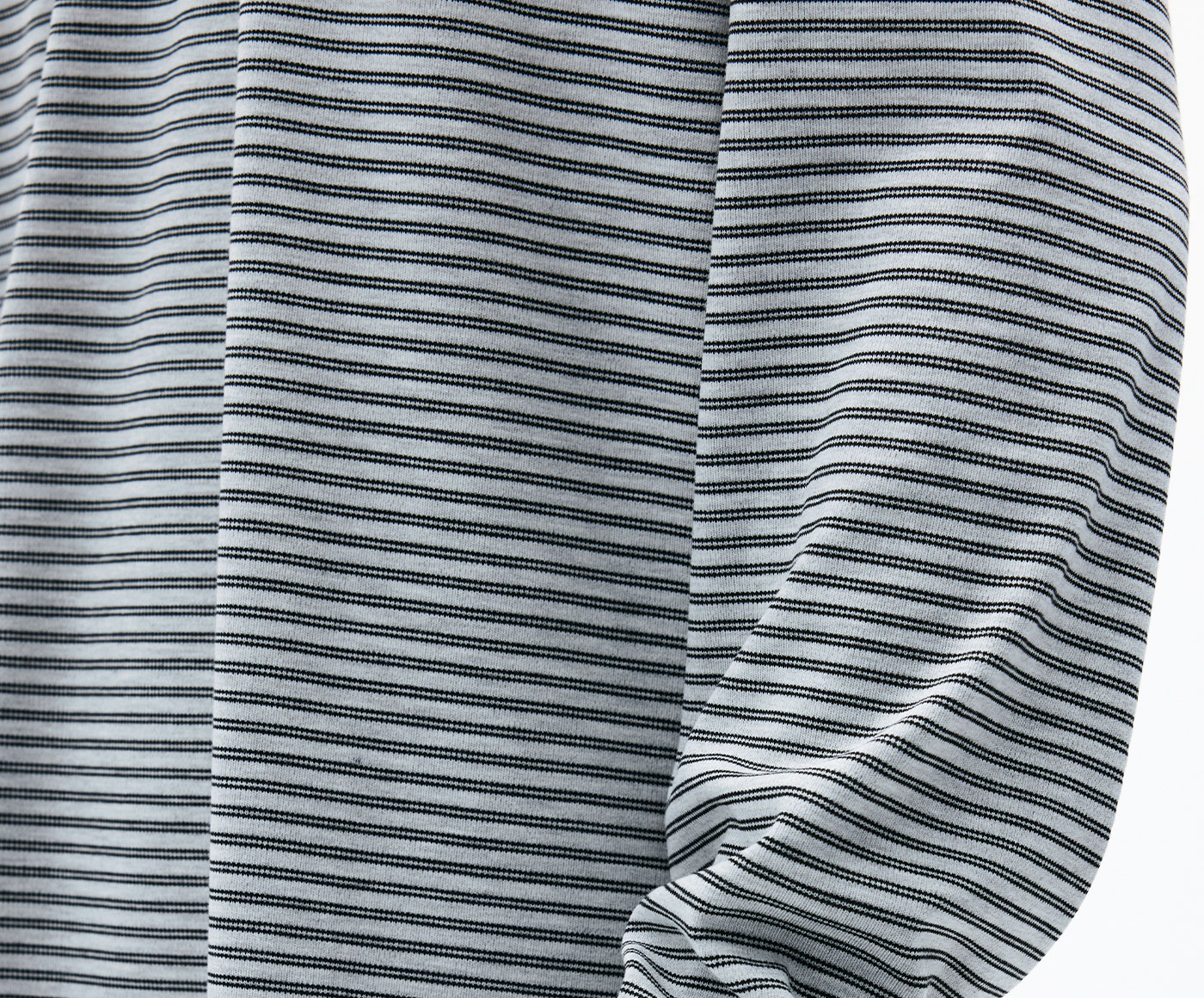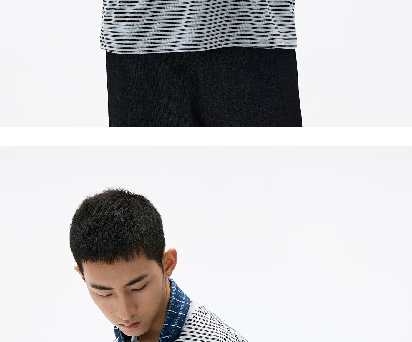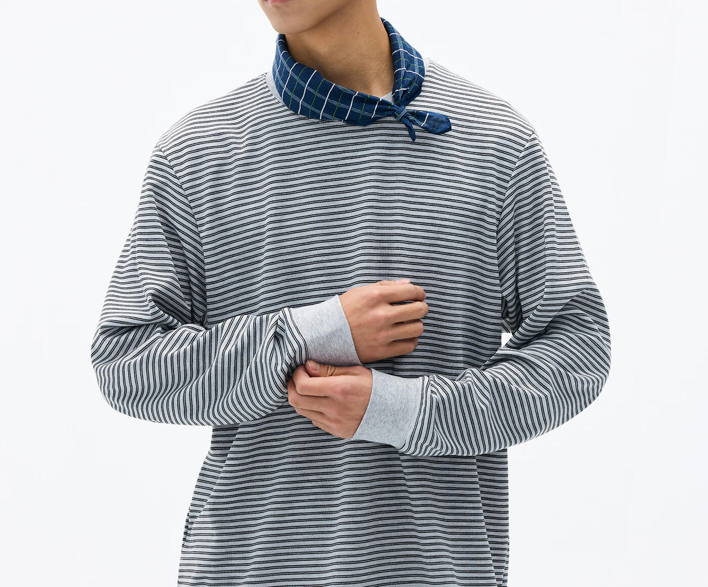 熊猫·本(ben.panda)撞色细条纹圆领长袖T恤男款高弹宽松休闲上衣2026春季 灰色条纹 S