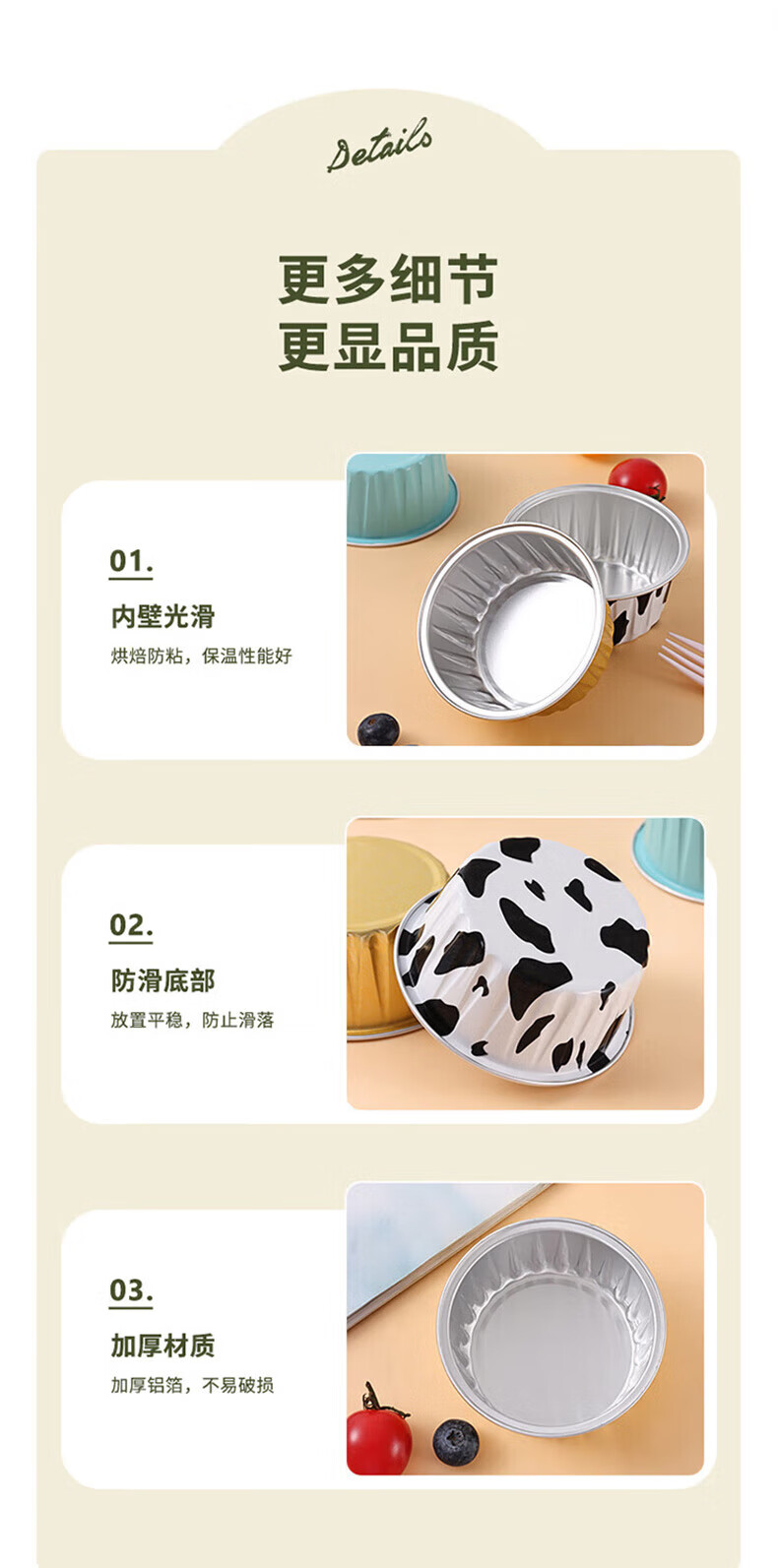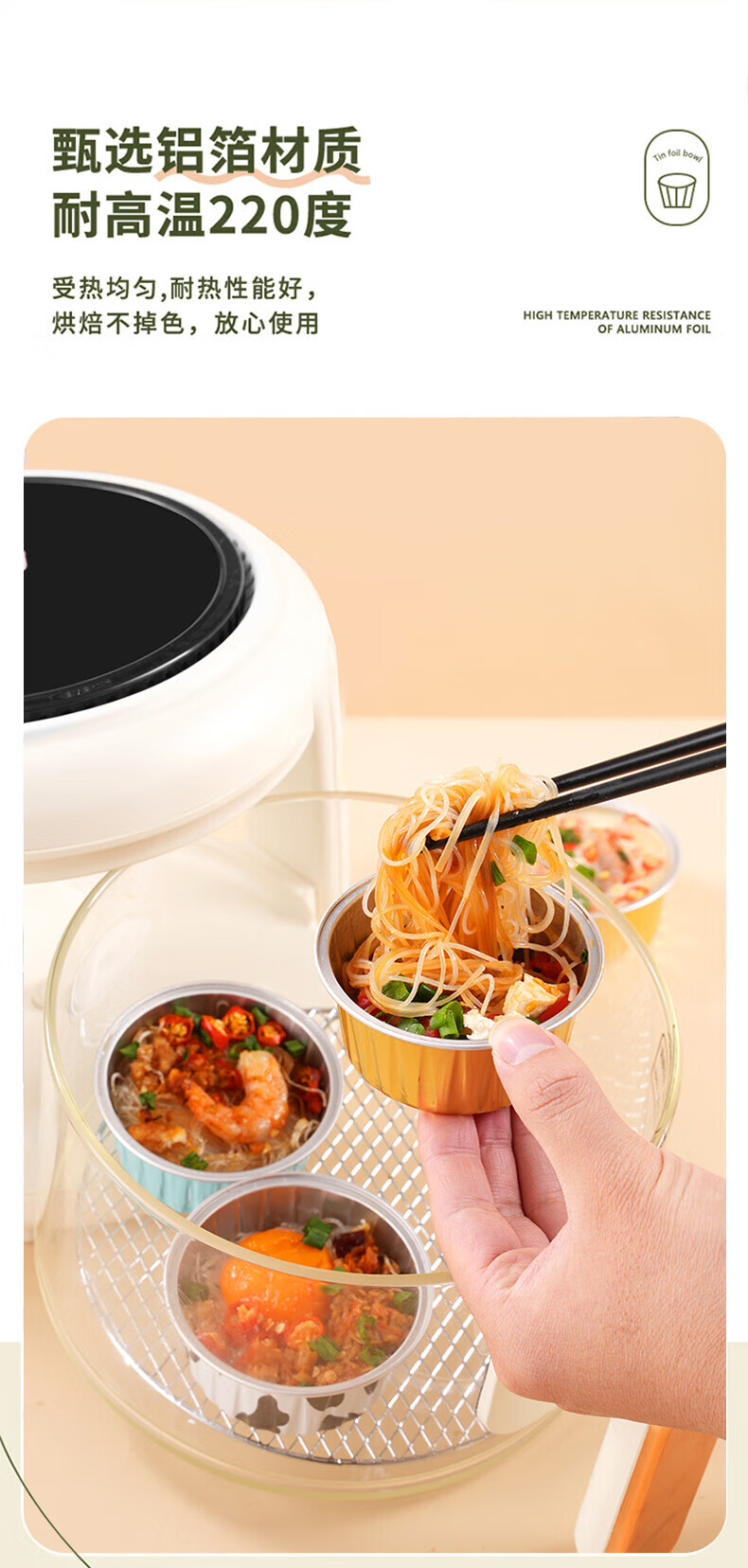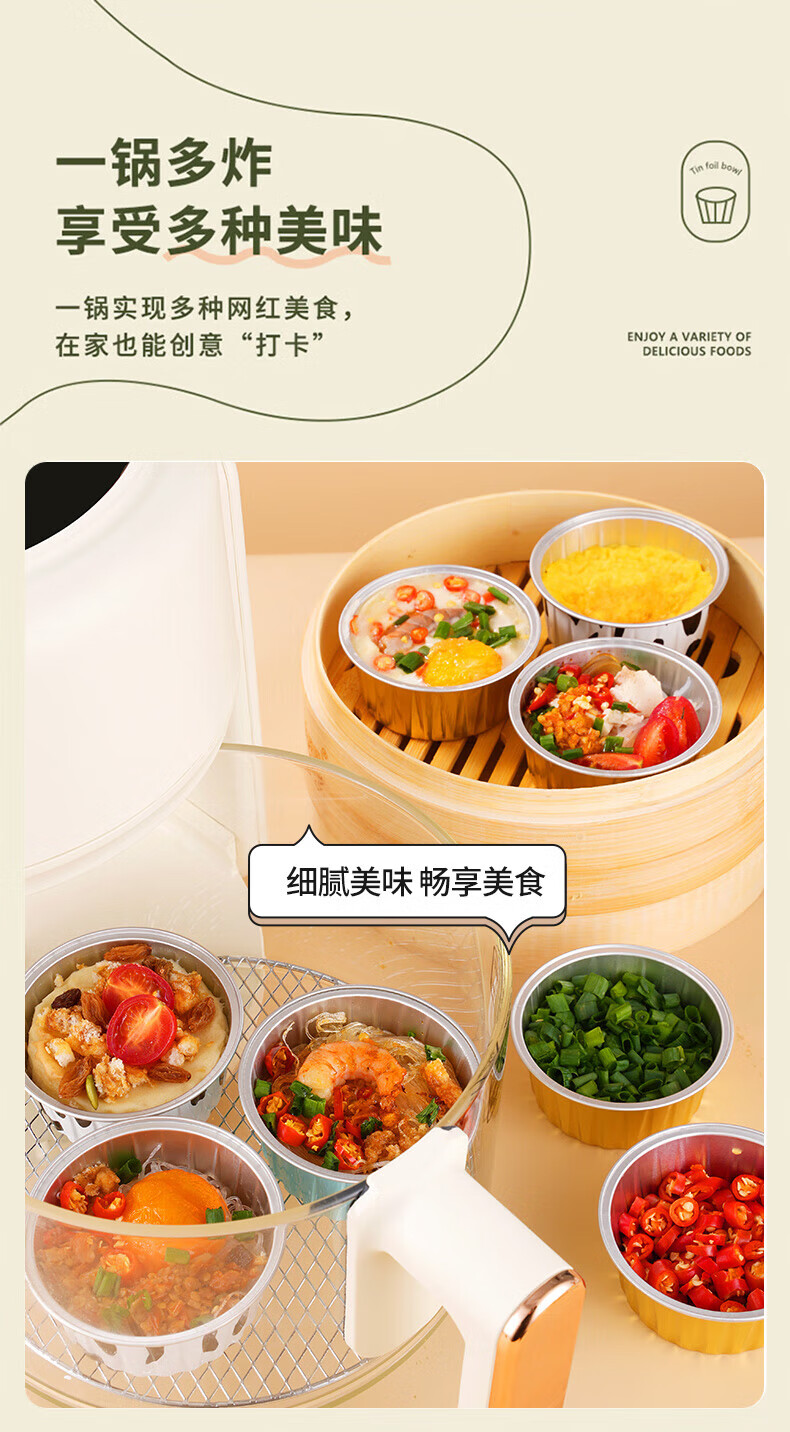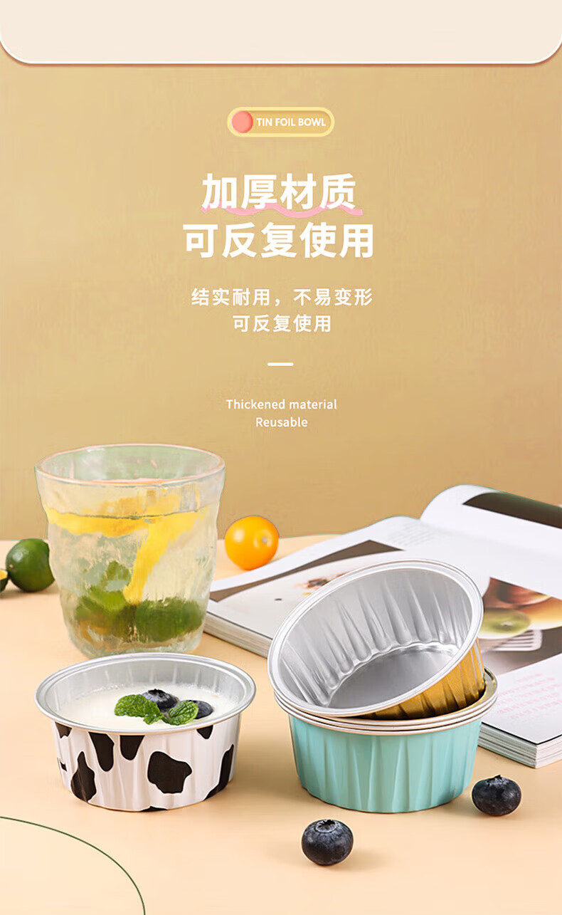 美进家(MEIJINJIA)锡纸碗20只蛋糕模具烘焙布丁蒸发糕模具空气炸锅专用锡纸杯圆形