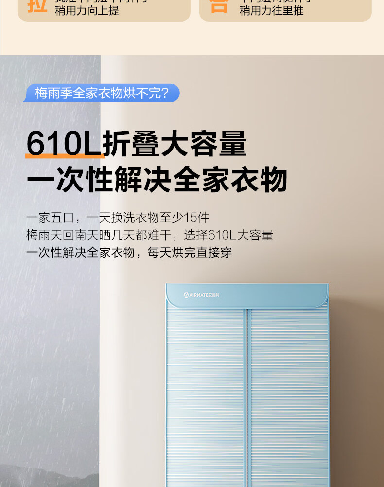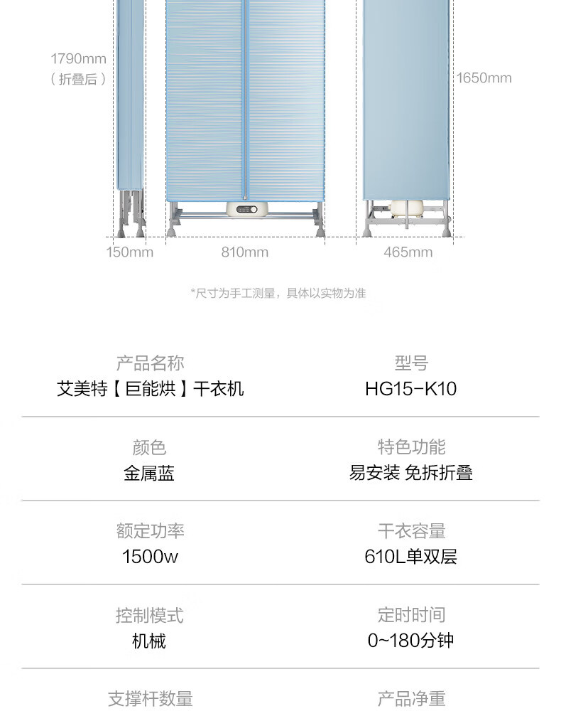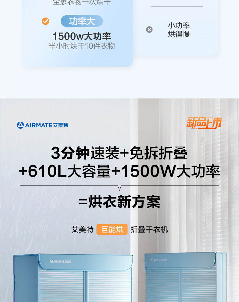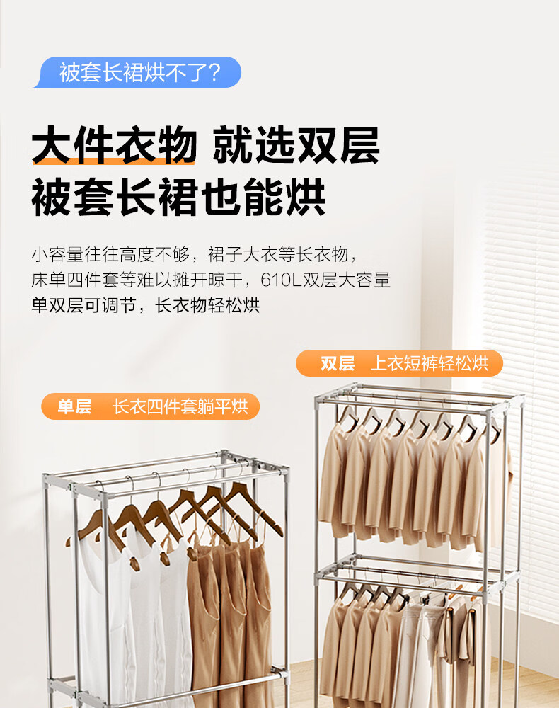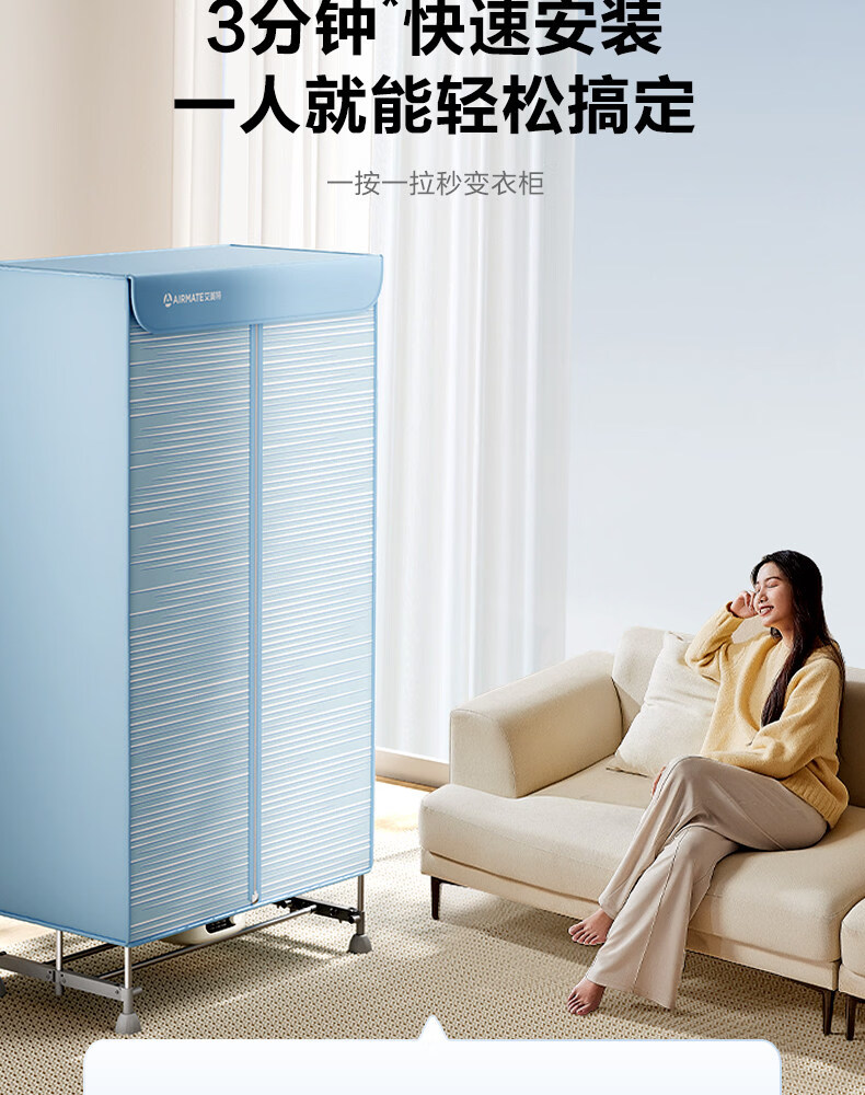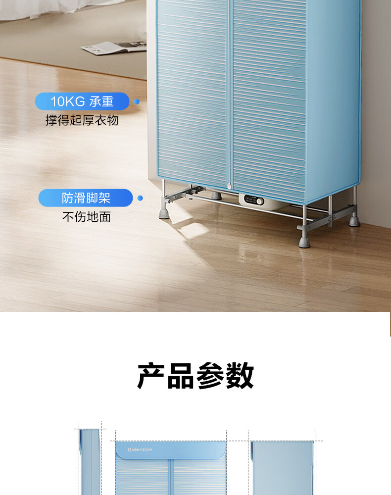 艾美特(AIRMATE)烘干机家用小型烘衣服双层除菌大容量610L可折叠衣柜式干衣机便携烘衣服速烘可定时大功率风干机 折叠旋钮款 1500W速烘 610L K9