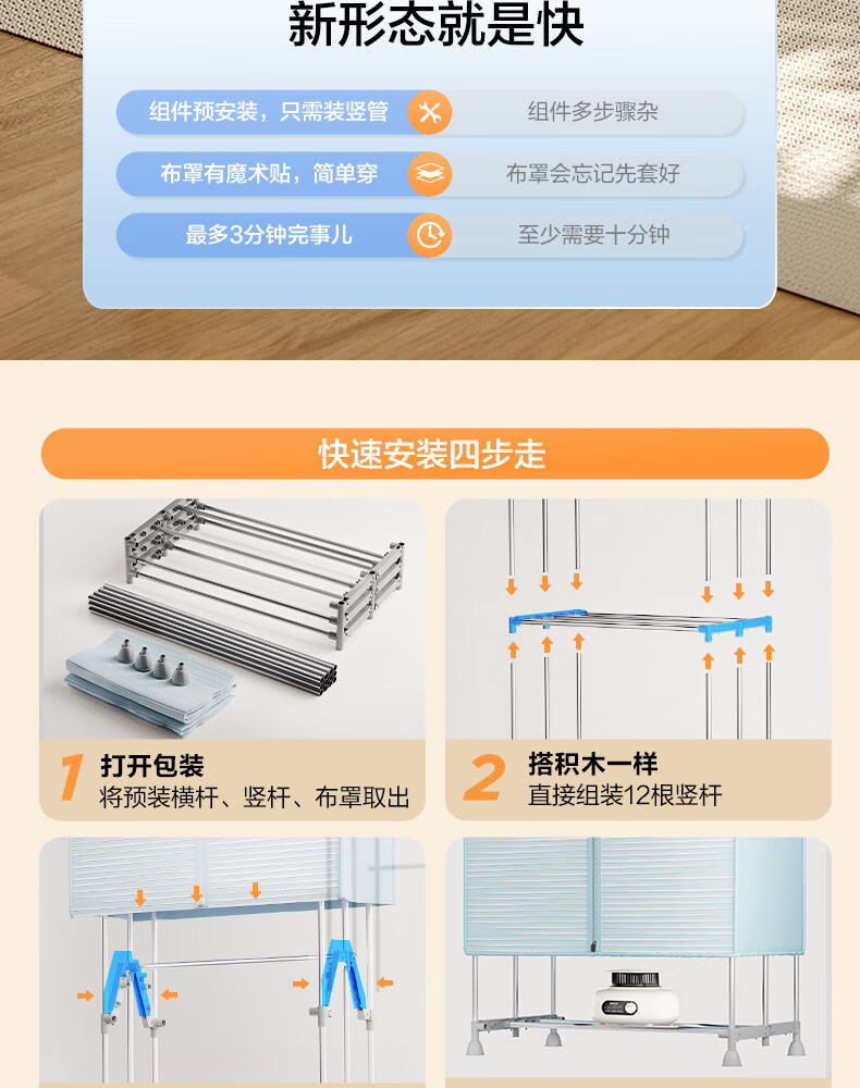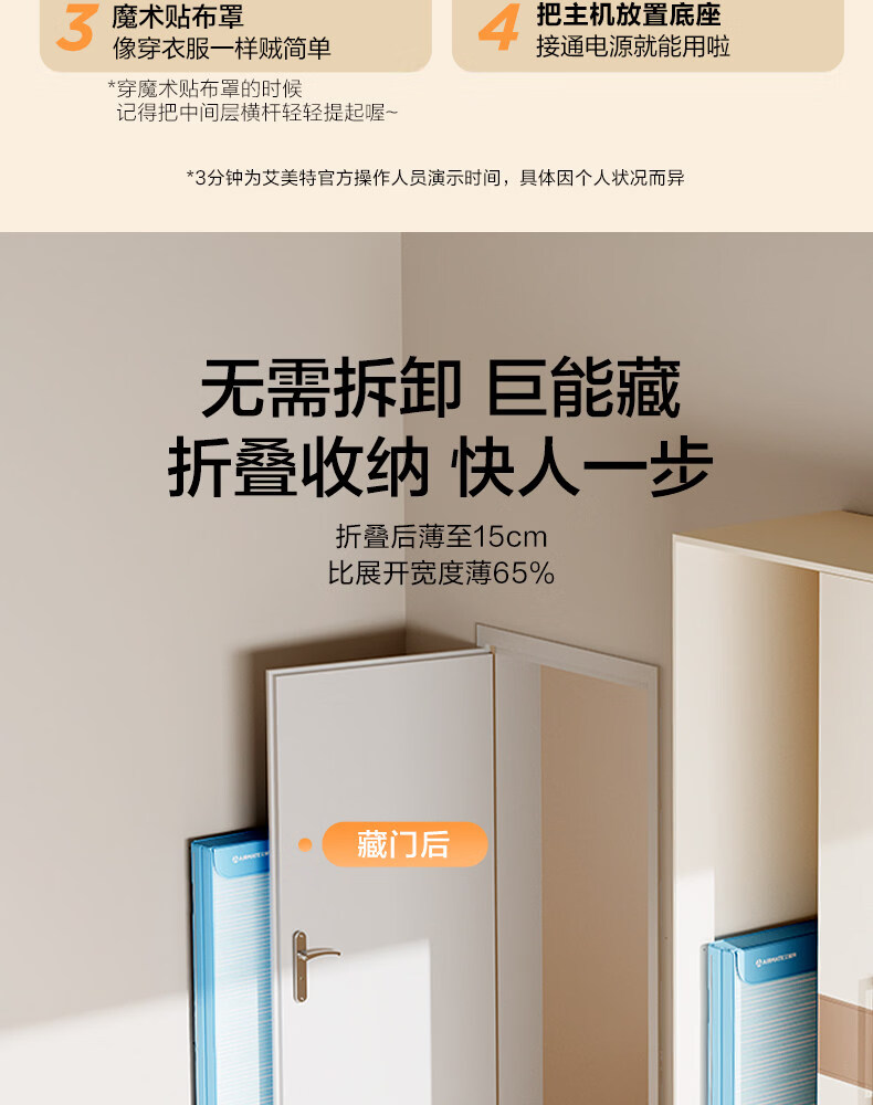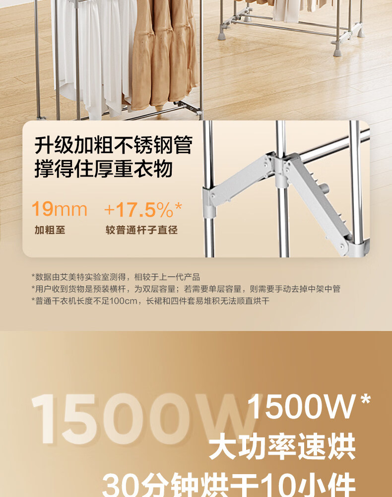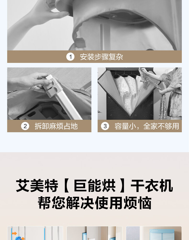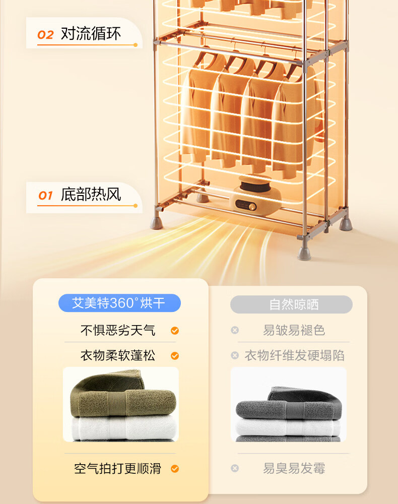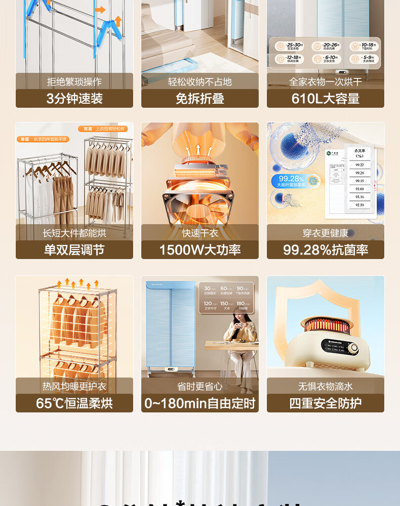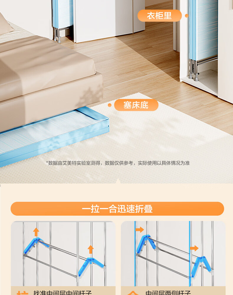 艾美特(AIRMATE)烘干机家用小型烘衣服双层除菌大容量610L可折叠衣柜式干衣机便携烘衣服速烘可定时大功率风干机 折叠旋钮款 1500W速烘 610L K9