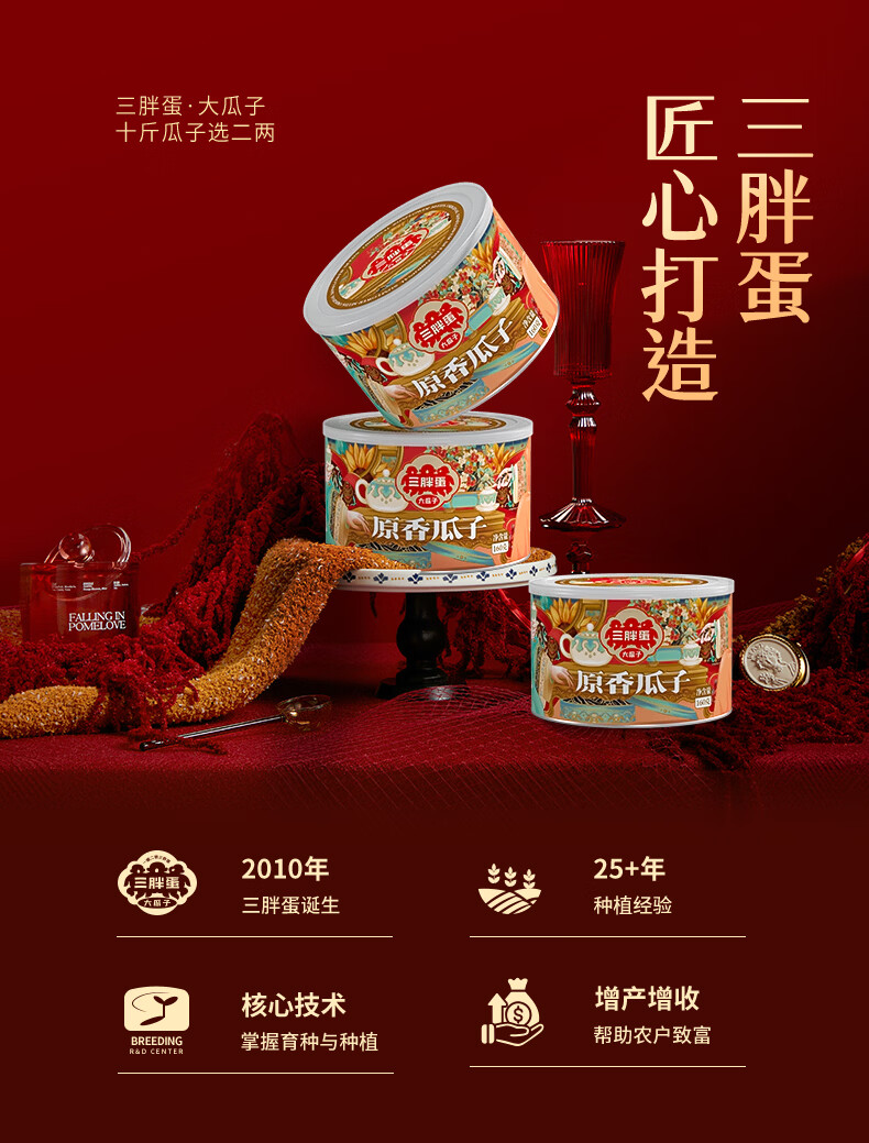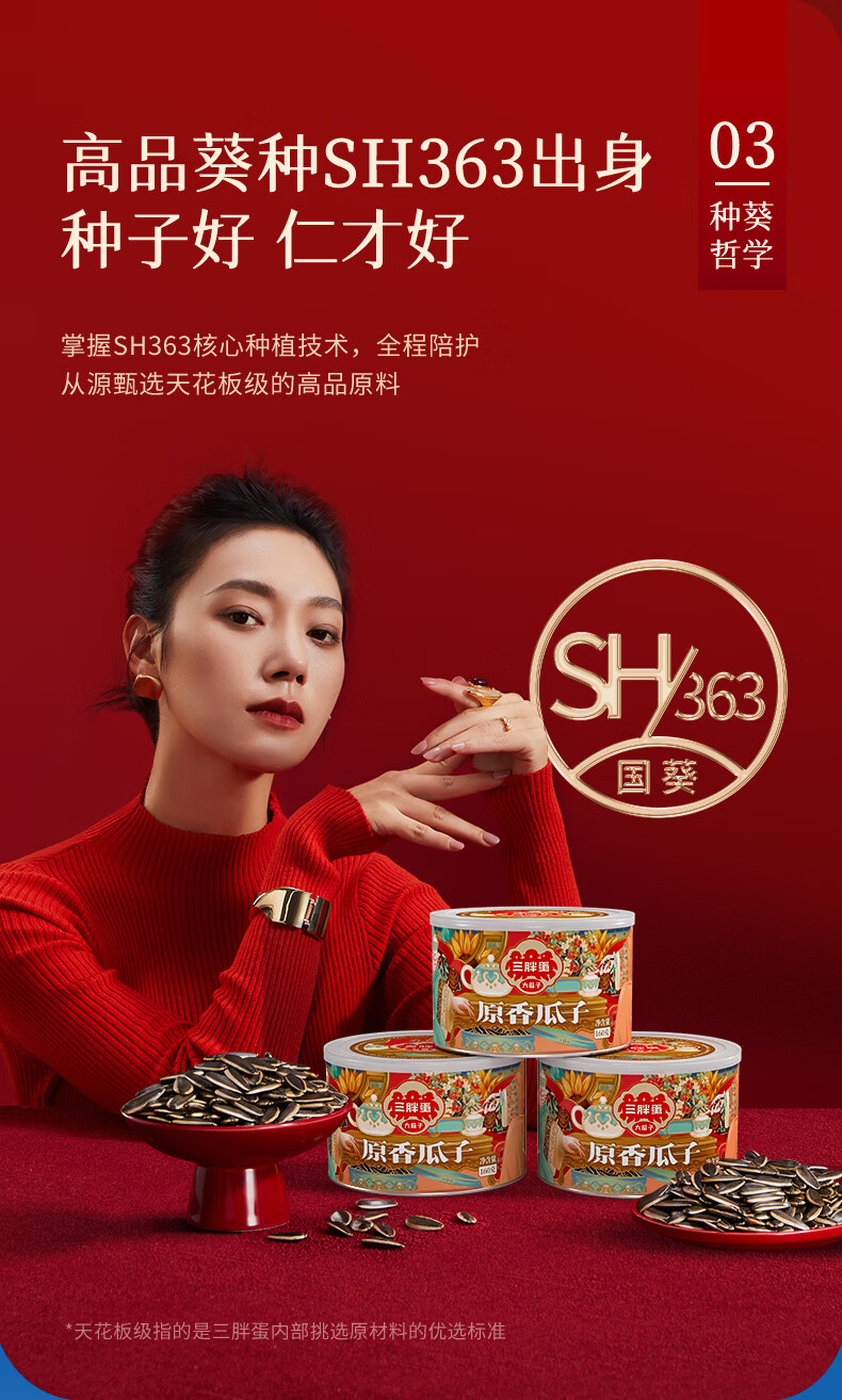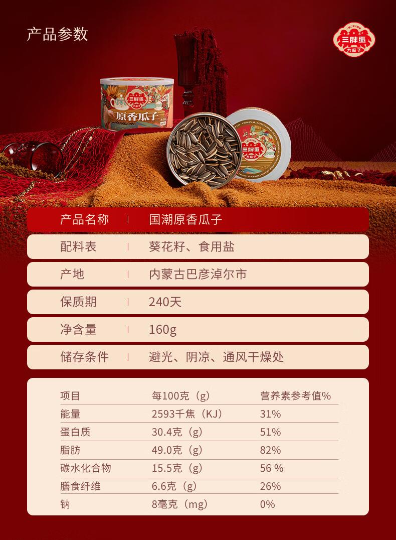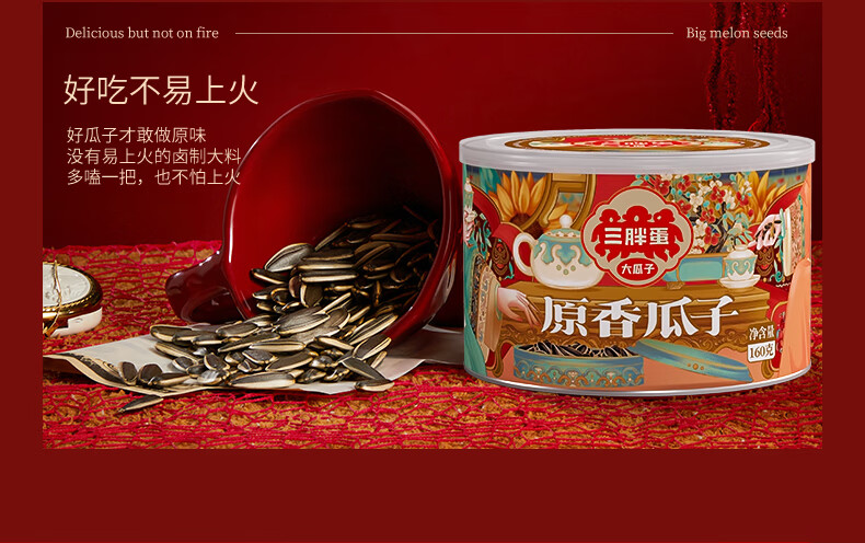 三胖蛋原味瓜子160g罐装 坚果炒货大颗粒打手葵花籽 解馋办公室小零食
