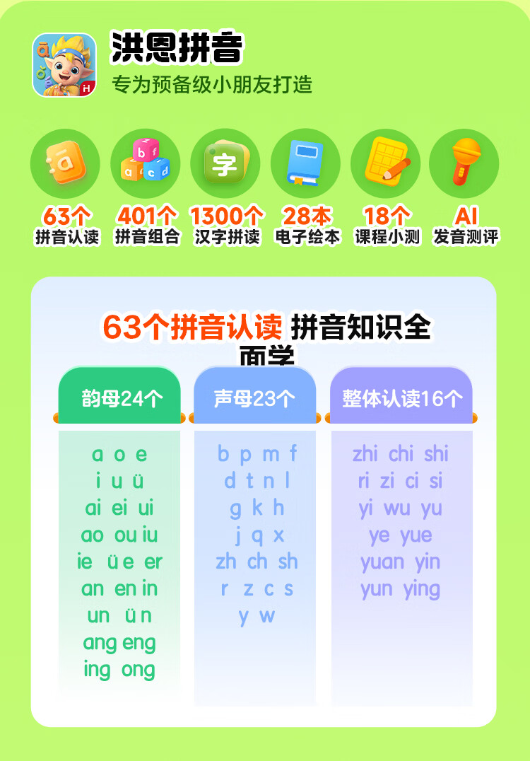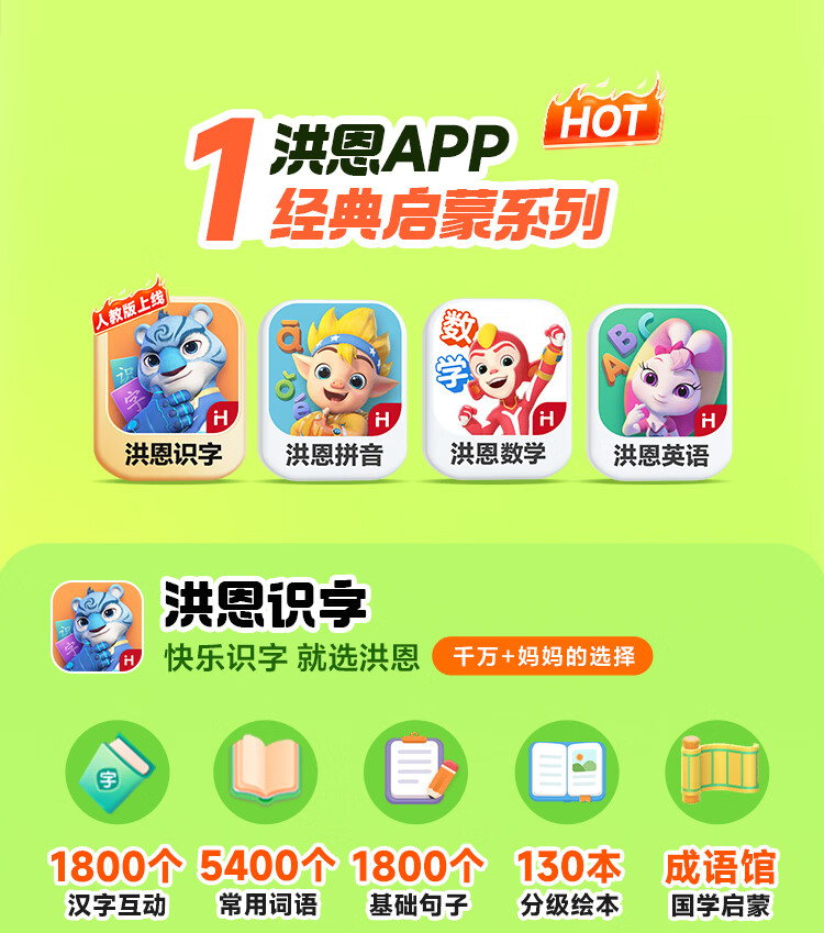 洪恩识字 APP会员终身包 拼音 英语数学编程启蒙儿童早教益智玩具绘本 识字APP会员终身包