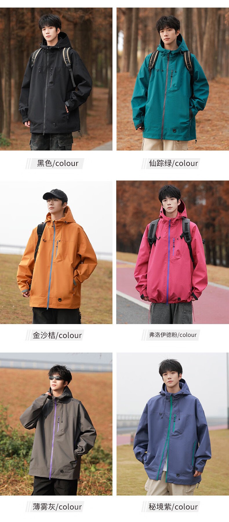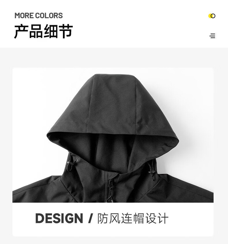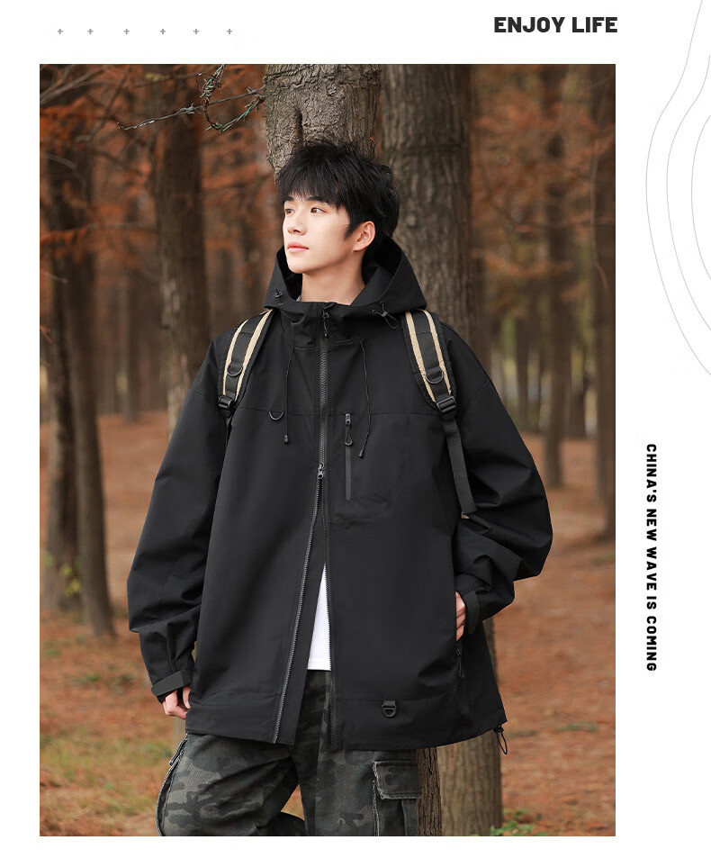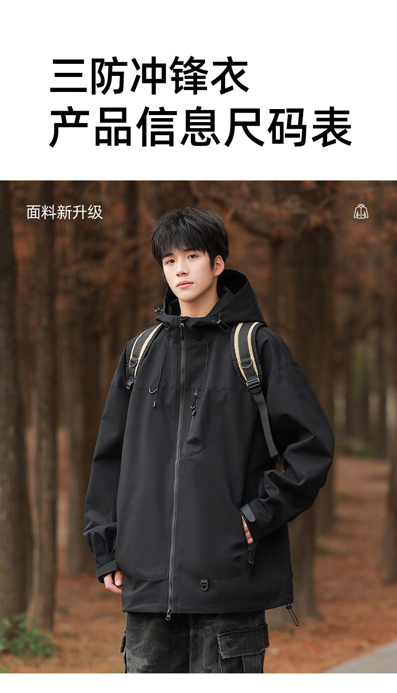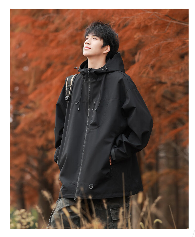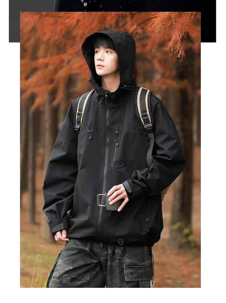 JEEP SPIRIT吉普户外登山冲锋衣男女同款美式新款休闲宽松防水防风外套 黑色【单衣】 3XL (建议体重185-205斤)