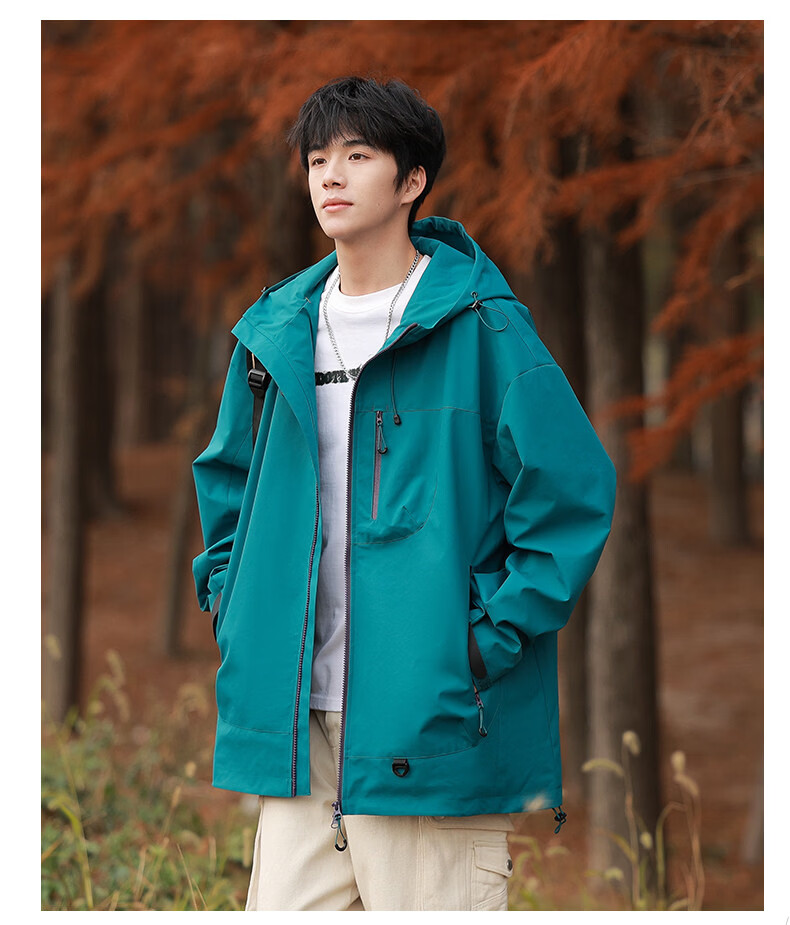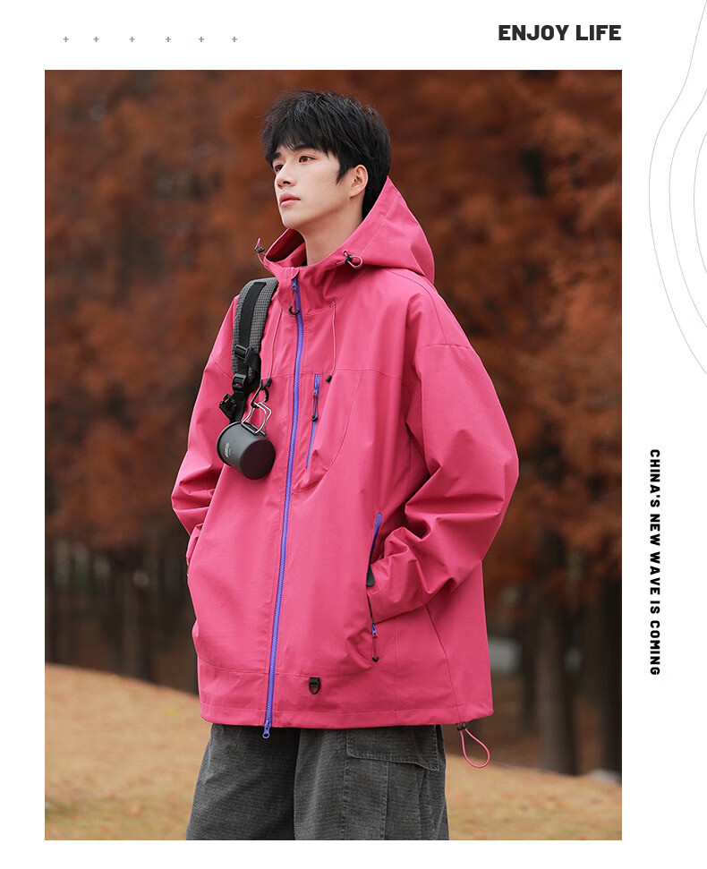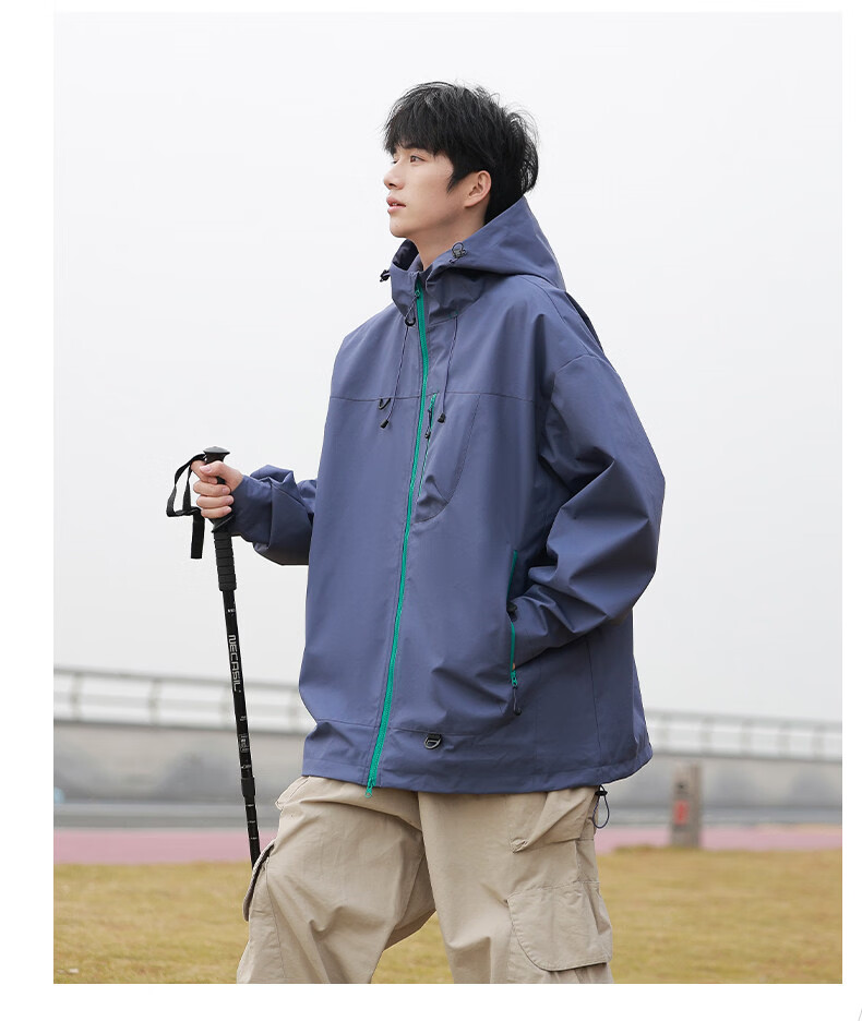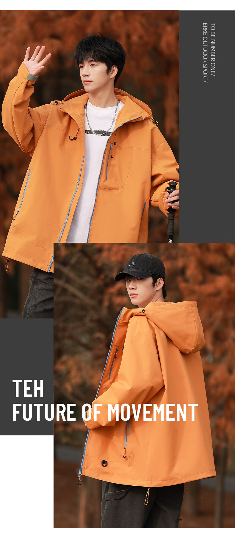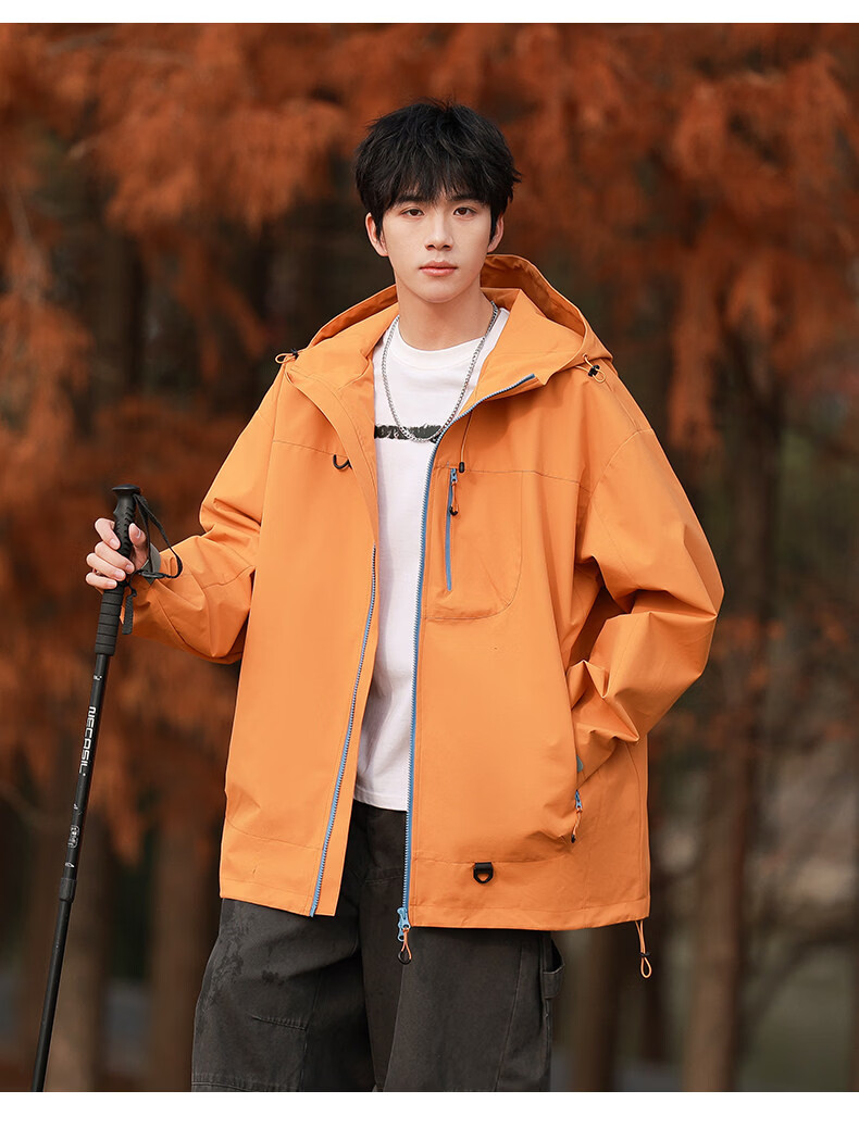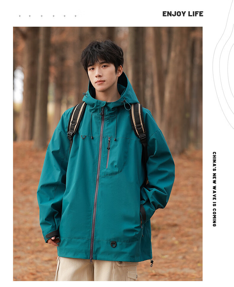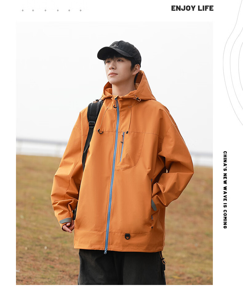JEEP SPIRIT吉普户外登山冲锋衣男女同款美式新款休闲宽松防水防风外套 黑色【单衣】 3XL (建议体重185-205斤)