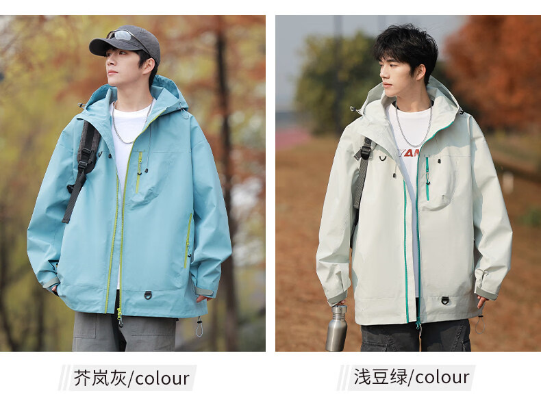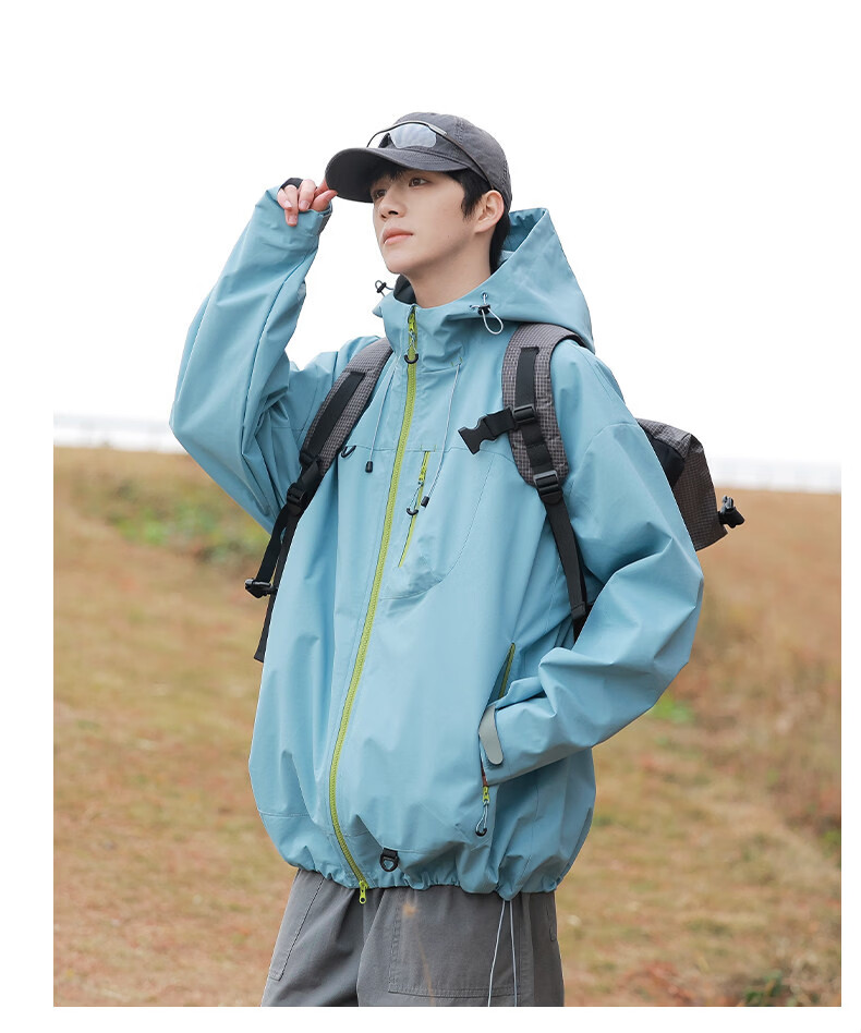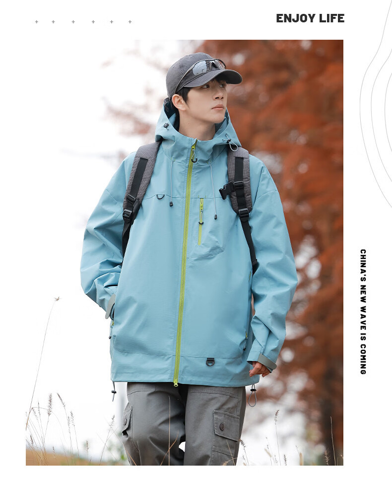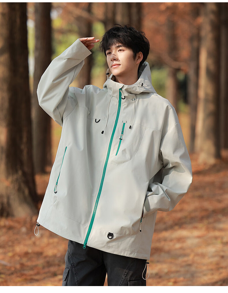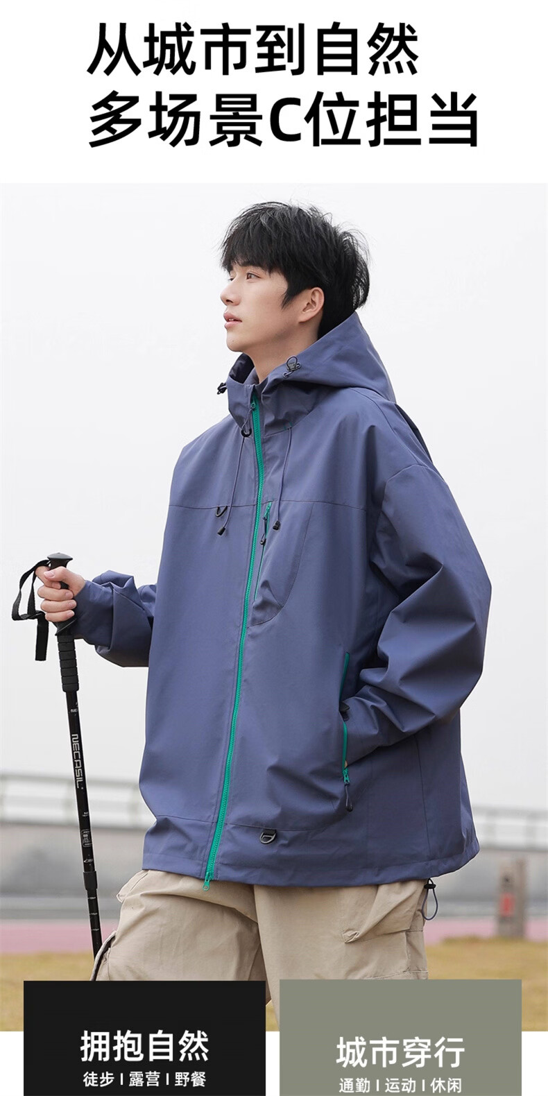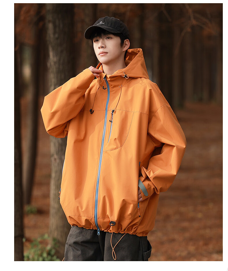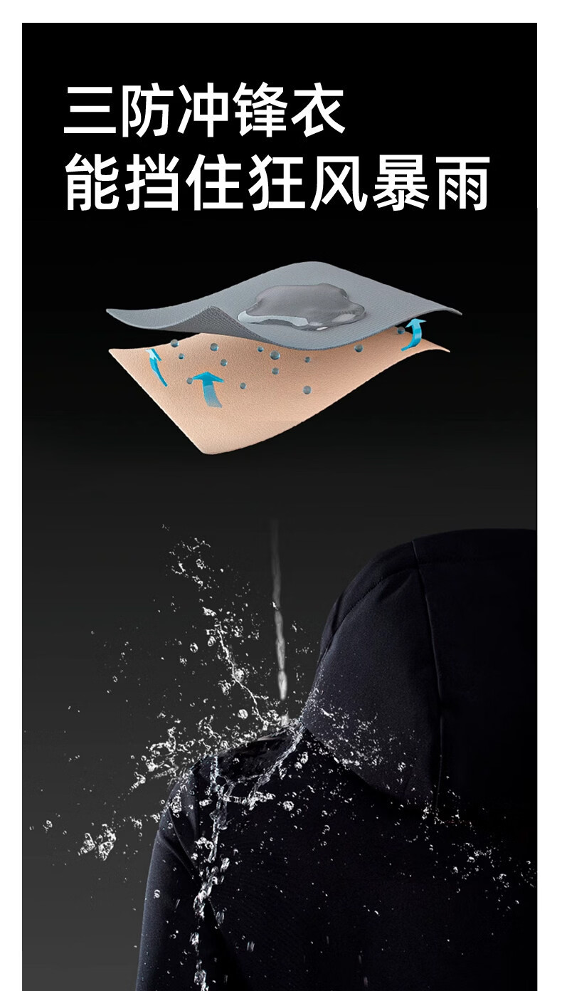 JEEP SPIRIT吉普户外登山冲锋衣男女同款美式新款休闲宽松防水防风外套 黑色【单衣】 3XL (建议体重185-205斤)
