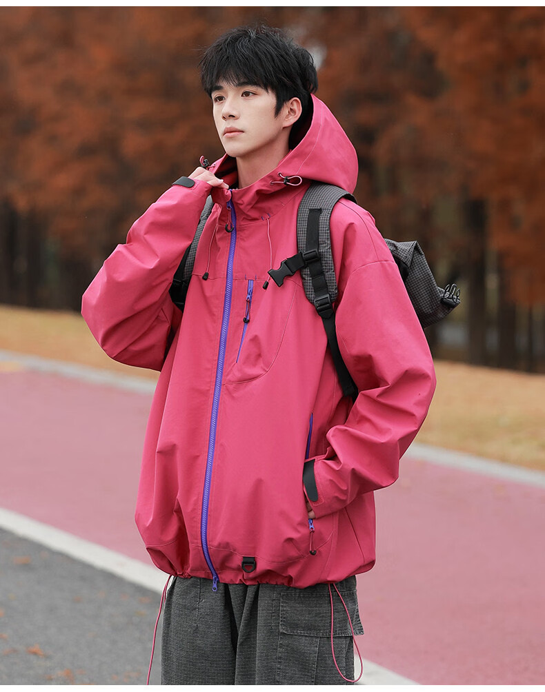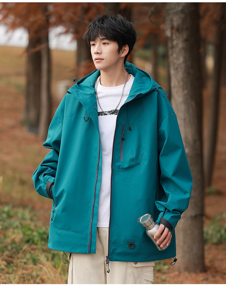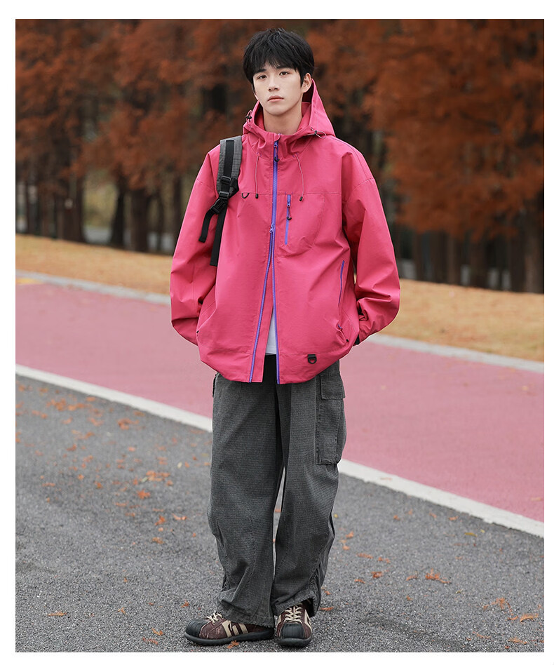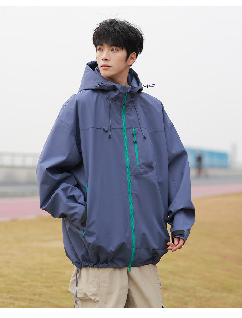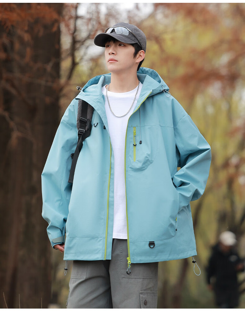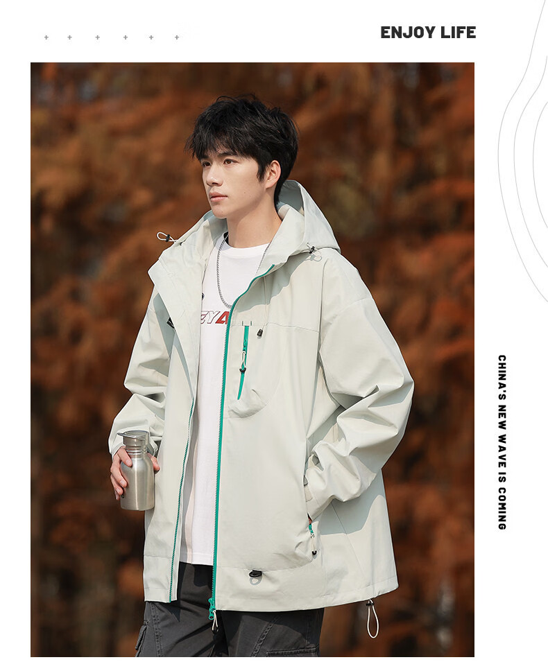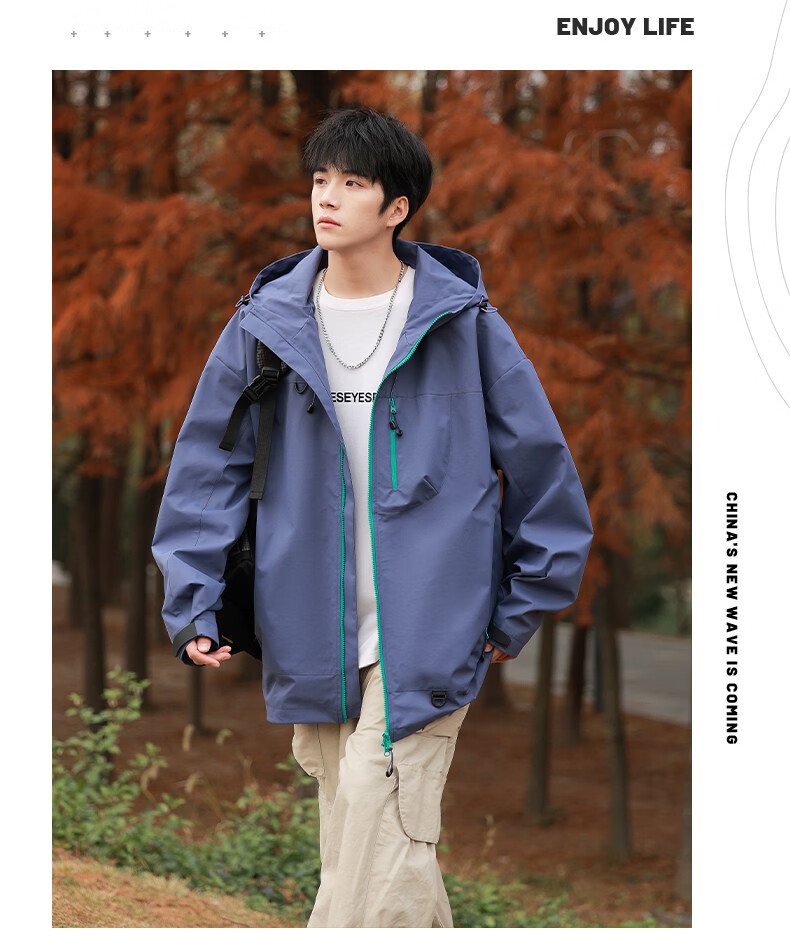 JEEP SPIRIT吉普户外登山冲锋衣男女同款美式新款休闲宽松防水防风外套 黑色【单衣】 3XL (建议体重185-205斤)