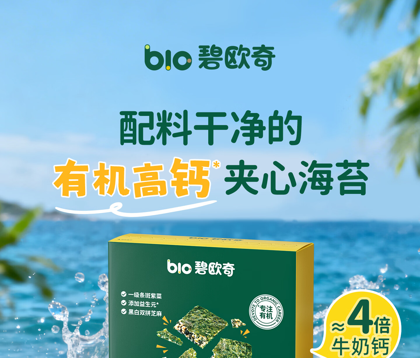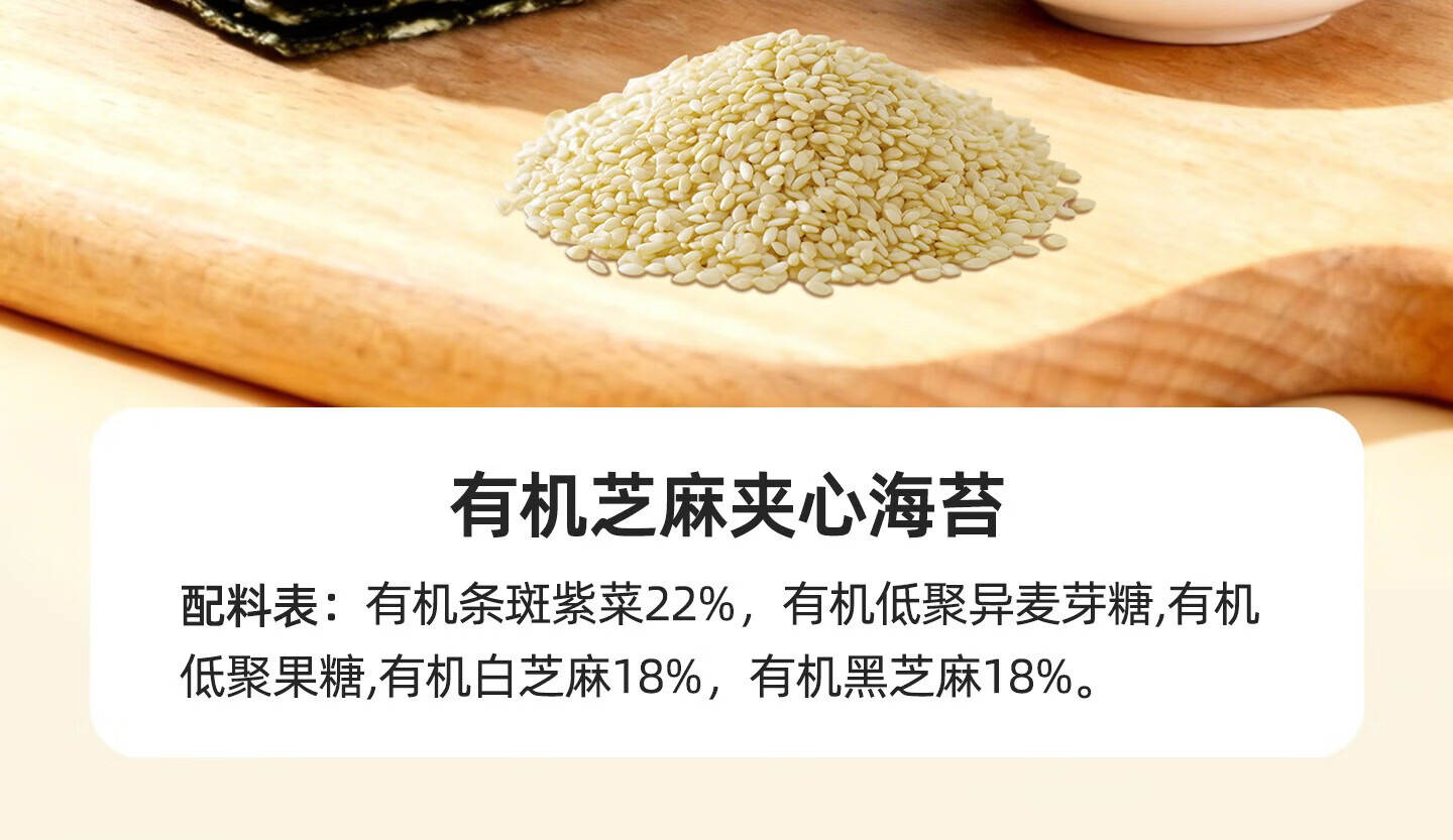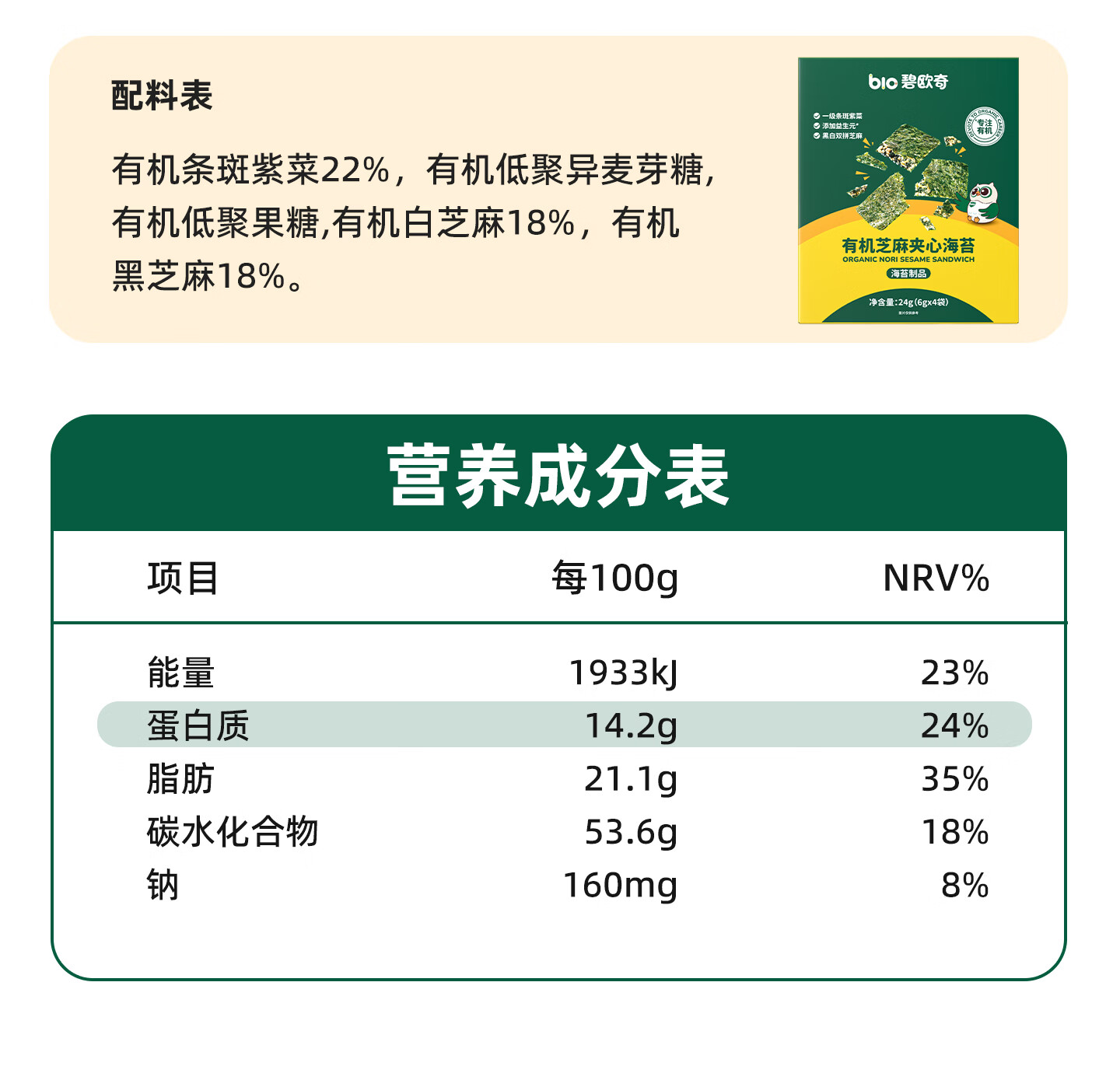 碧欧奇有机芝麻夹心海苔 宝宝零食非油炸海苔脆 儿童拌饭高钙高营养 【3盒】24g*3