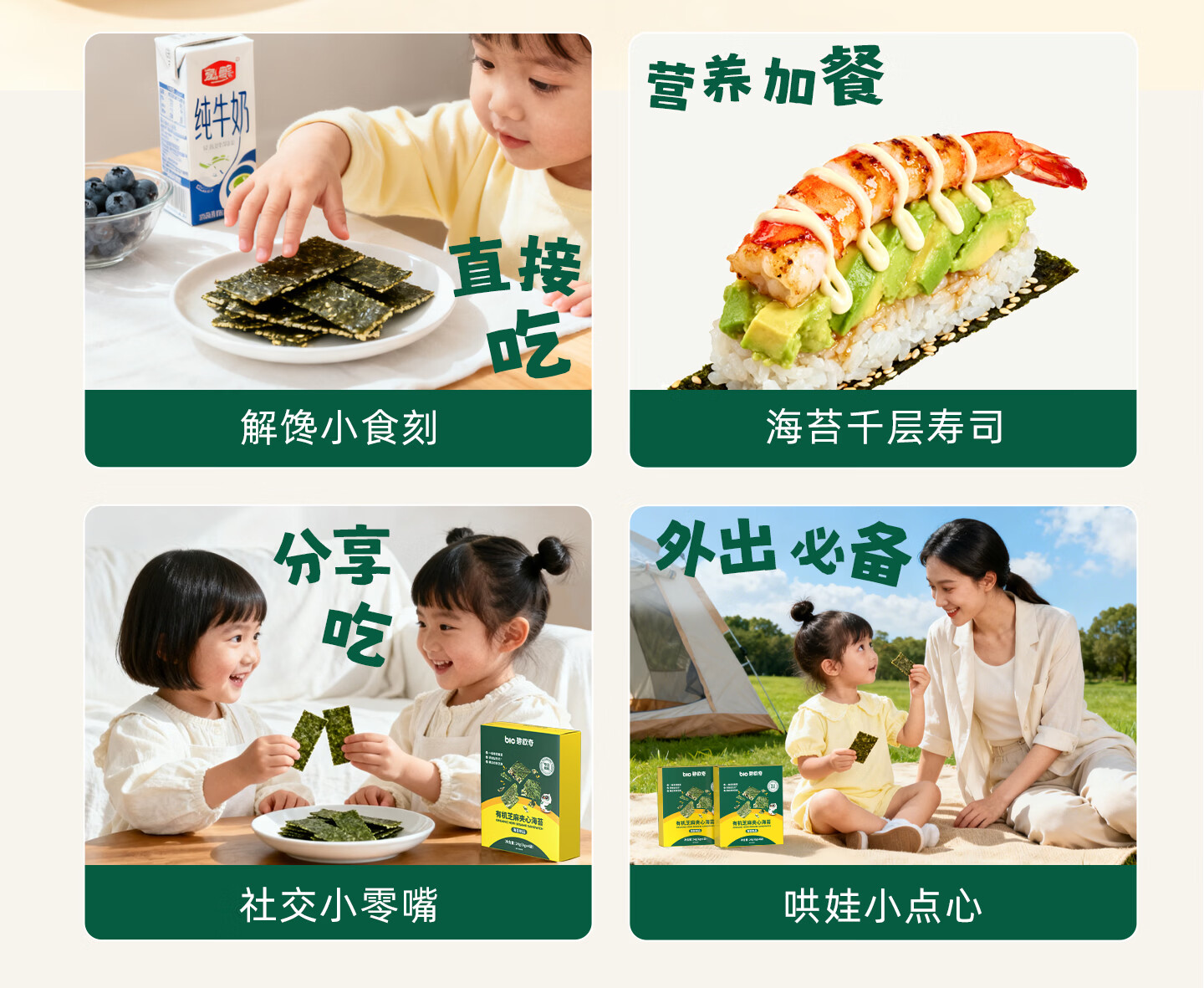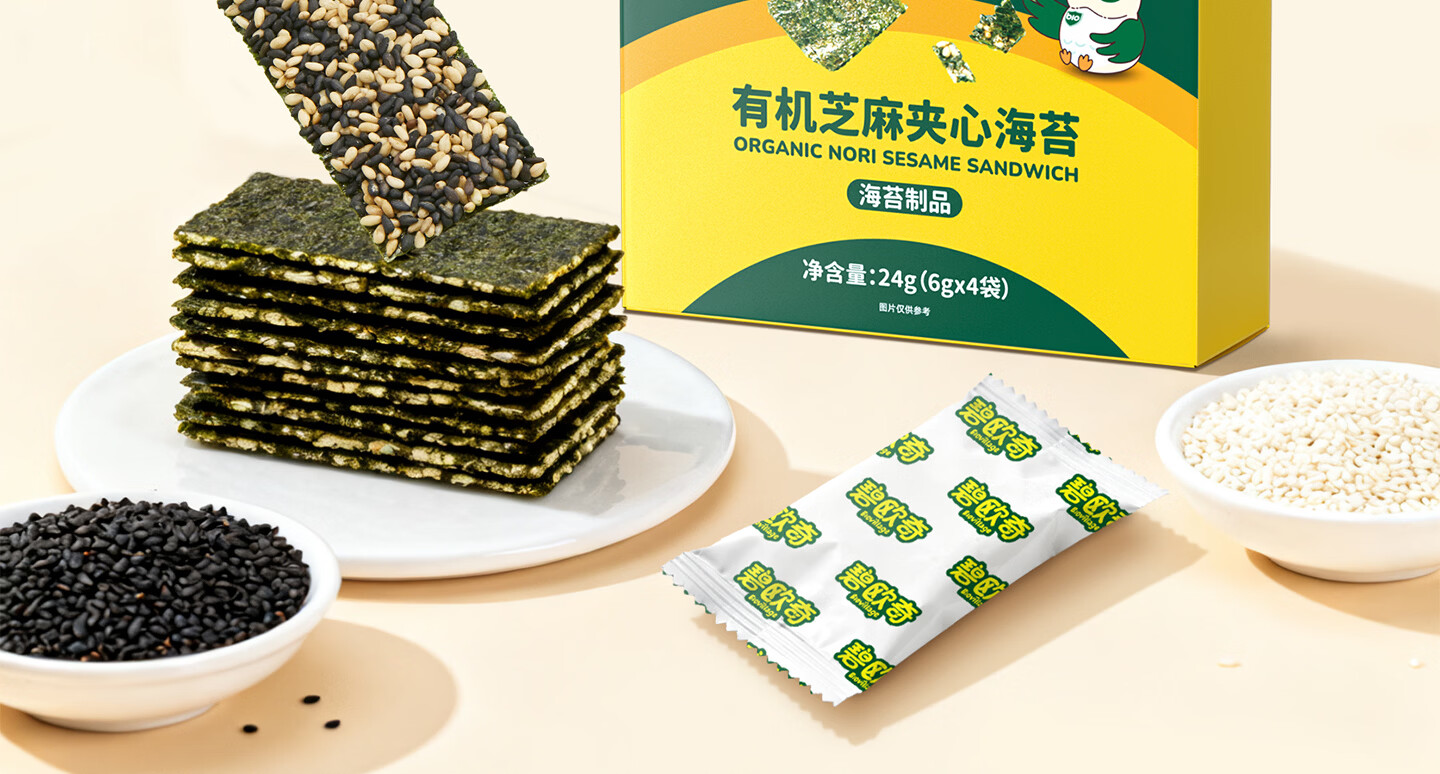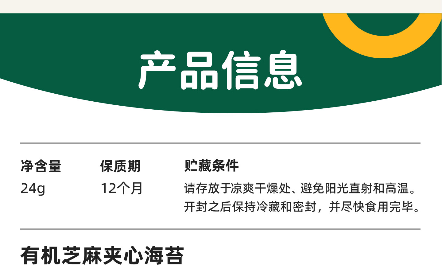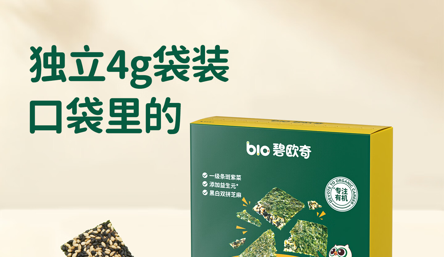 碧欧奇有机芝麻夹心海苔 宝宝零食非油炸海苔脆 儿童拌饭高钙高营养 【3盒】24g*3