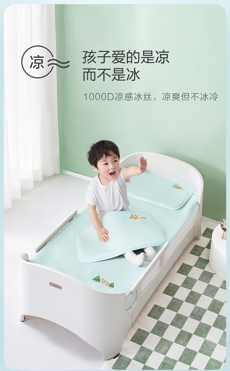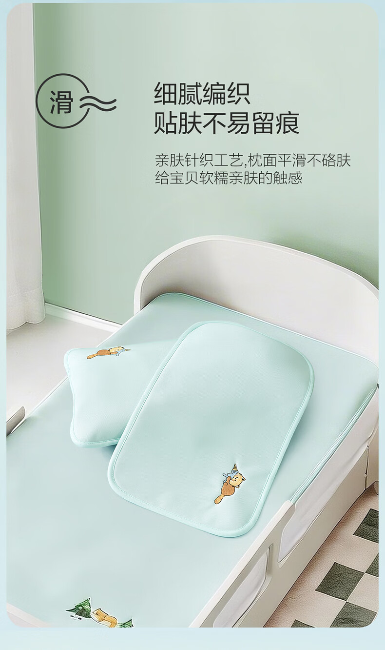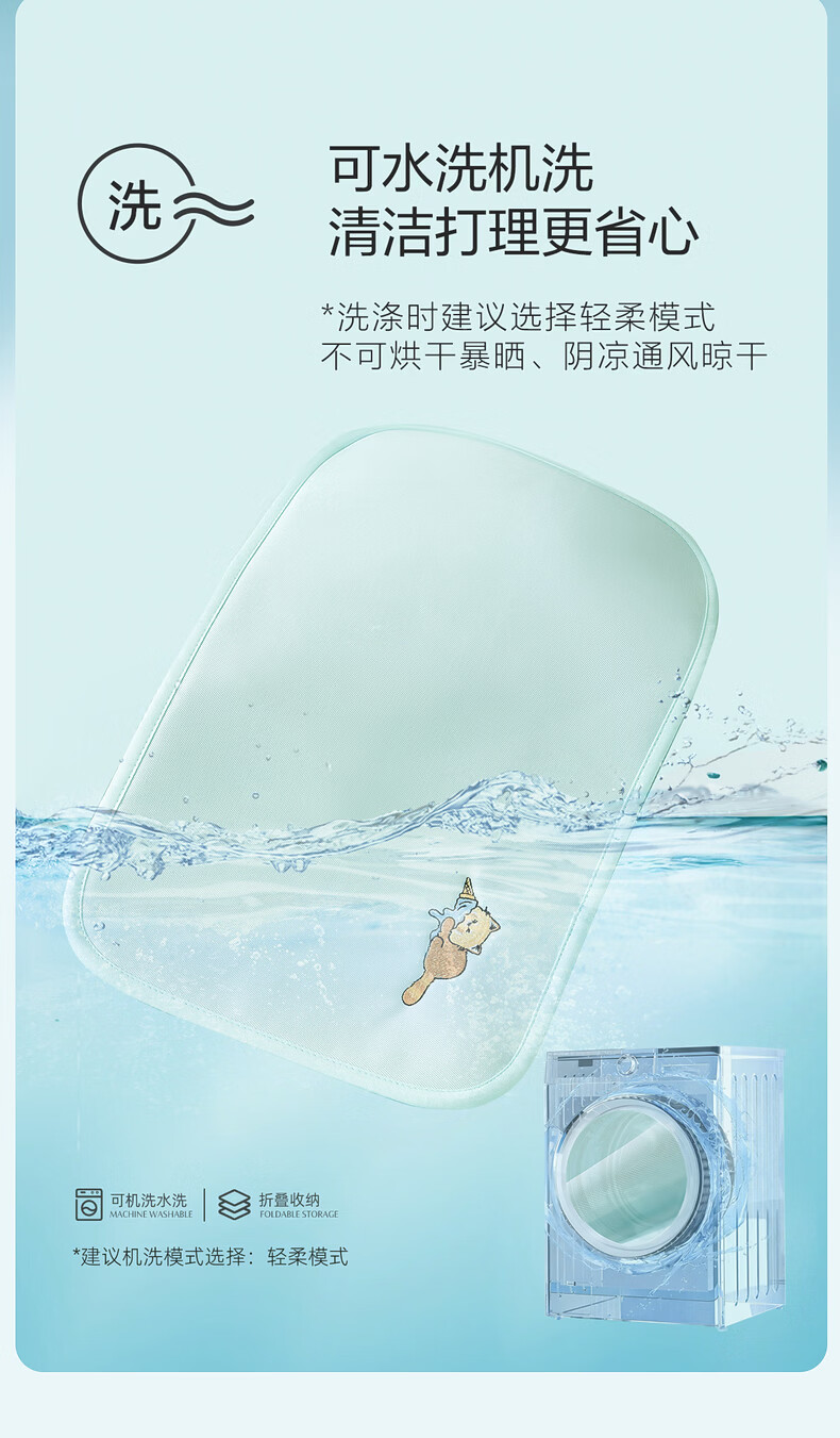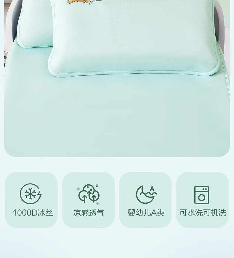 水星家纺北欧·海岸可水洗冰丝席/床笠式提花冰丝席升级款 北欧·海岸可水洗提花冰丝席升级款(灰蓝色) 195cm*90cm