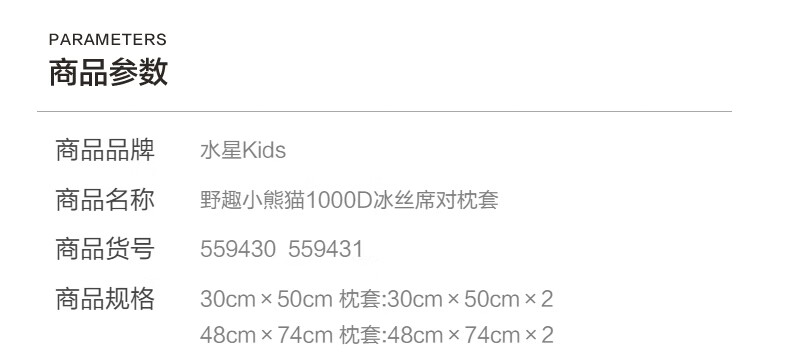 水星家纺野趣小熊猫1000D冰丝席对枕套 野趣小熊猫1000D冰丝席对枕套 一对 50cm*30cm