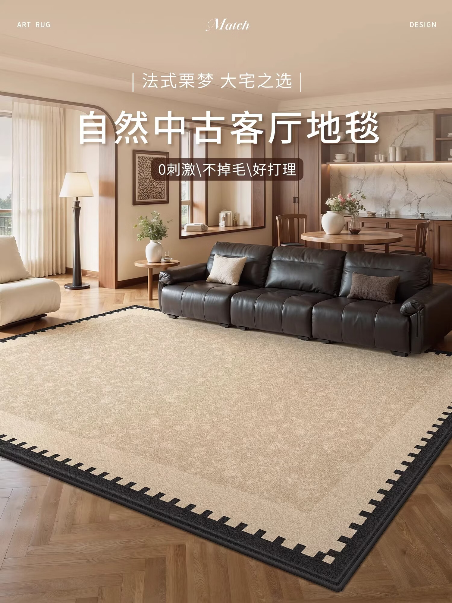 Y U-LIVE地毯客厅中古风2026新款免洗可擦法式复古地垫免打理防水防污 S仿羊绒-兰茵 定制请联系客服【享优惠】
