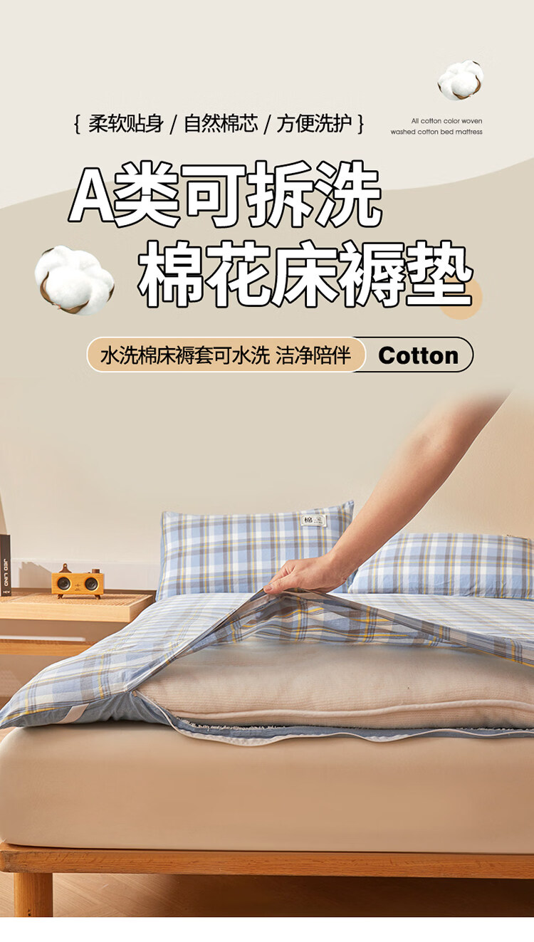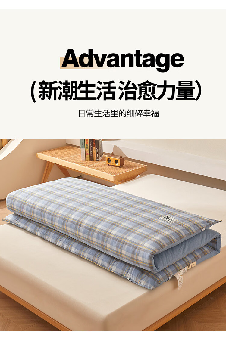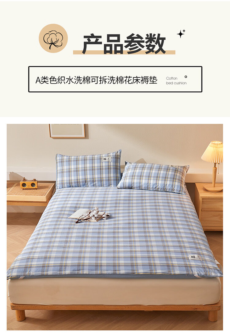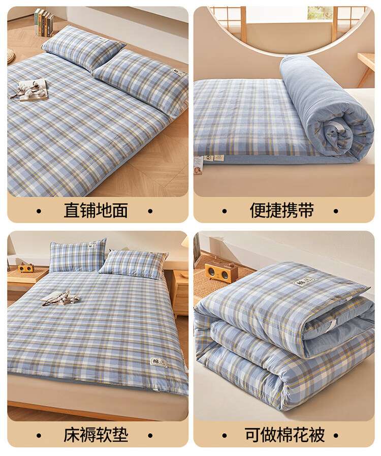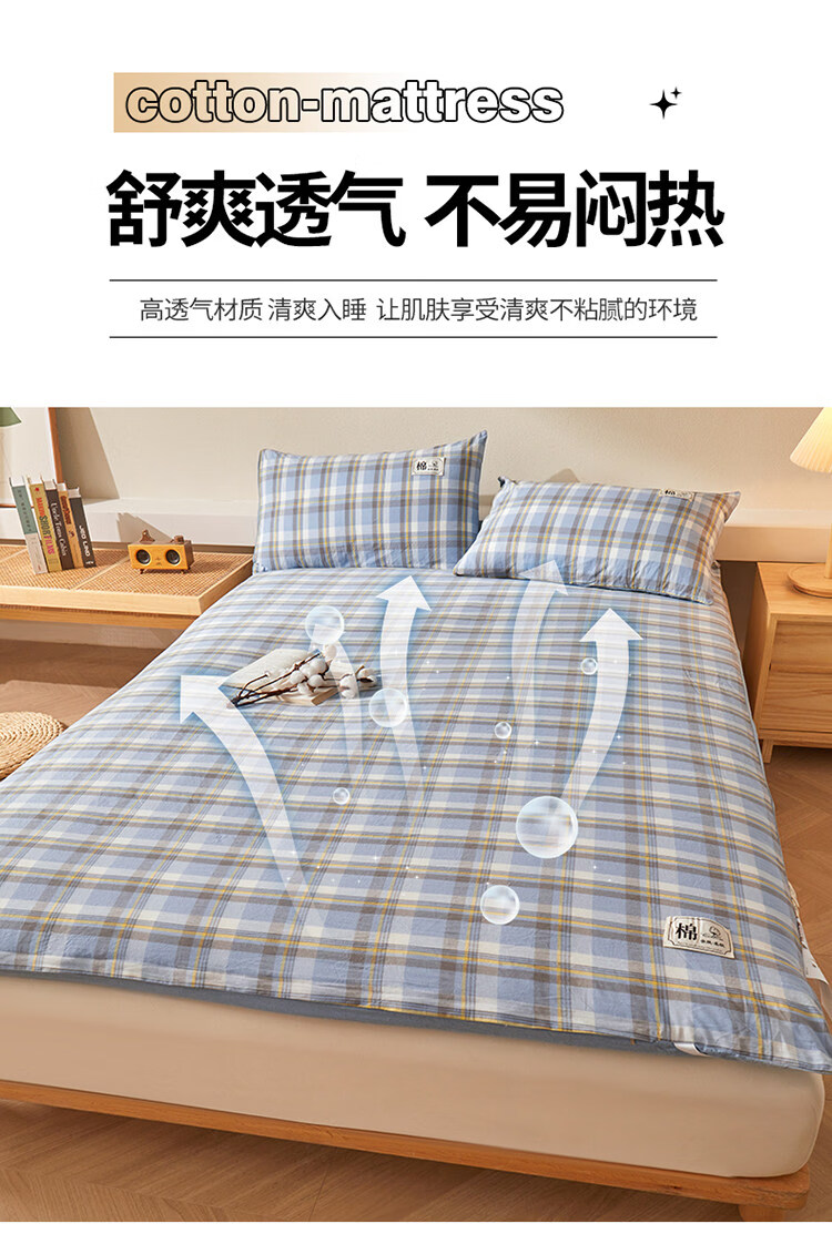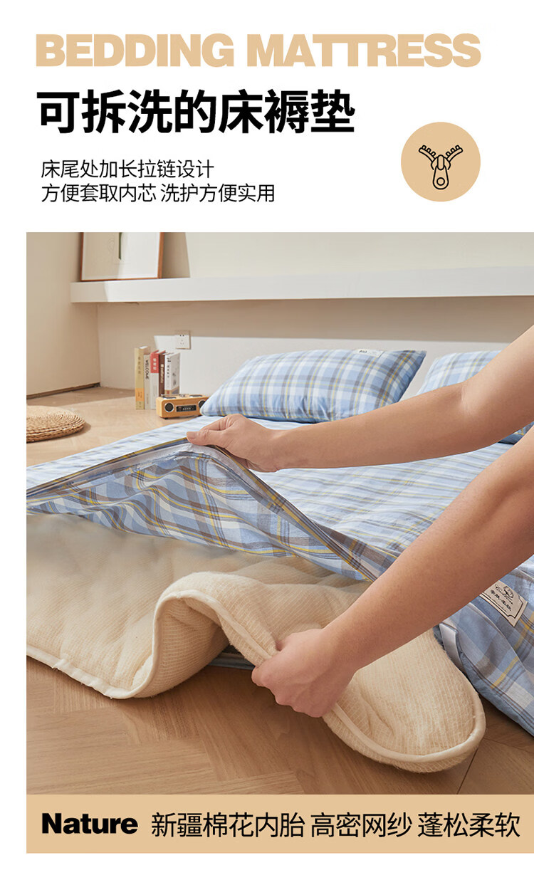 雅鹿可拆洗新疆棉床垫1.5米x2米床褥垫被家用床褥子宿舍单人被褥铺底 格韵-兰【可拆洗 久睡不塌】 双人春秋垫150*200cm【棉花芯+垫套】约5斤
