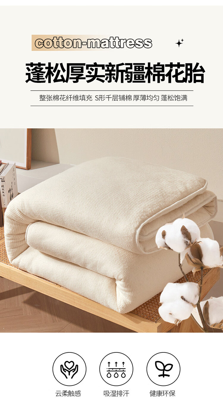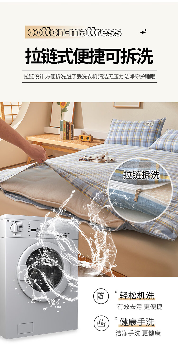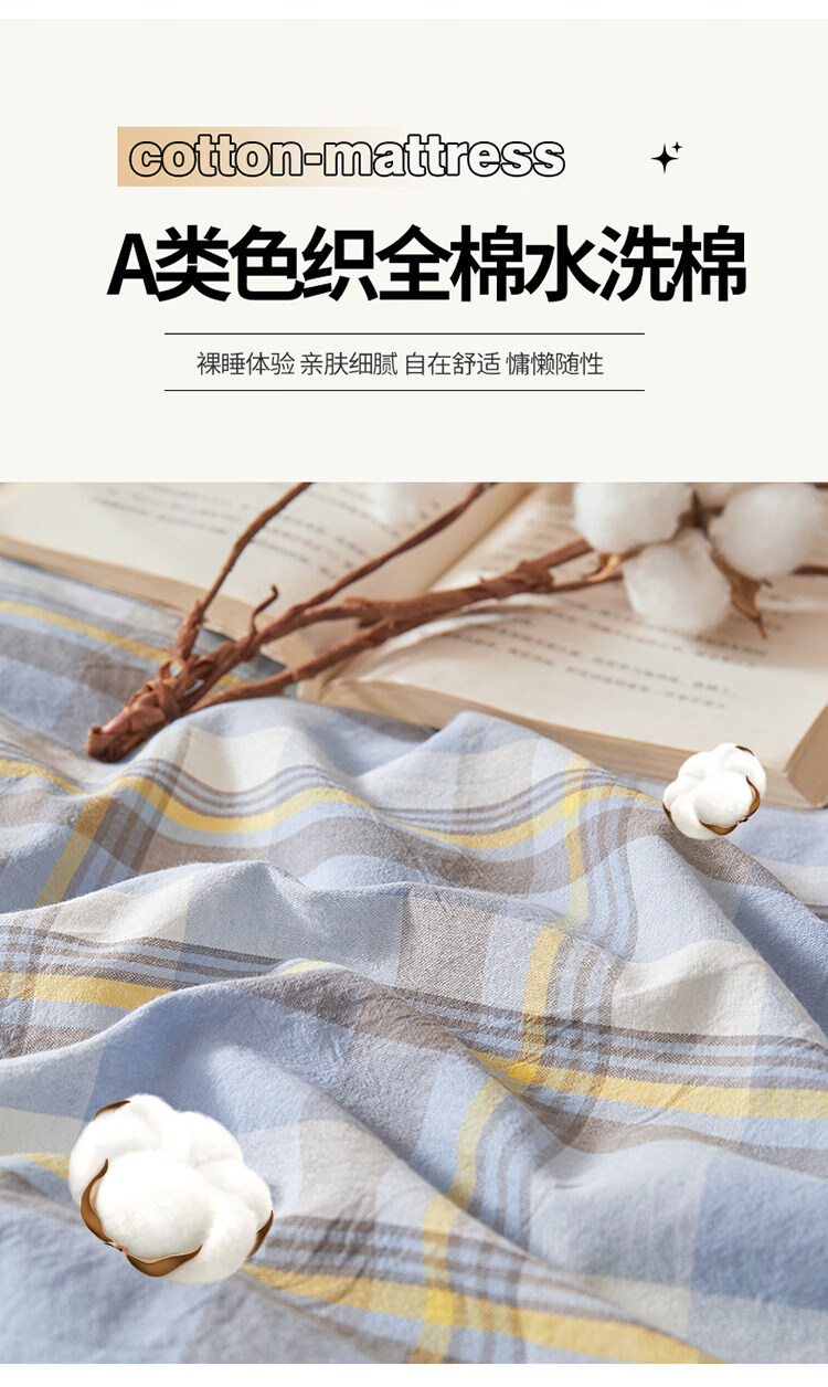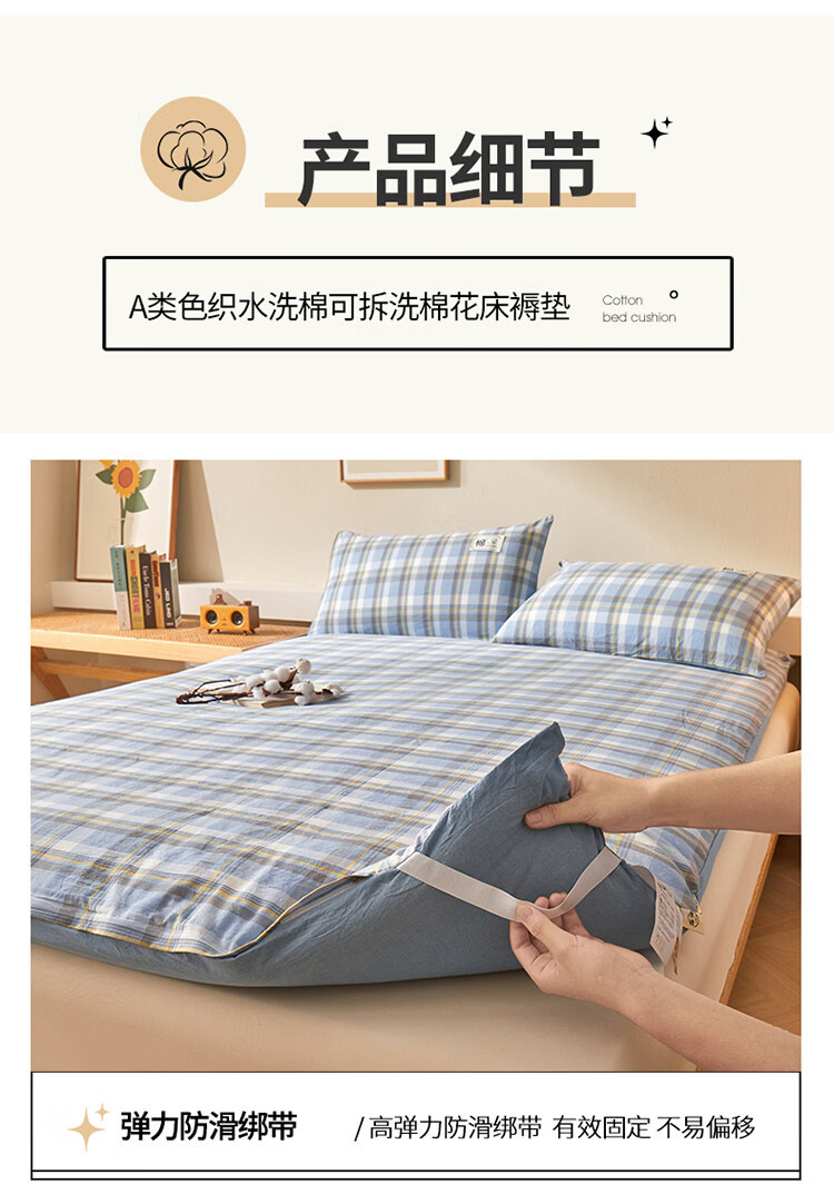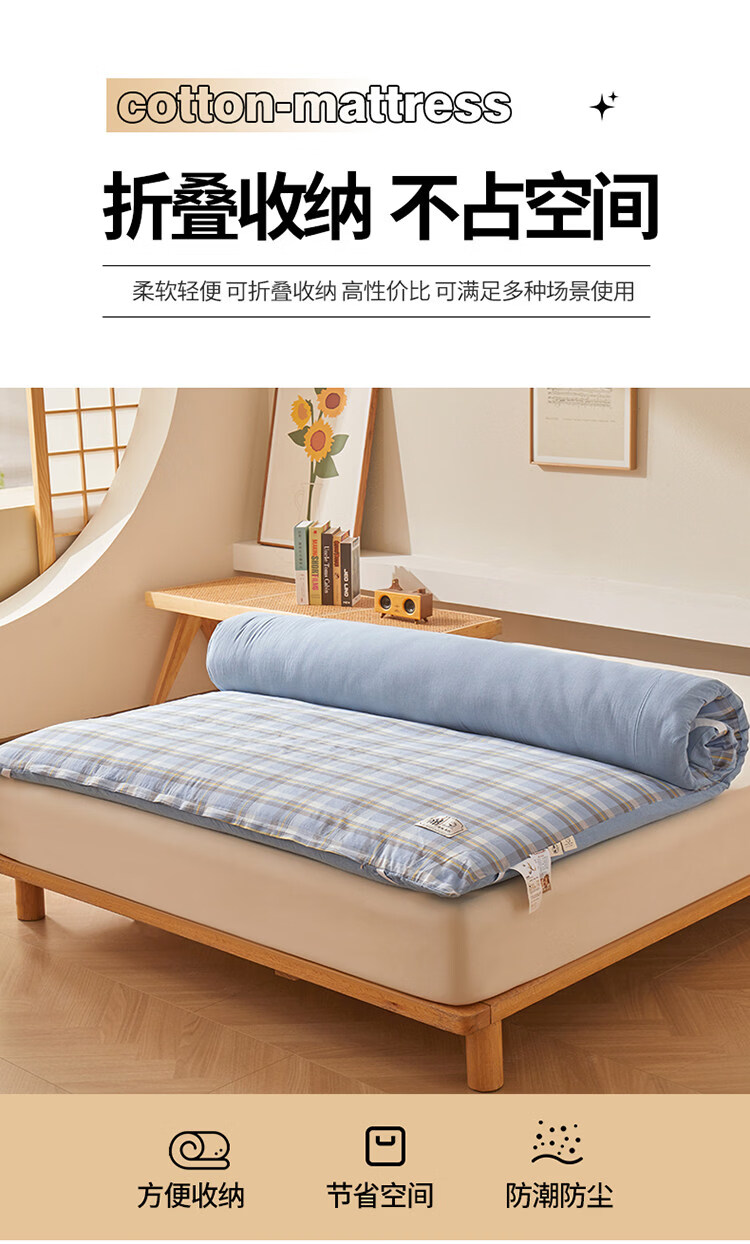 雅鹿可拆洗新疆棉床垫1.5米x2米床褥垫被家用床褥子宿舍单人被褥铺底 格韵-兰【可拆洗 久睡不塌】 双人春秋垫150*200cm【棉花芯+垫套】约5斤
