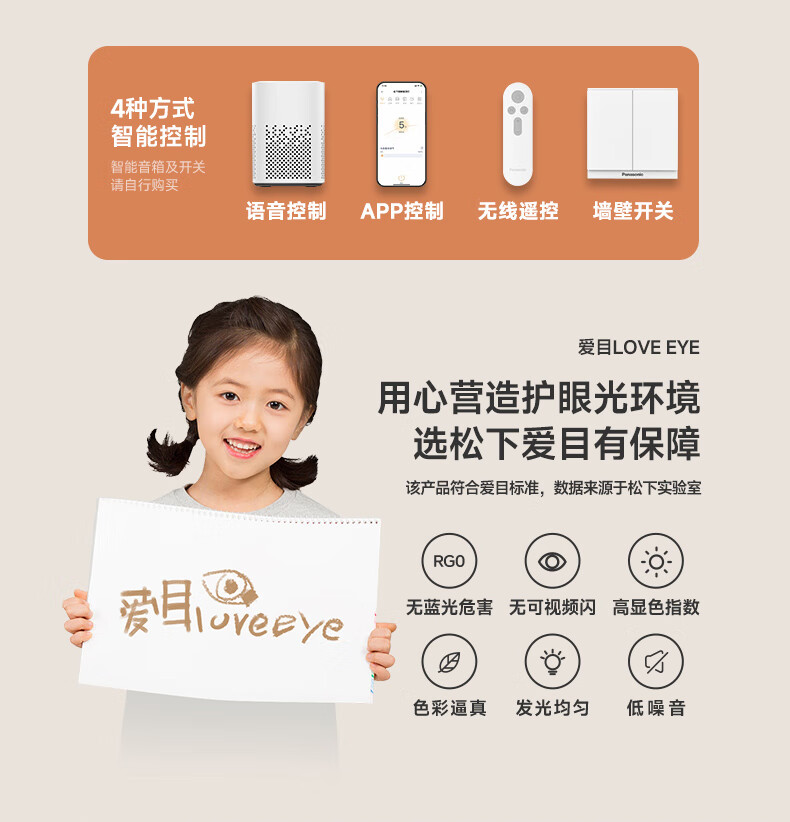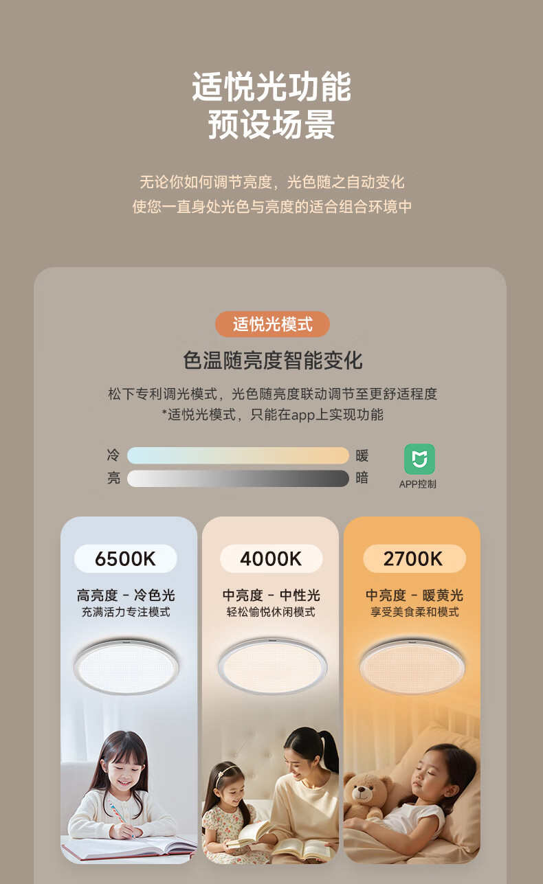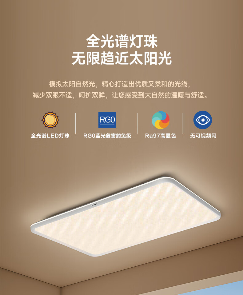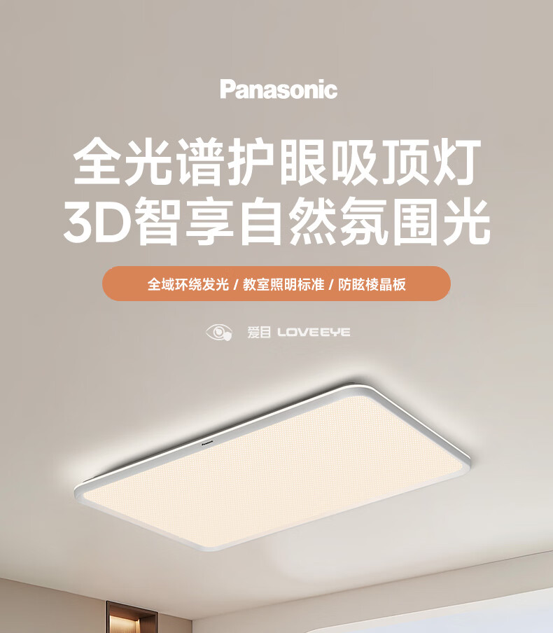 松下(Panasonic)吸顶灯防眩全光谱智能护眼教育照明卧室灯55瓦 HHXS5430包安装