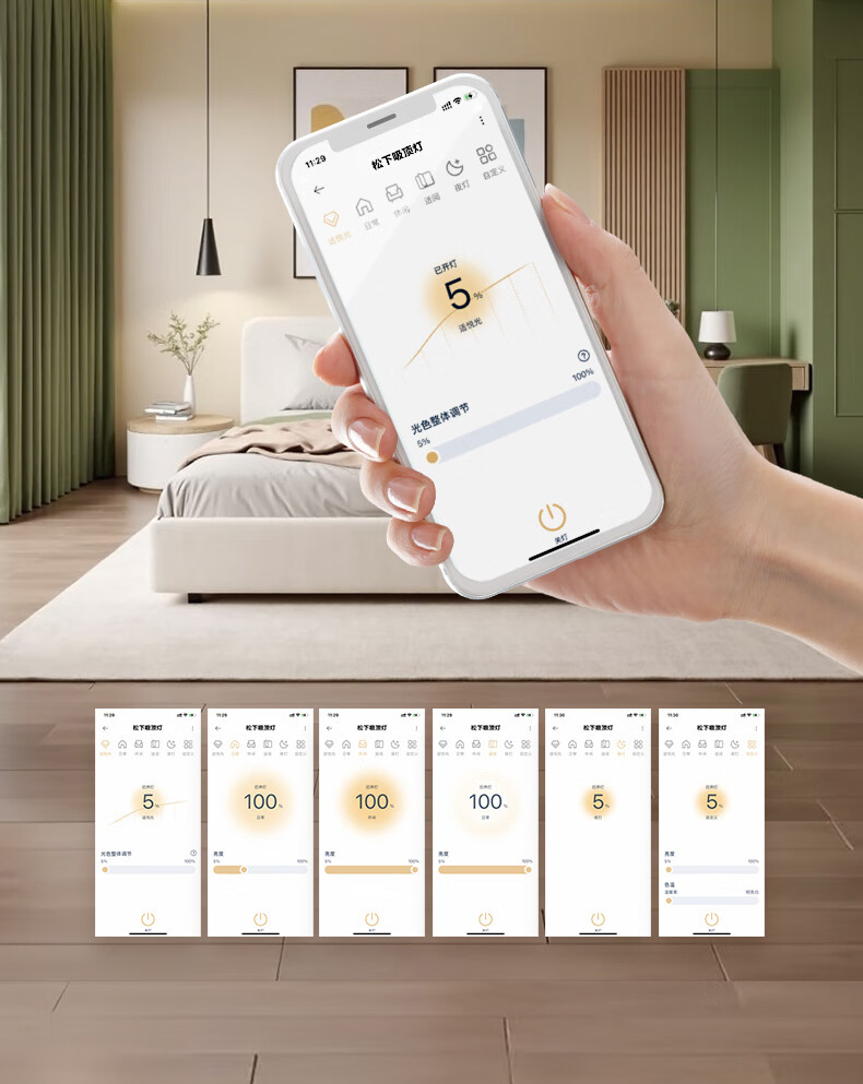韩强麻将灯棋牌室空气吸烟净化器遥控自动升降吊灯智能家居净化灯 大五灯_香槟金(配显示屏)