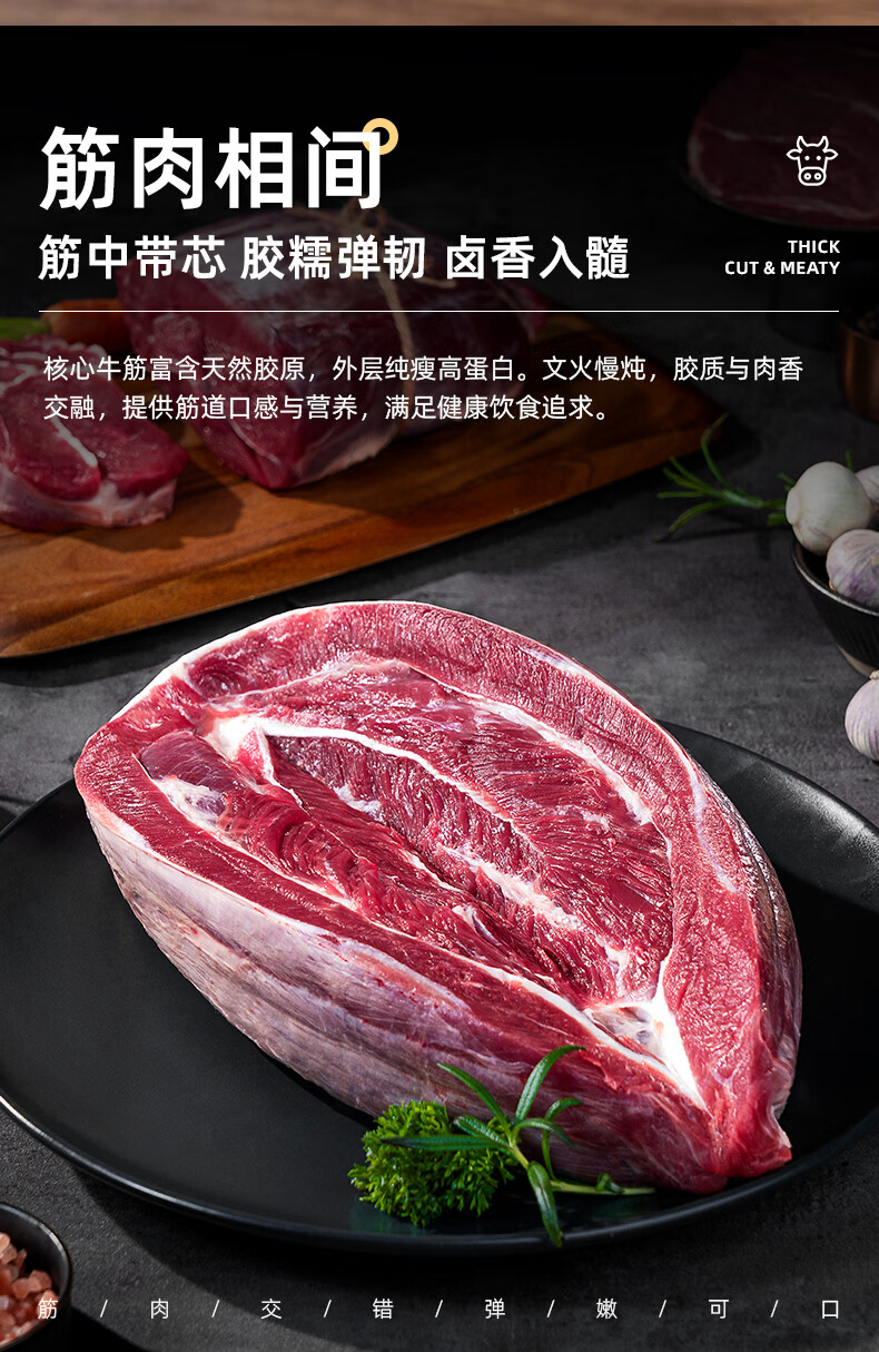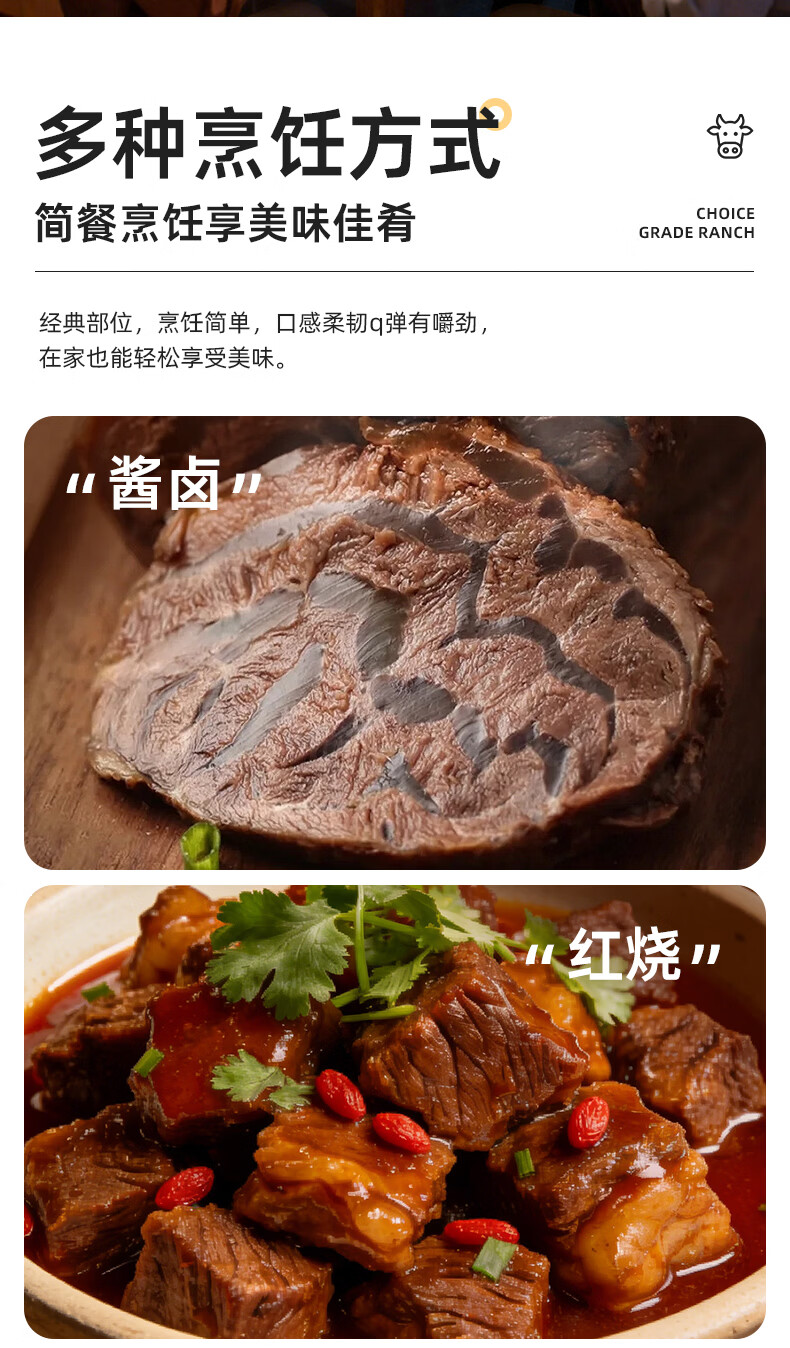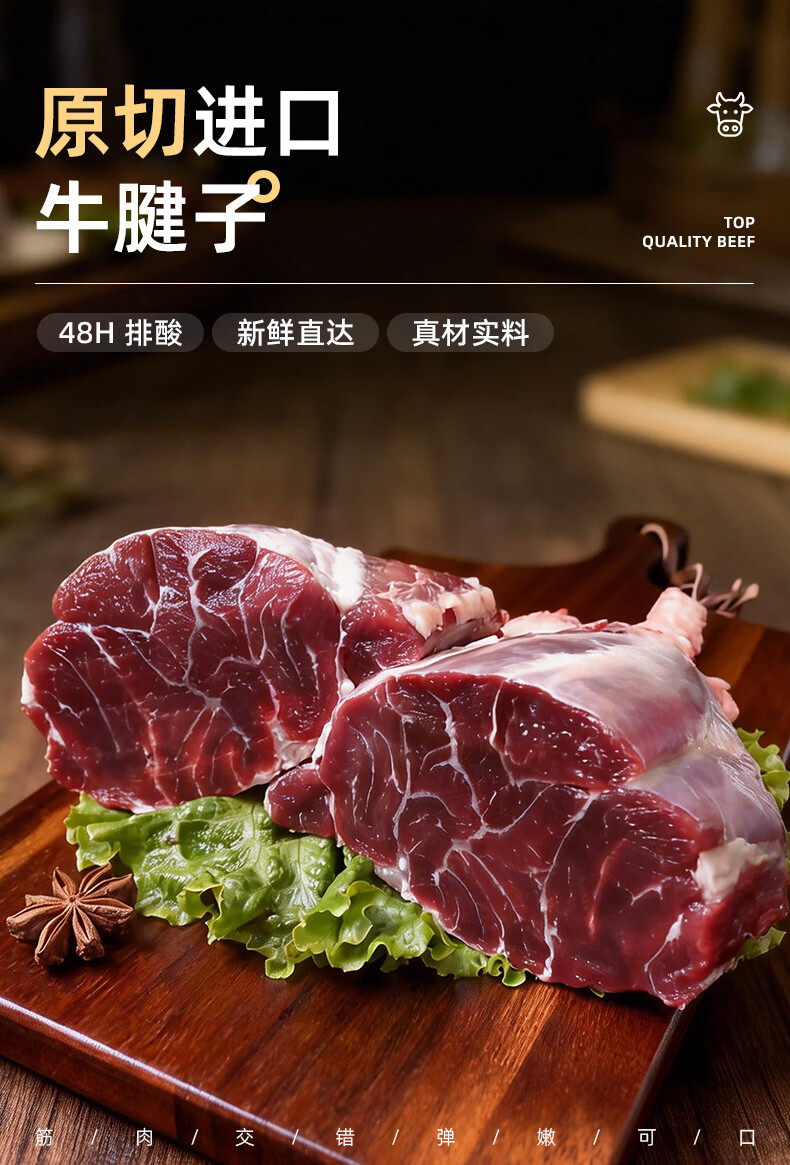 飞熊领鲜原切带芯牛后腱子 生鲜牛肉进口原切牛腱子烧烤炖煮食材 原切牛后腱1kg*2