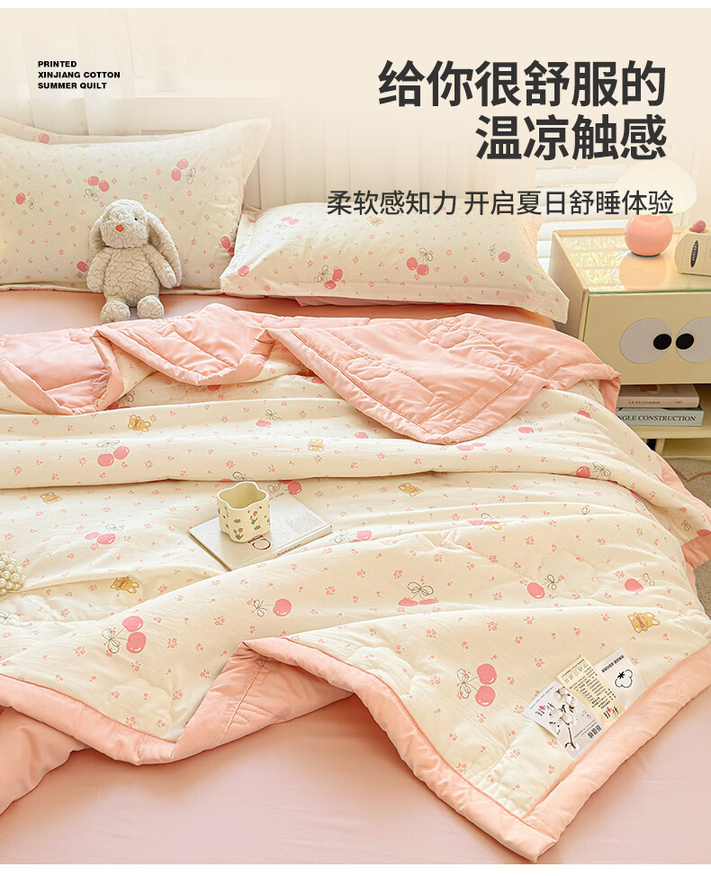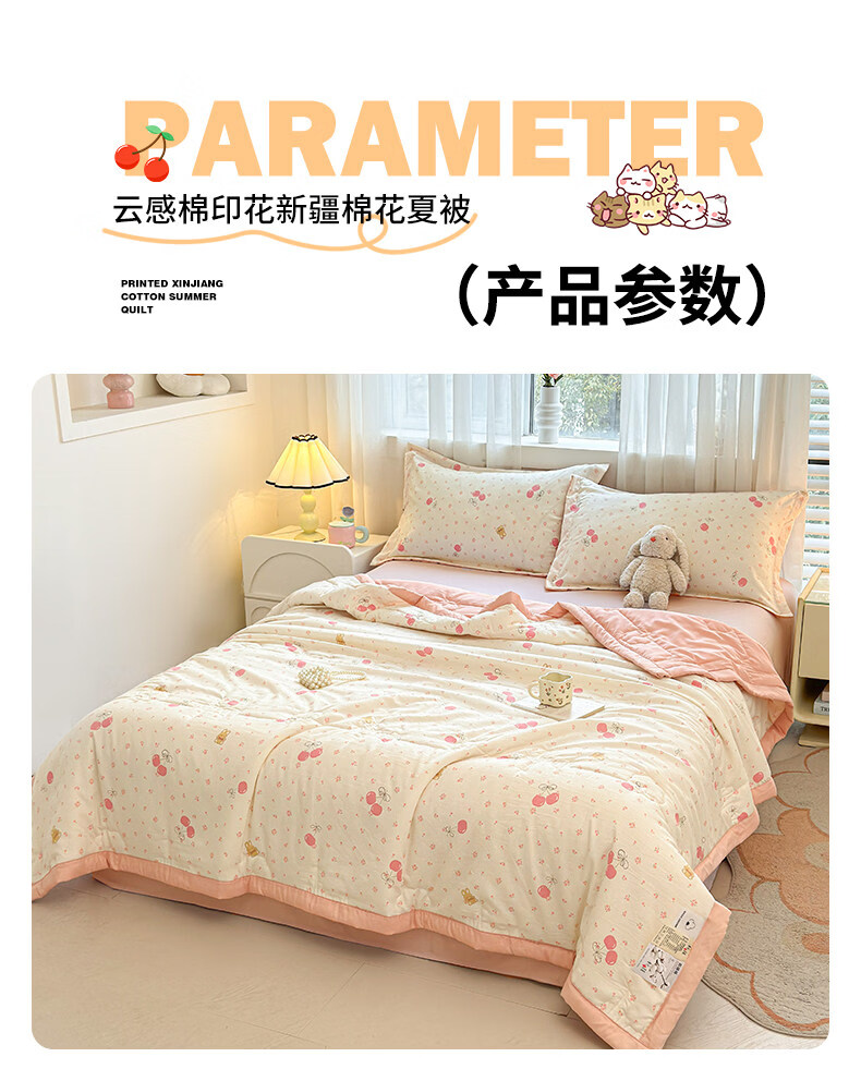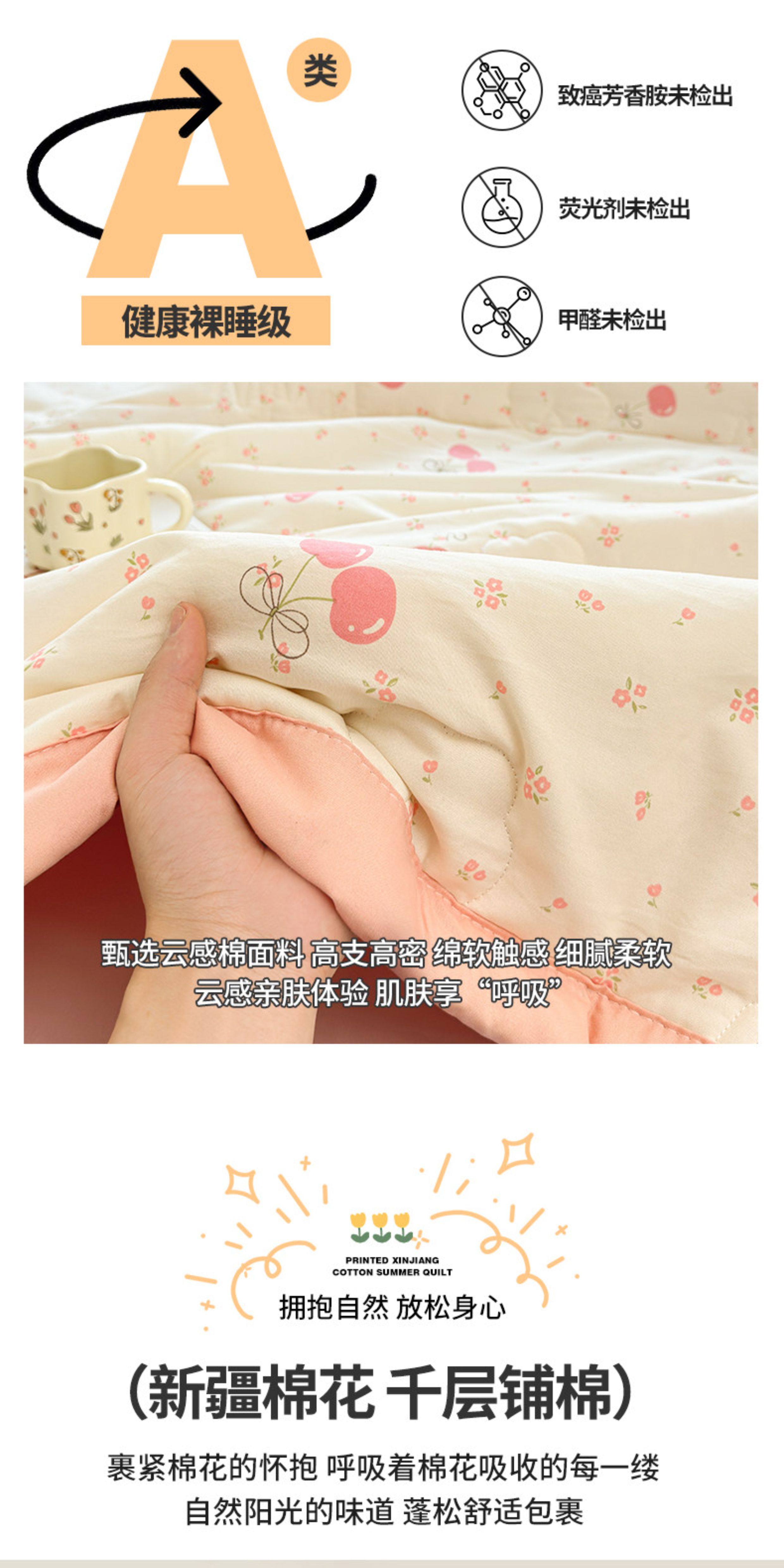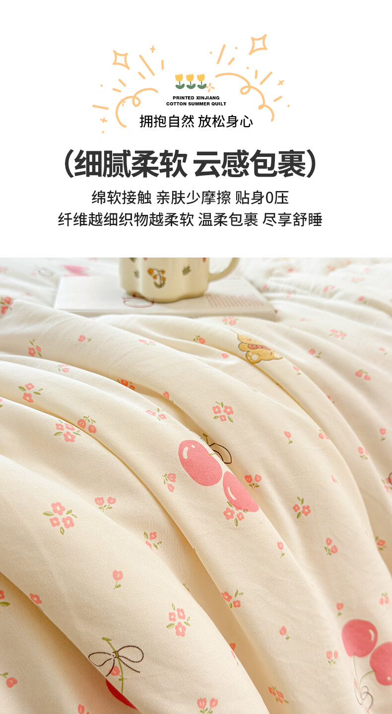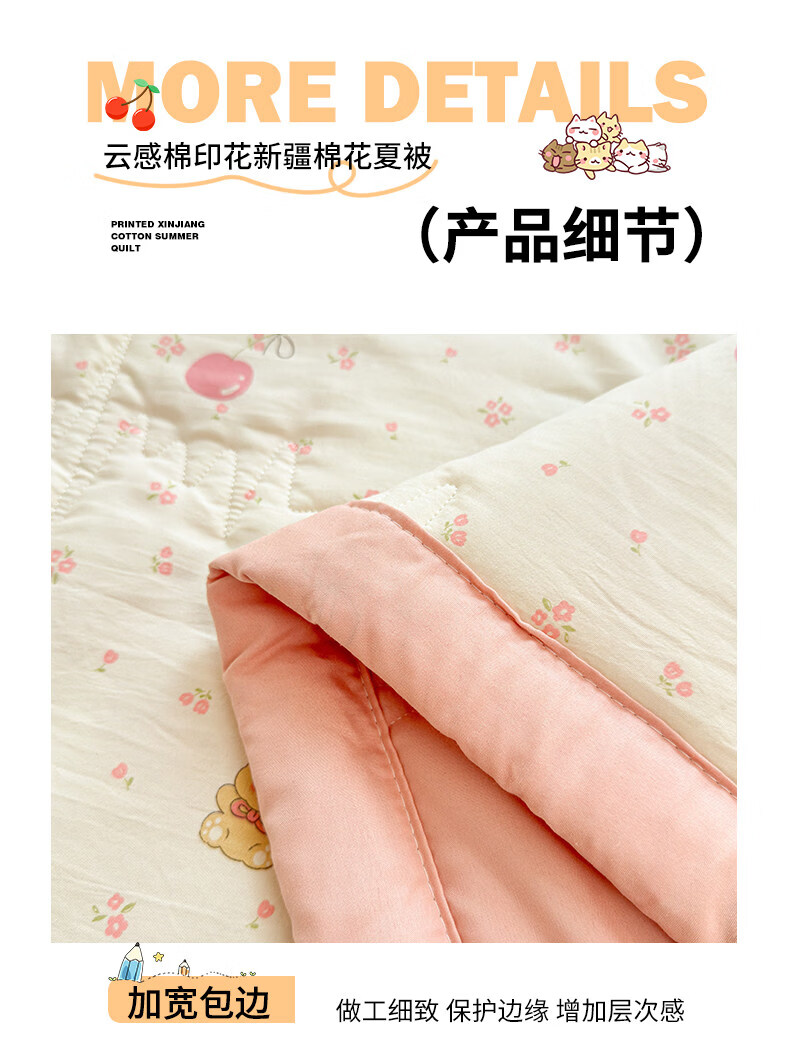 猫人(MiiOW)新疆棉花卡通夏凉被可机洗空调被夏季单人棉花夏被宿舍单人薄被子 凌香甜美樱桃【A类裸睡级贴身透气】 150*200cm-单人夏被