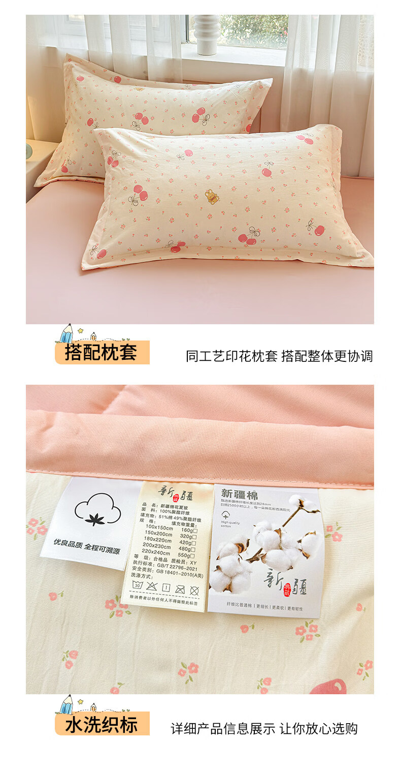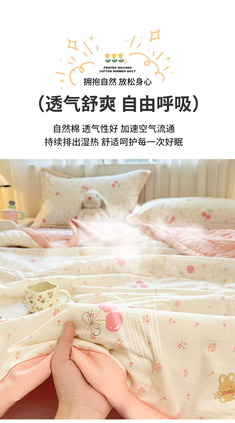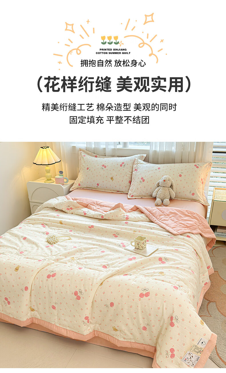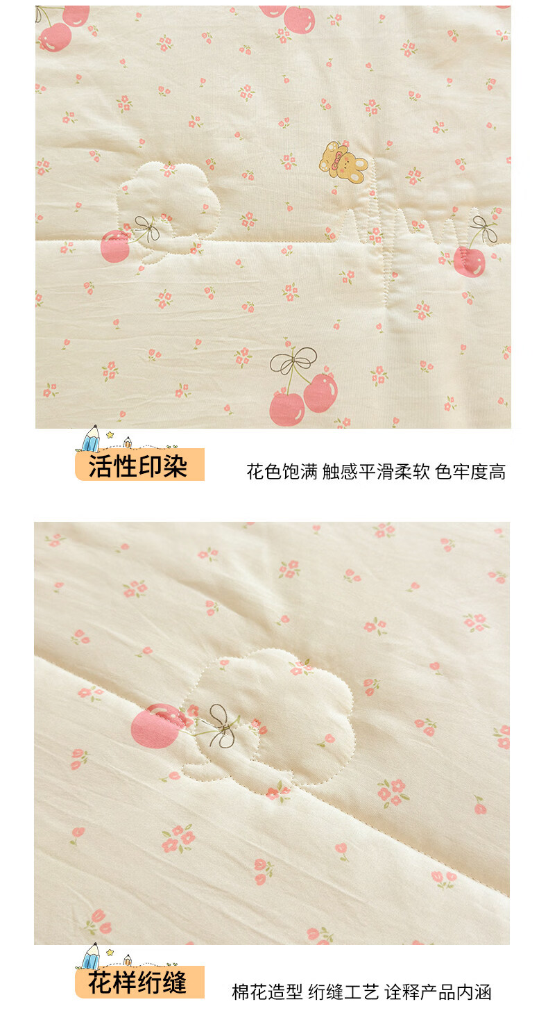 猫人(MiiOW)新疆棉花卡通夏凉被可机洗空调被夏季单人棉花夏被宿舍单人薄被子 凌香甜美樱桃【A类裸睡级贴身透气】 150*200cm-单人夏被