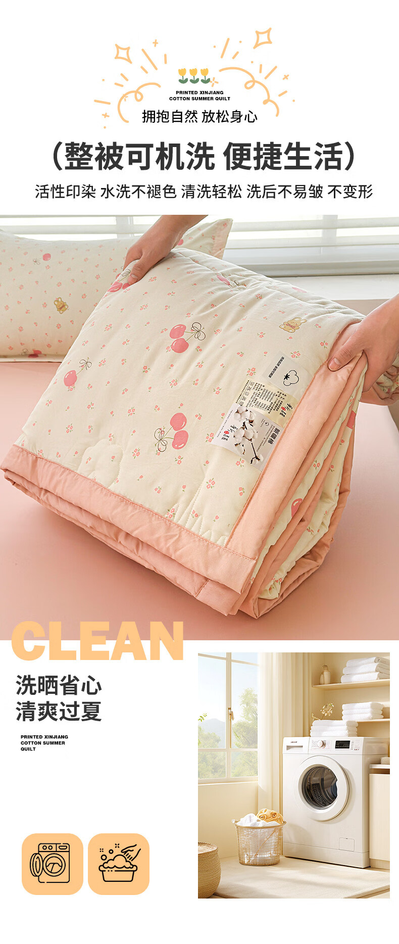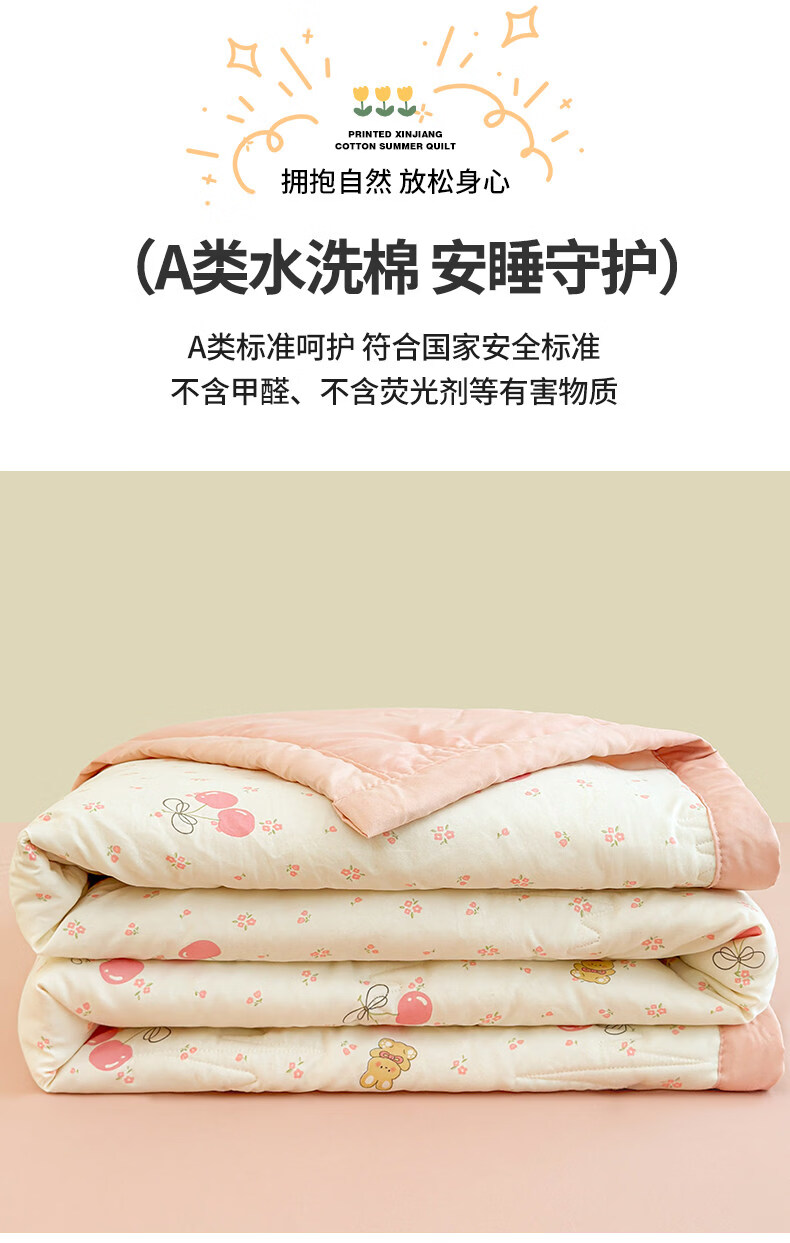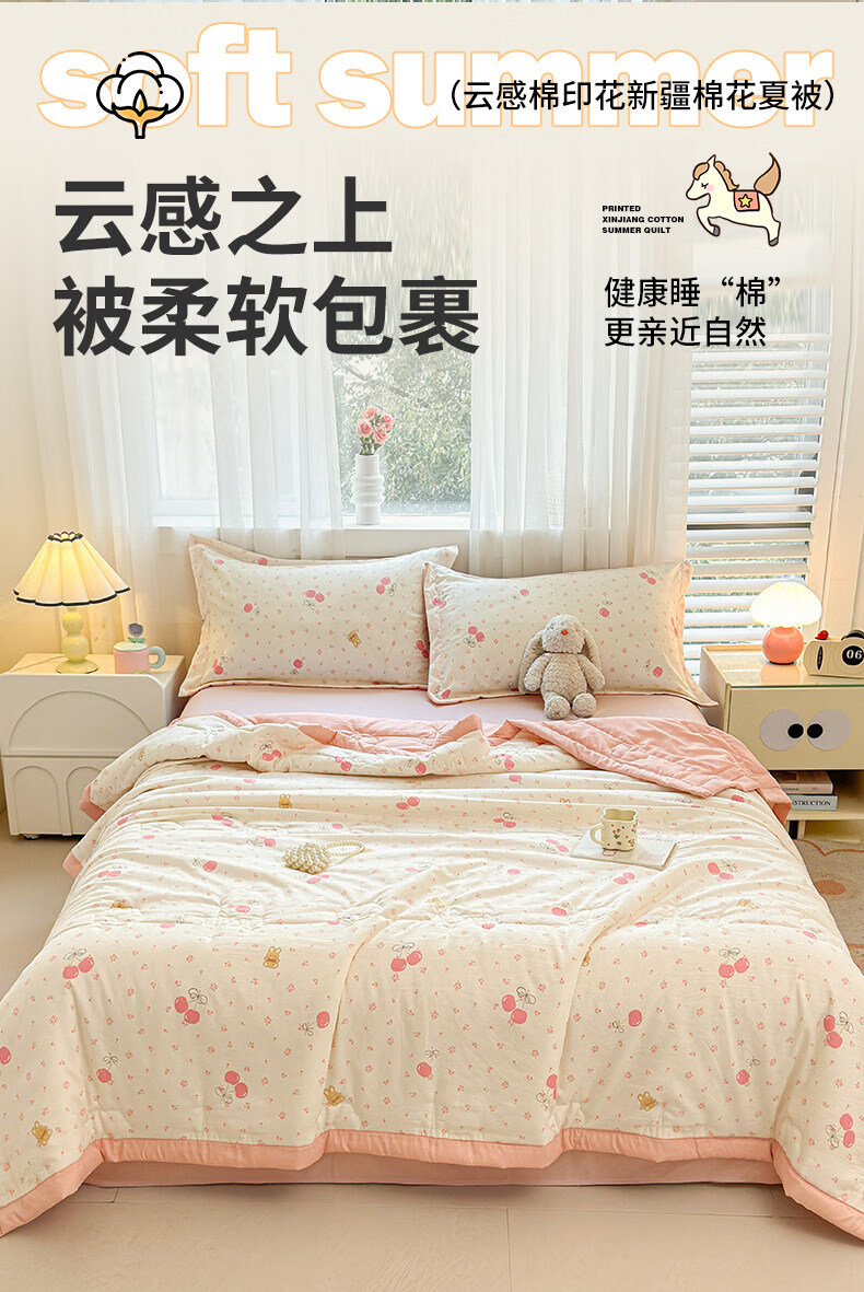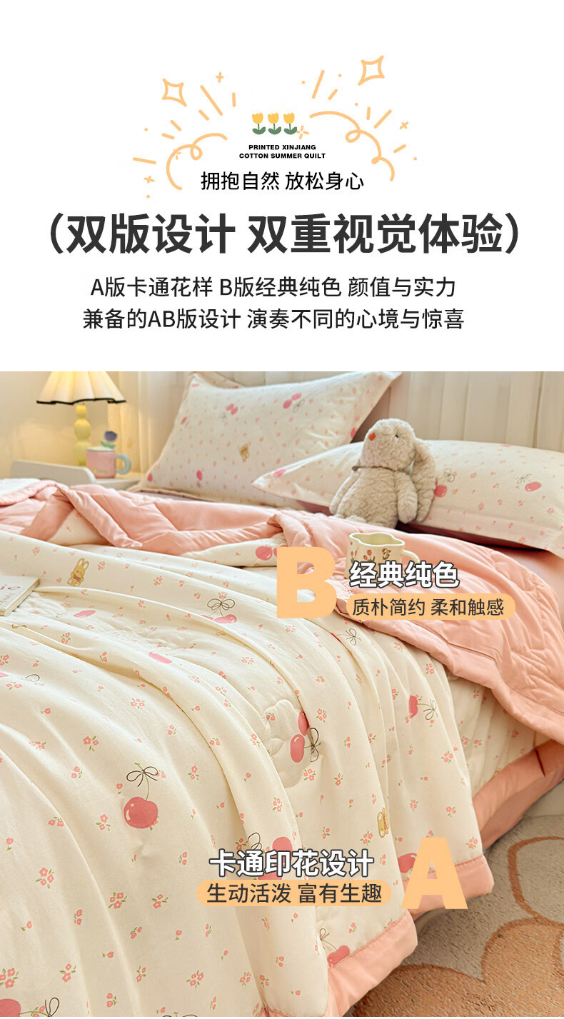 猫人(MiiOW)新疆棉花卡通夏凉被可机洗空调被夏季单人棉花夏被宿舍单人薄被子 凌香甜美樱桃【A类裸睡级贴身透气】 150*200cm-单人夏被