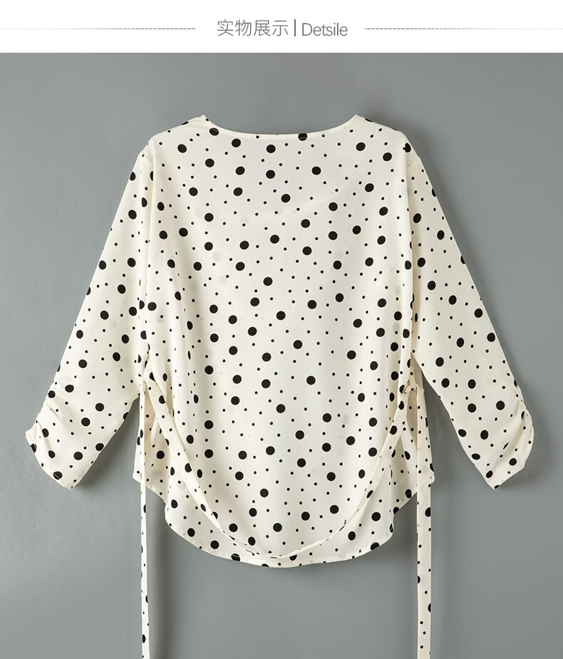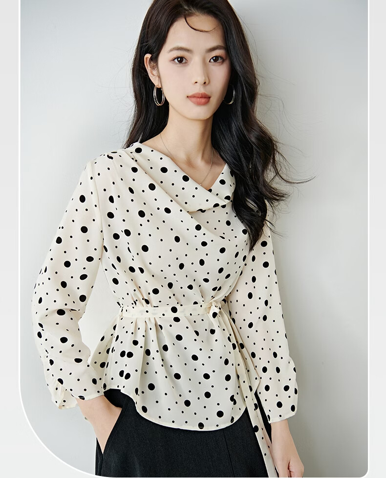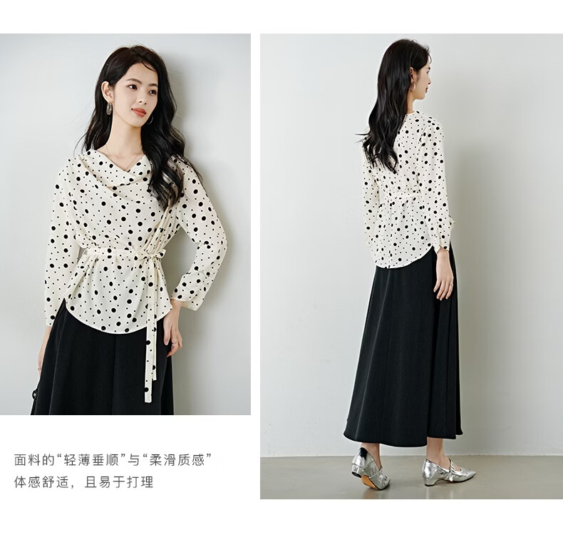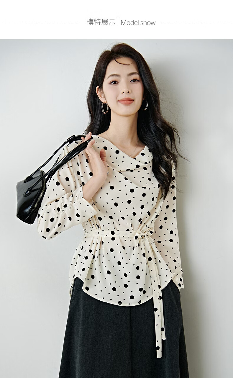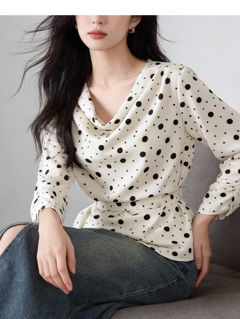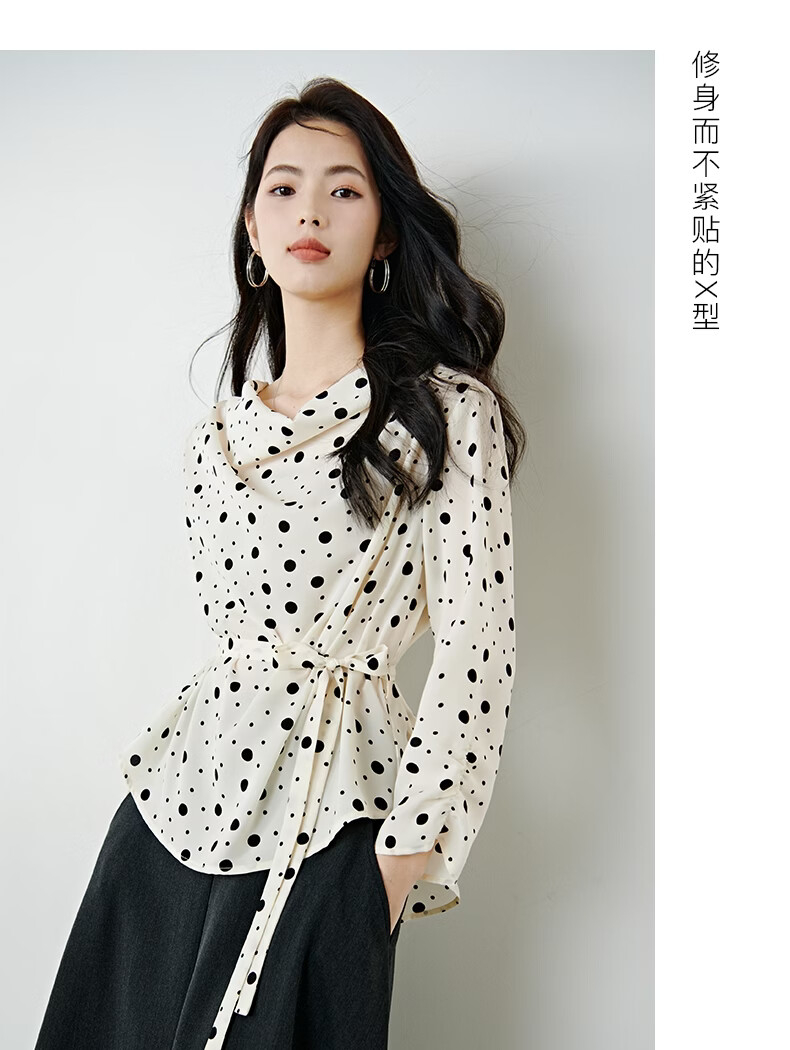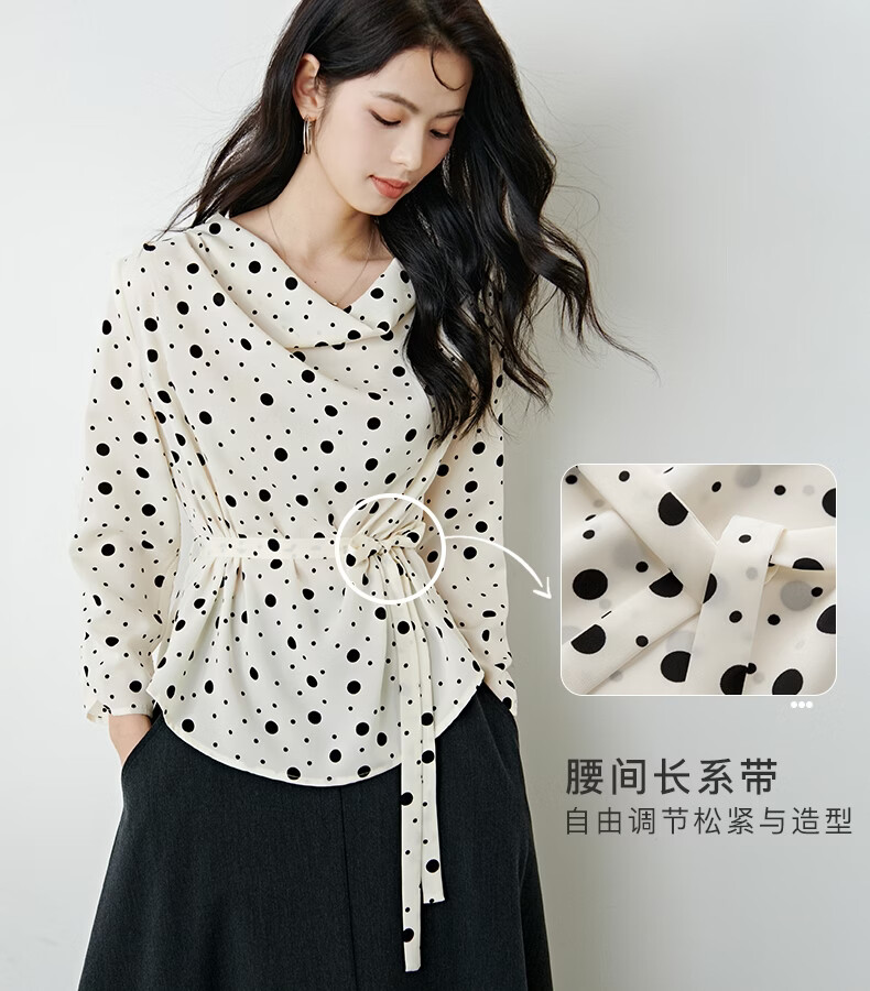 晚白2026年春款时尚波点荡领上衣设计感系带收腰轻薄垂顺大码衬衫女 浅杏色 XL