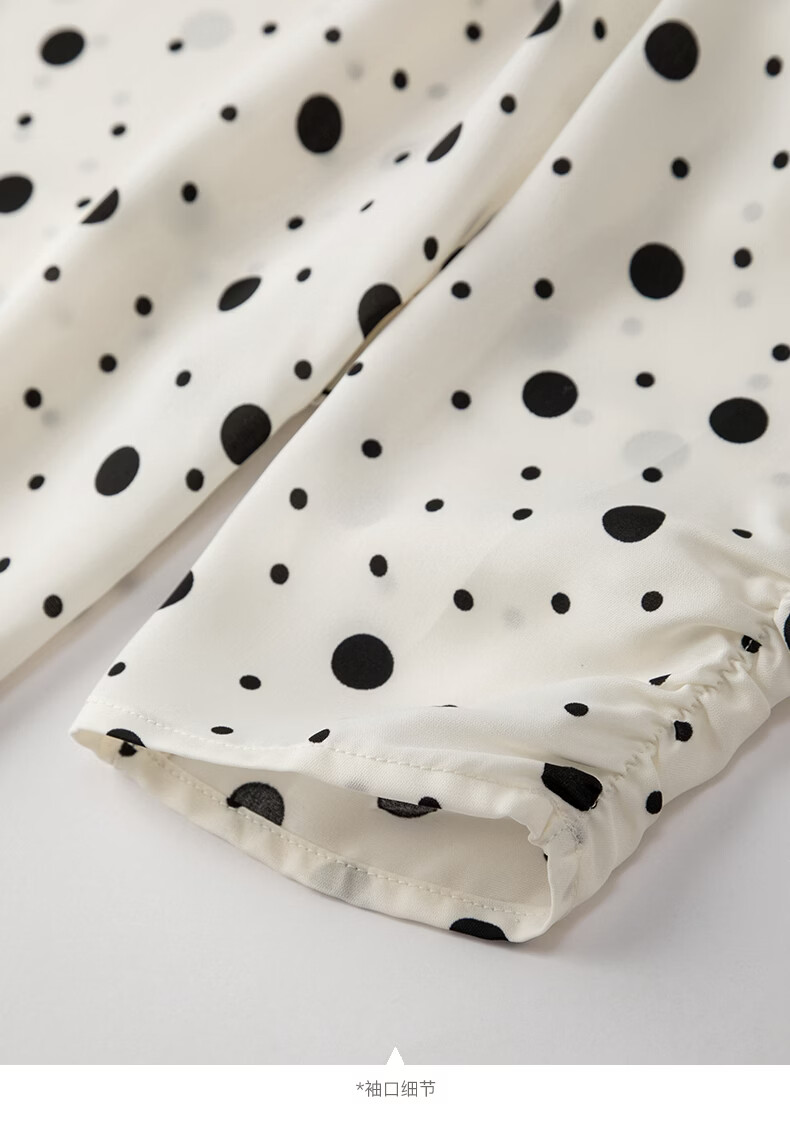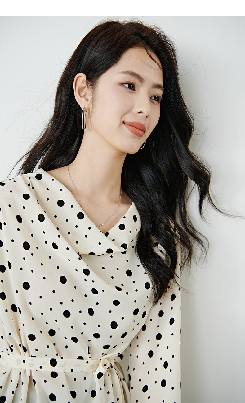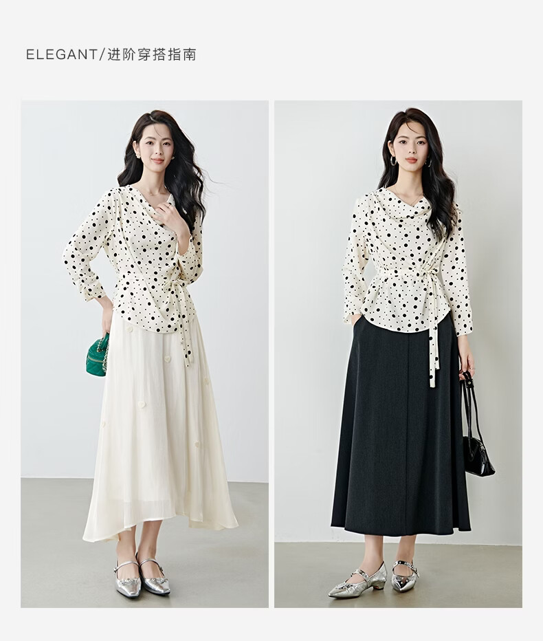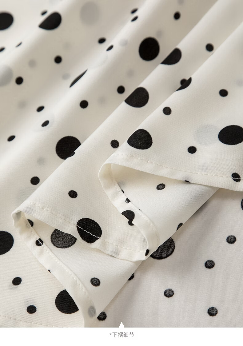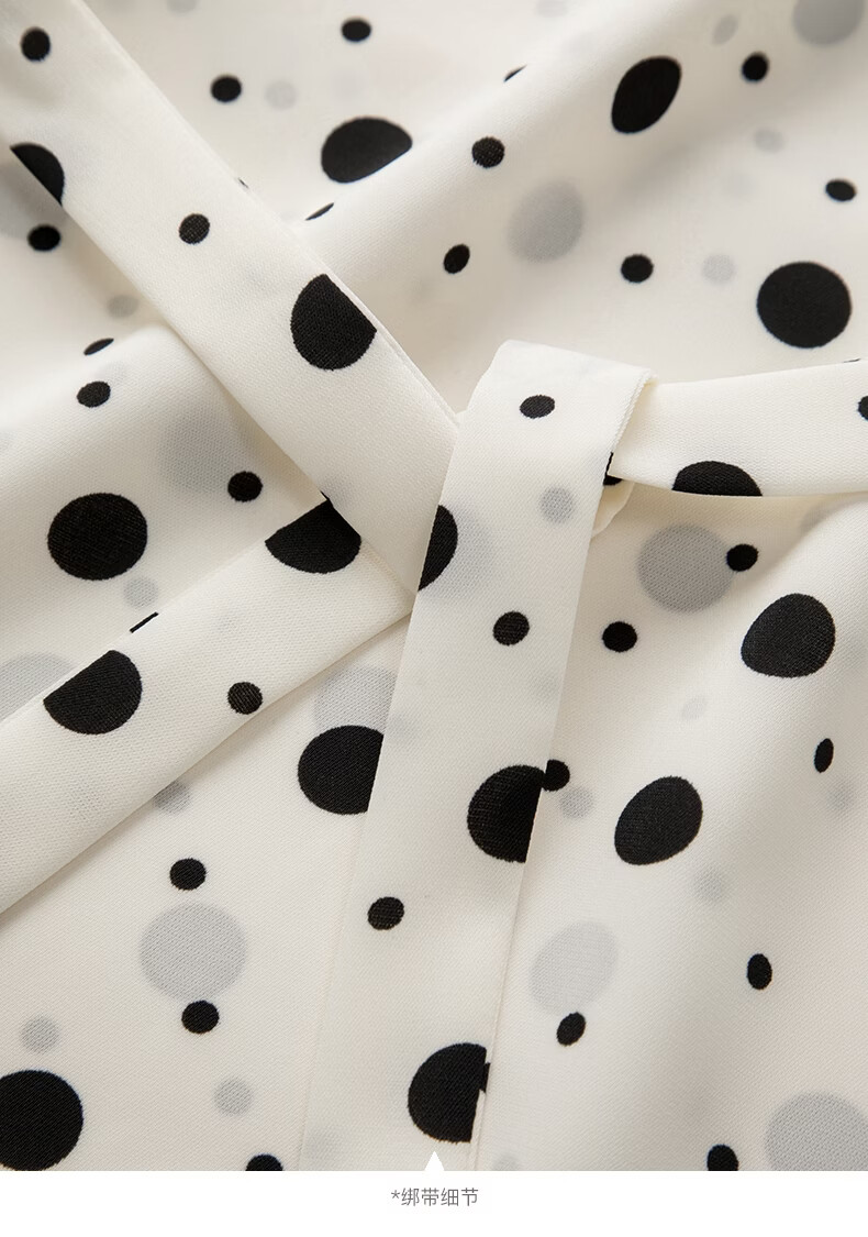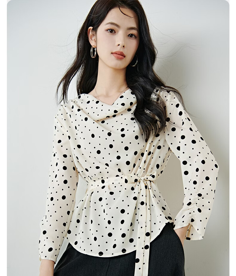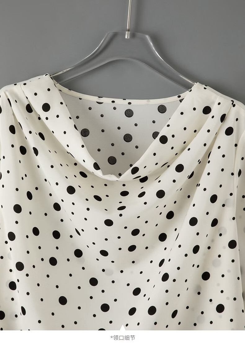 晚白2026年春款时尚波点荡领上衣设计感系带收腰轻薄垂顺大码衬衫女 浅杏色 XL