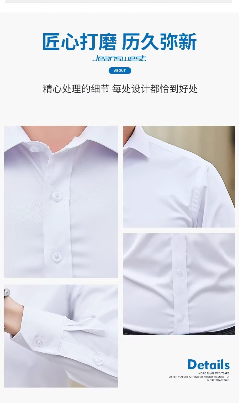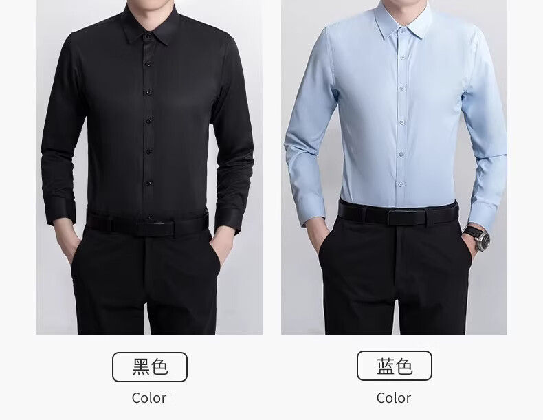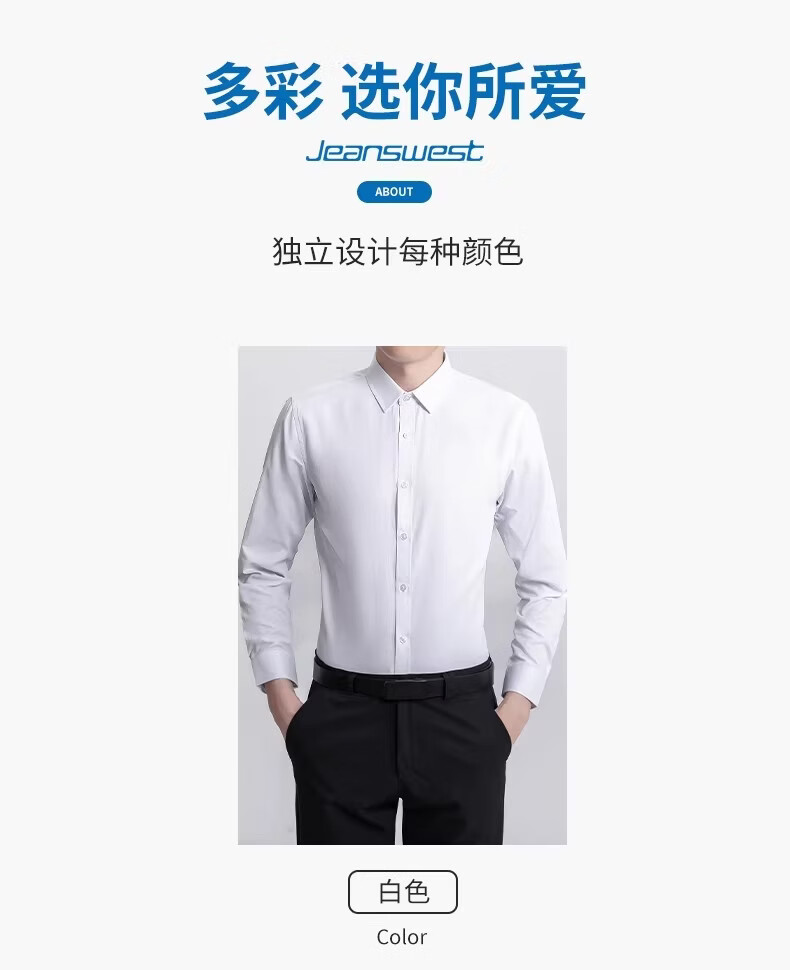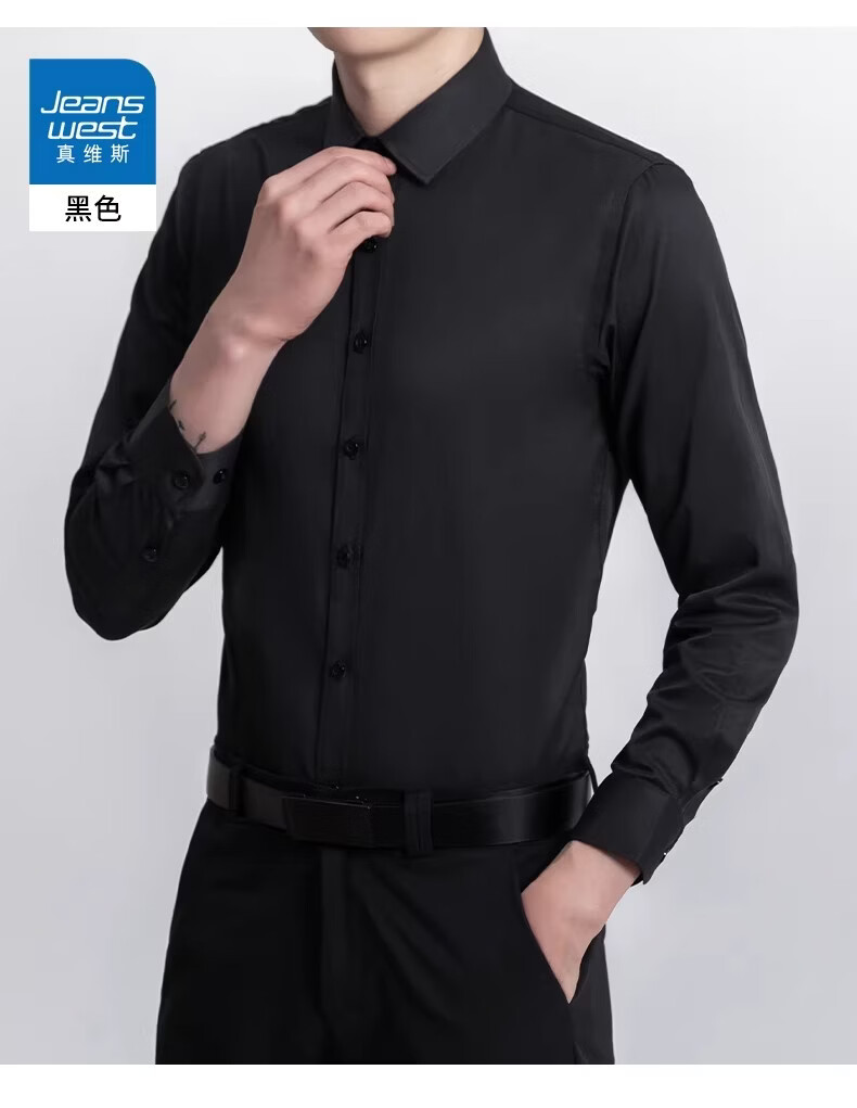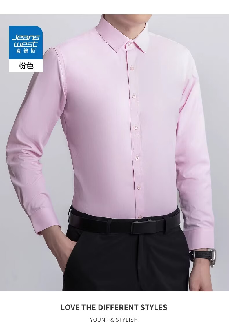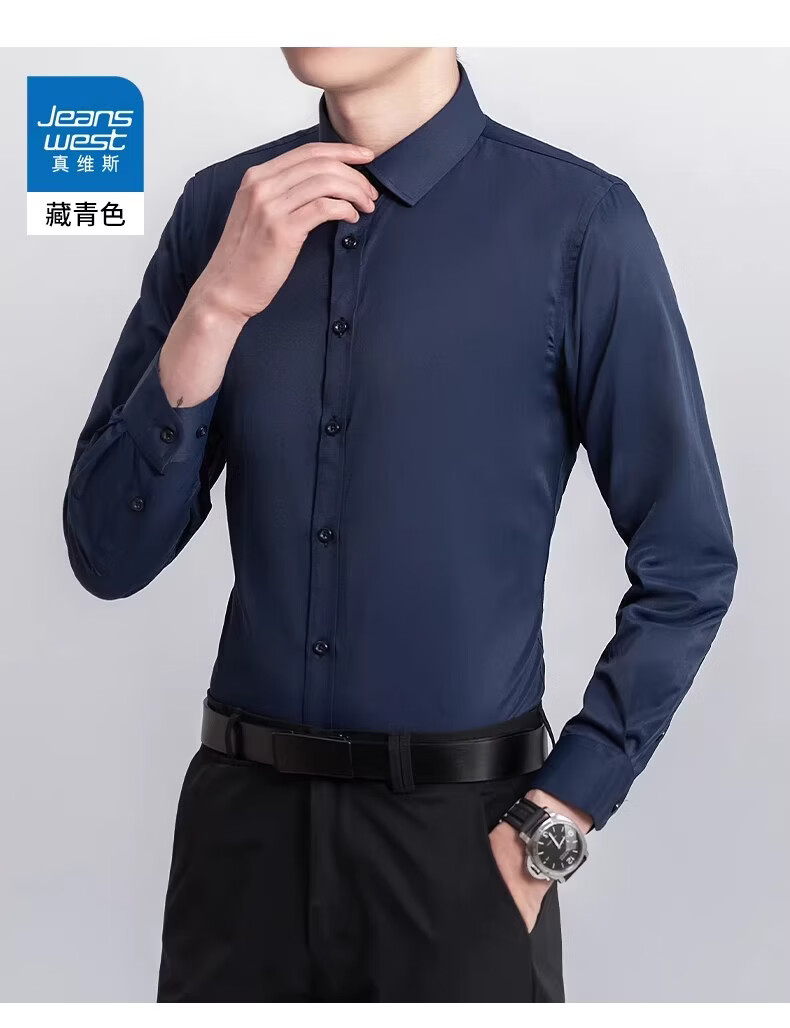 真维斯(Jeanswest)蓝色男士商务长袖衬衫2026春季新款休闲免烫修身职场风衬衣 蓝色 【舒适亲肤】 M 【建议85-105斤】