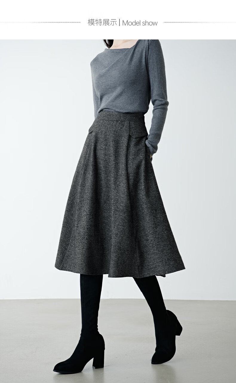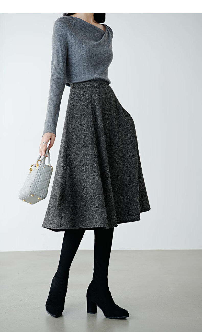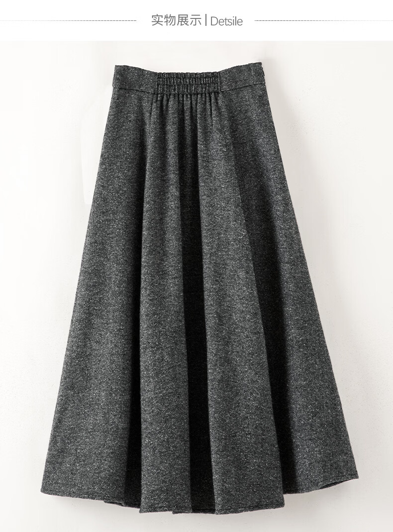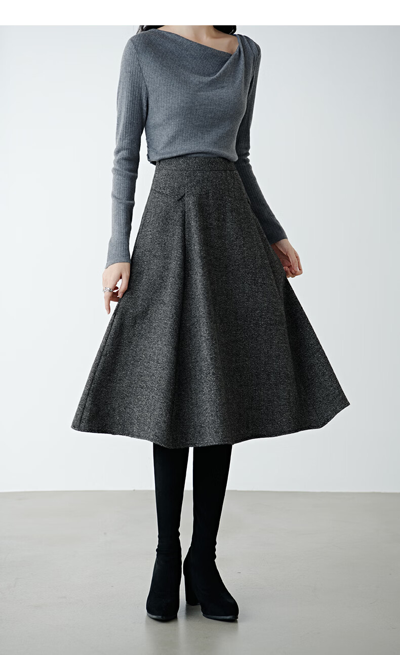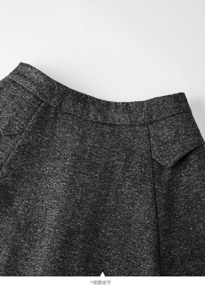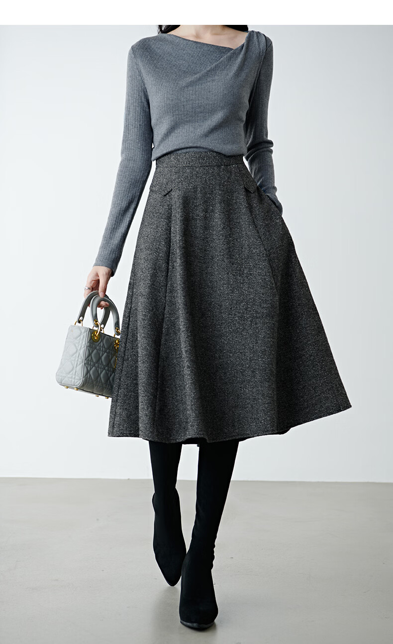 晚白【新品】冬款经典气质格雷灰羊毛裙高腰显瘦挺括垂坠百搭半身裙 深灰色 XL