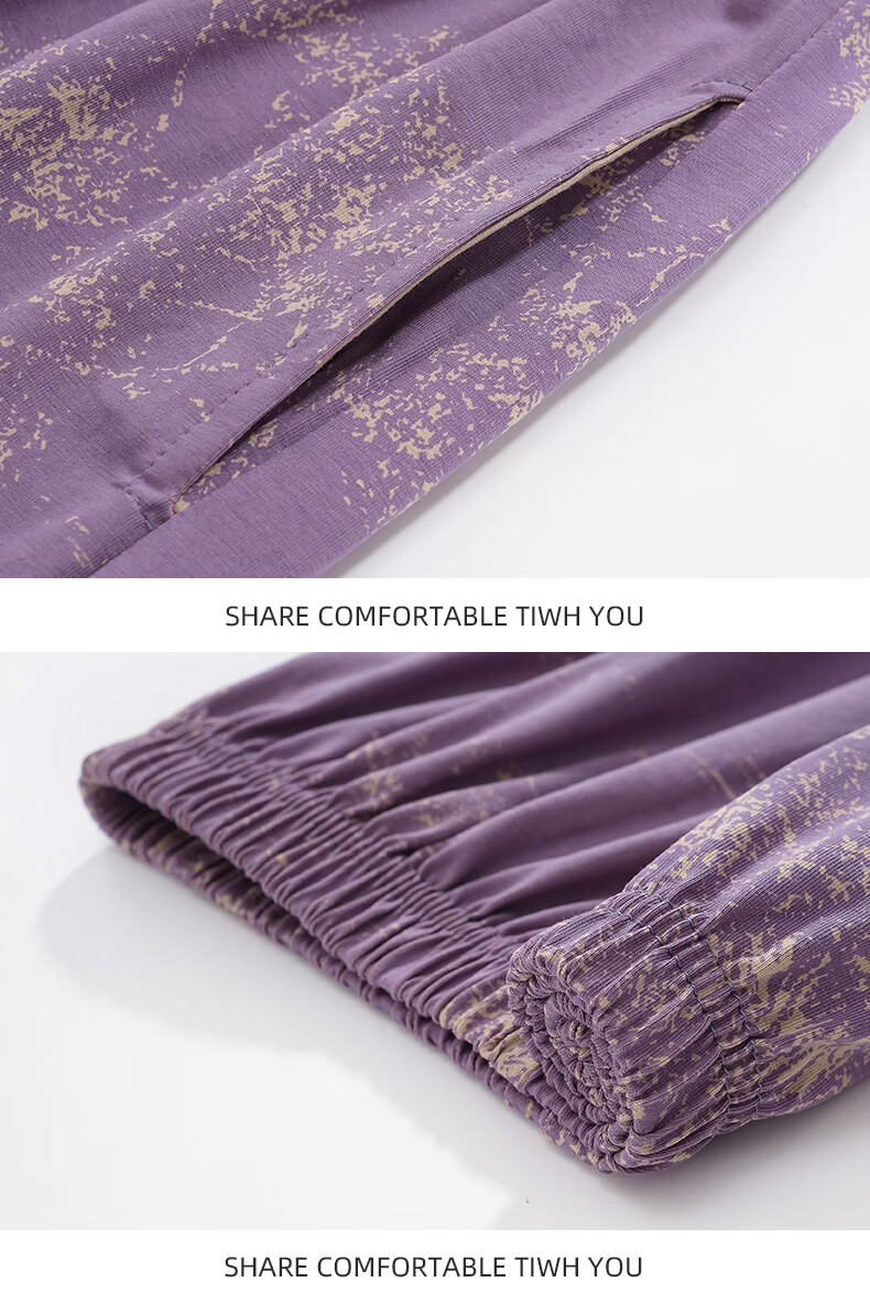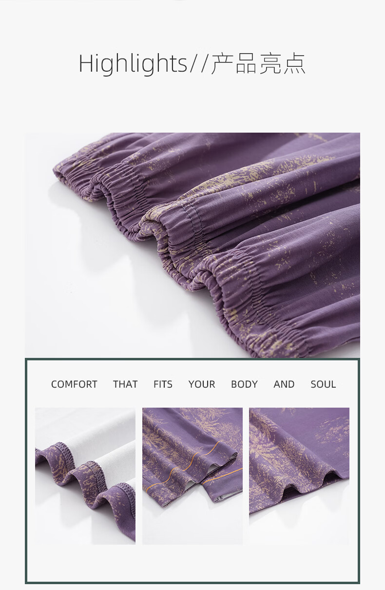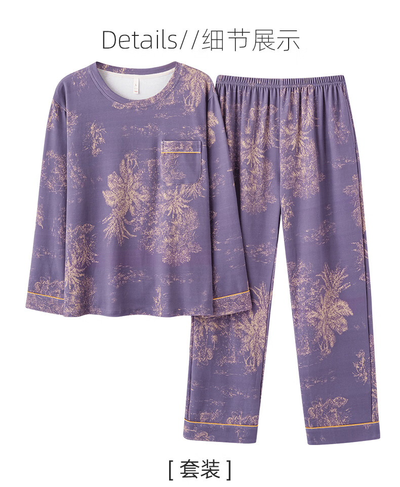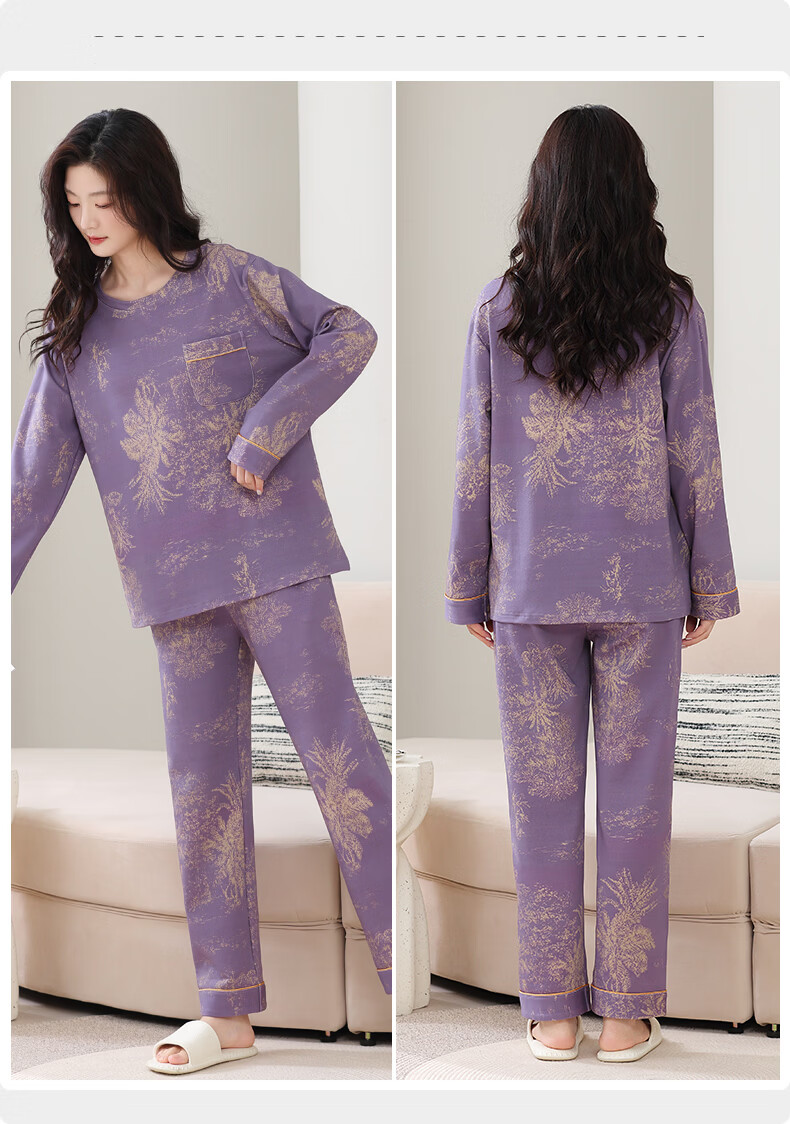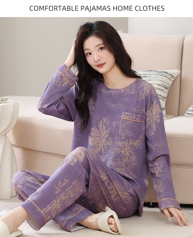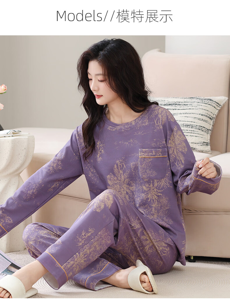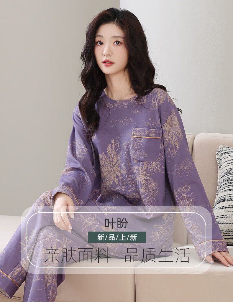 叶盼(yepan)【柔软】莱卡纯棉睡衣女士春秋季套头长袖宽松大码女款家居服套装 7611-紫色 M (160) :建议80-100斤穿着