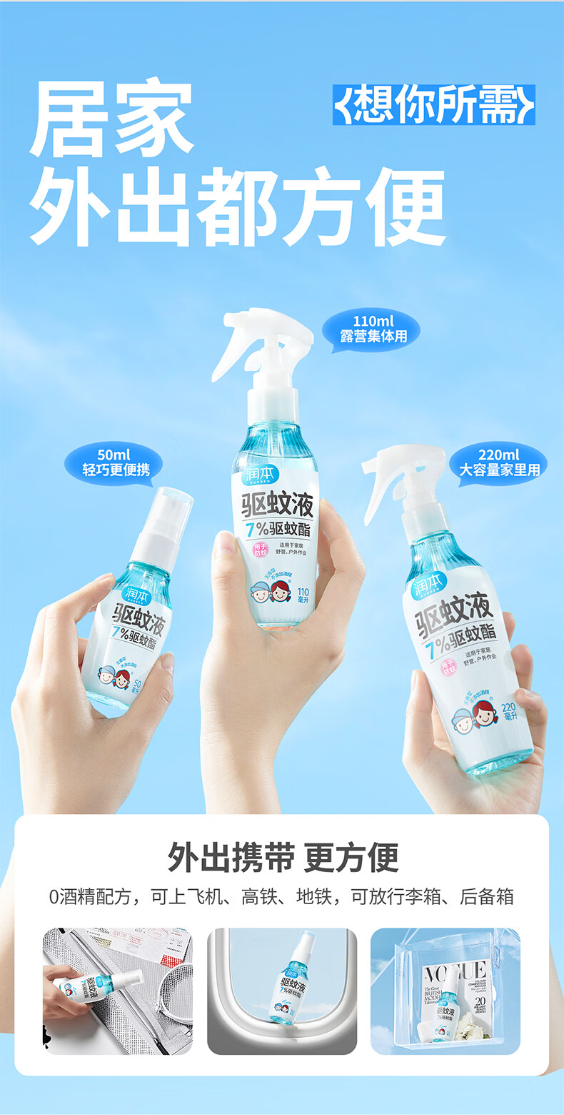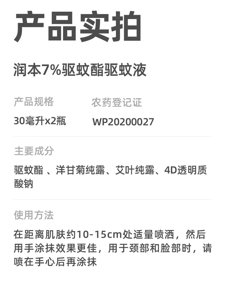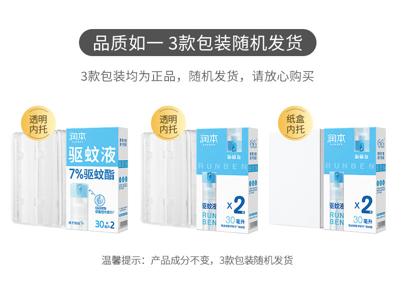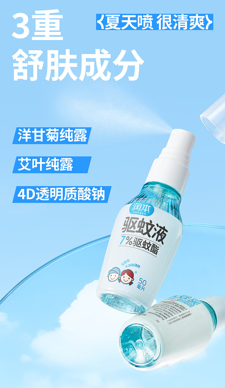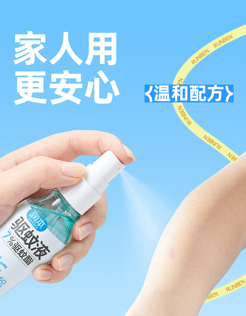 润本驱蚊液驱蚊喷雾花露水户外防蚊虫叮咬驱蚊水7%驱蚊酯无香 50ml 2瓶 【新客优选便携装】