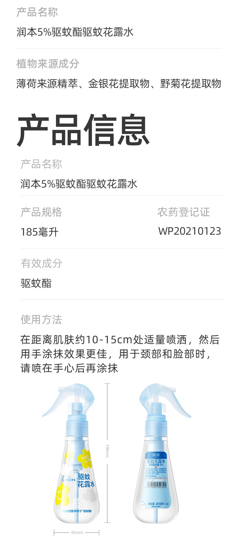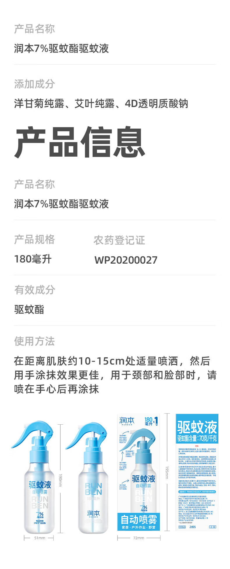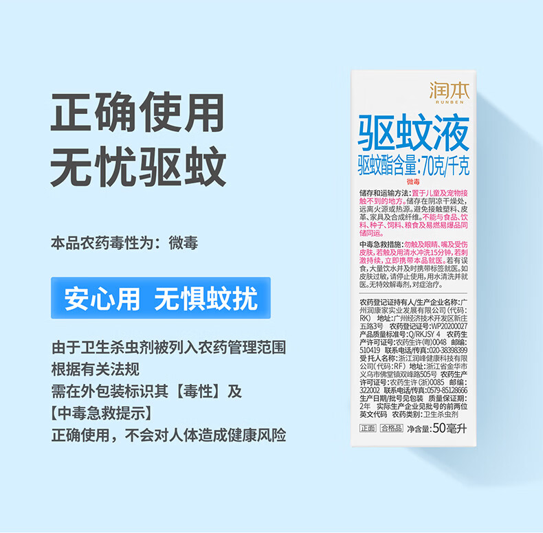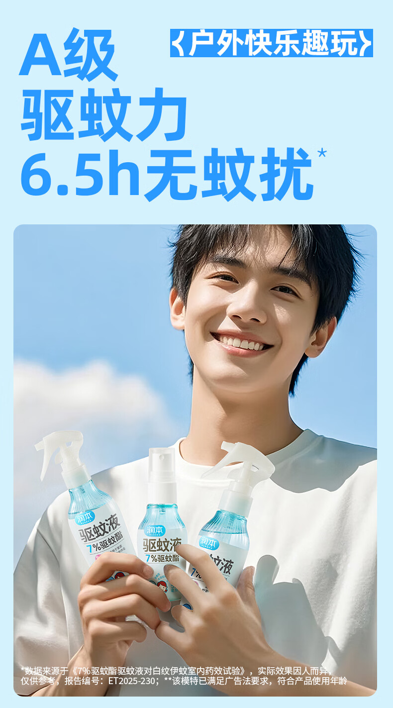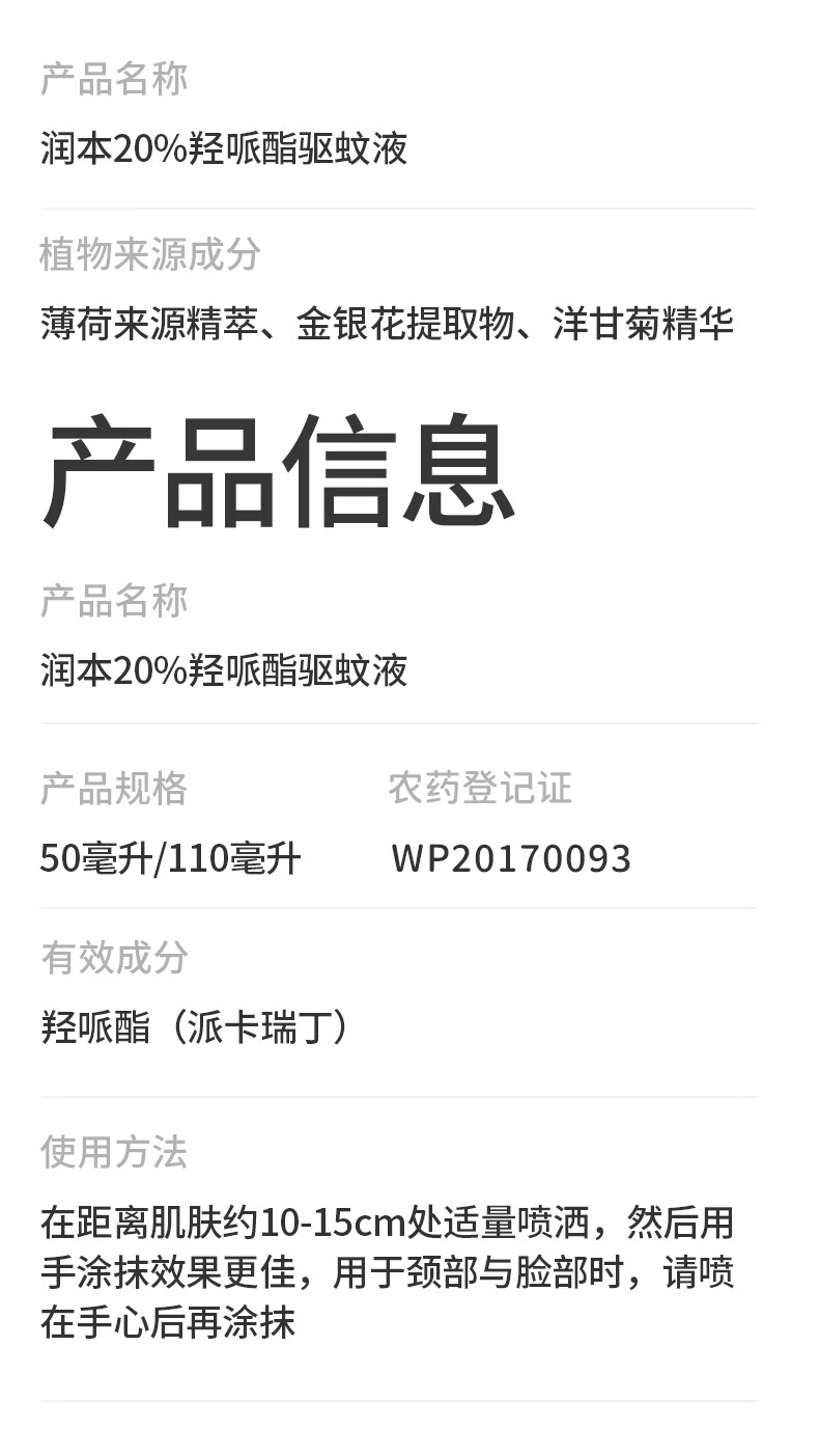 润本驱蚊液驱蚊喷雾花露水户外防蚊虫叮咬驱蚊水7%驱蚊酯无香 50ml 2瓶 【新客优选便携装】