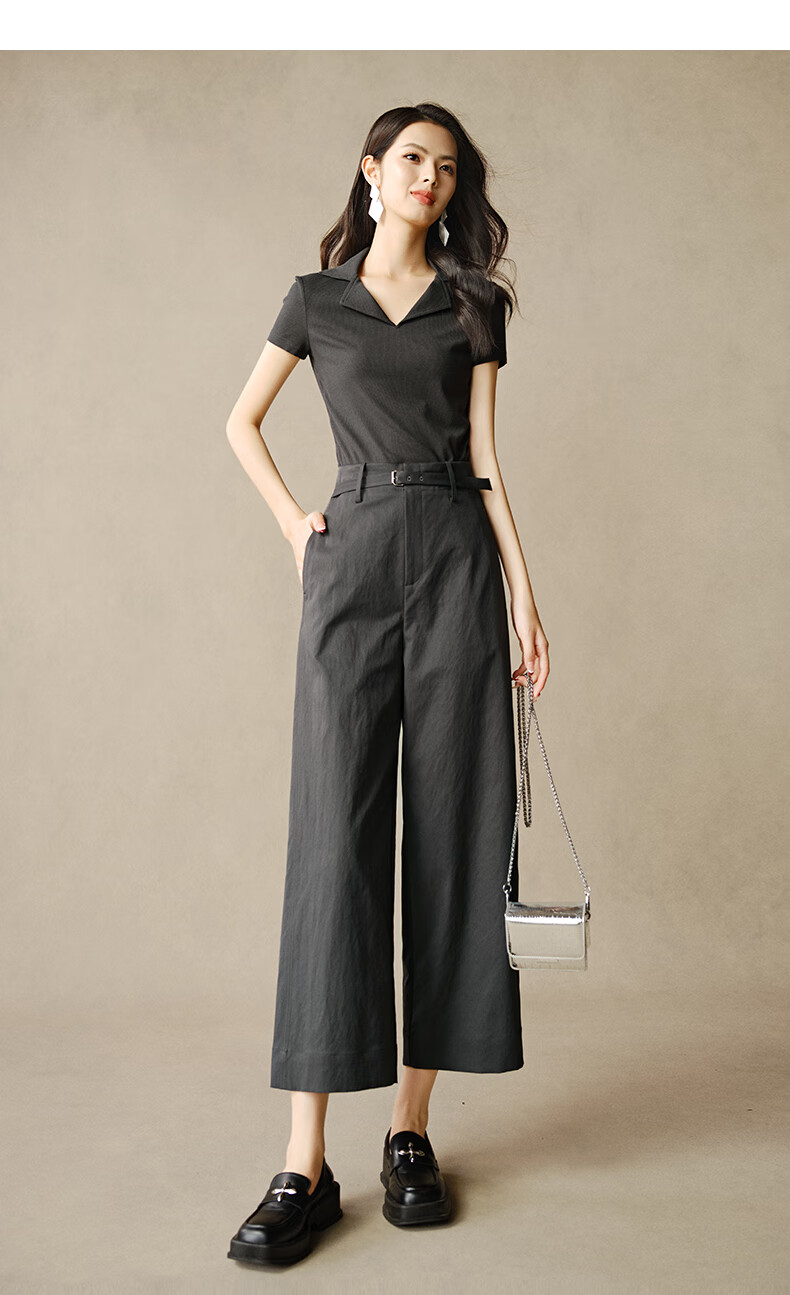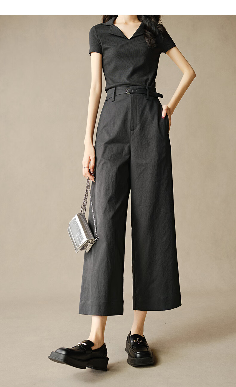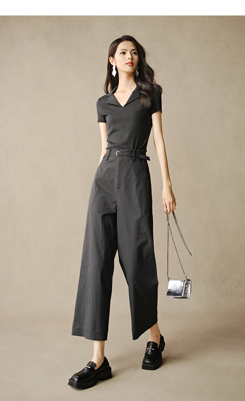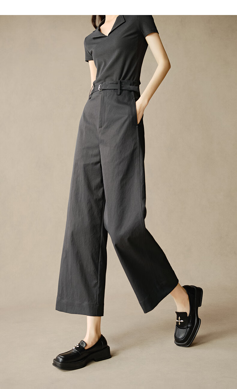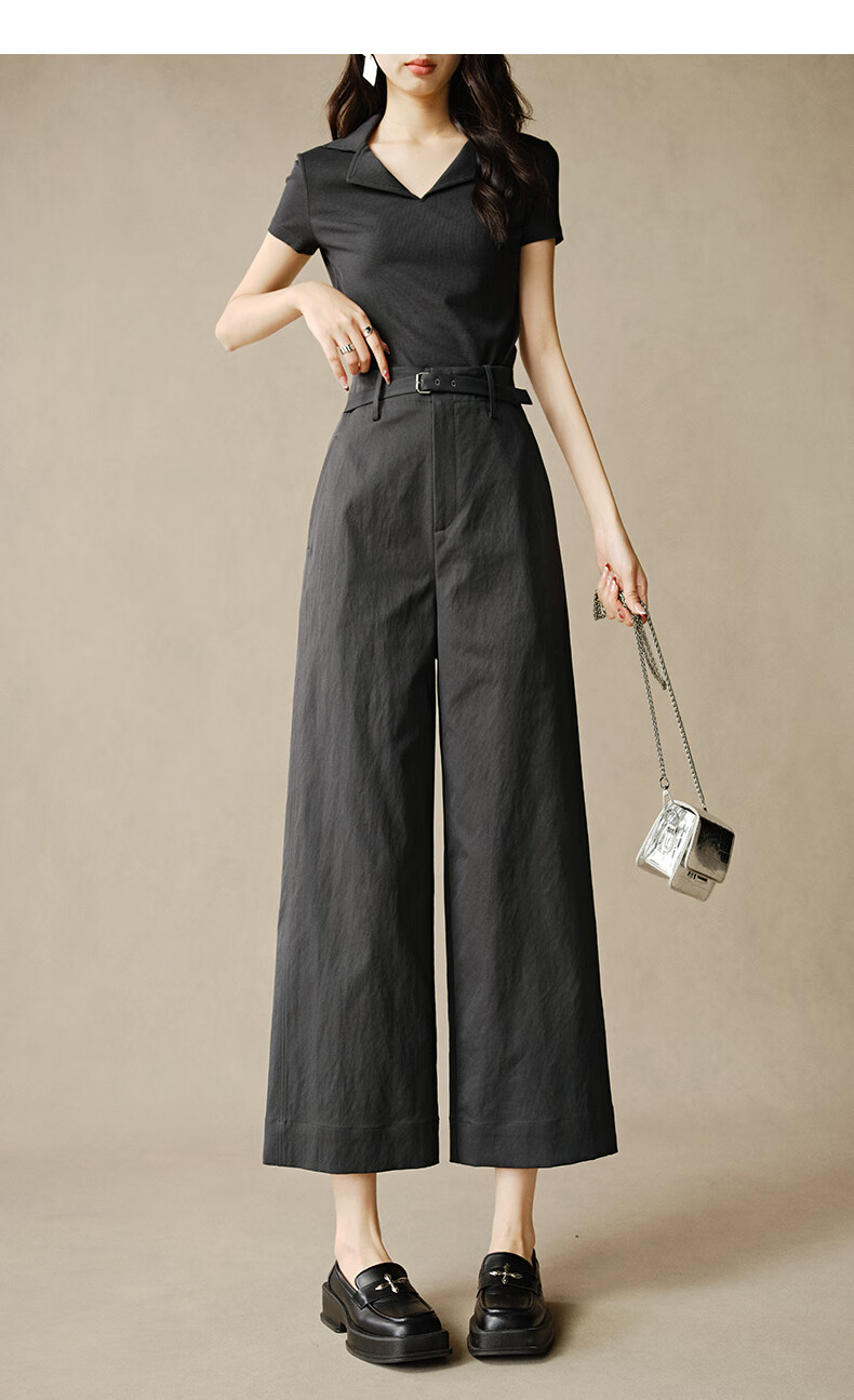 晚白【断码清仓】高腰显瘦香蕉裤纯色通勤九分裤休闲裤女 深灰色 27