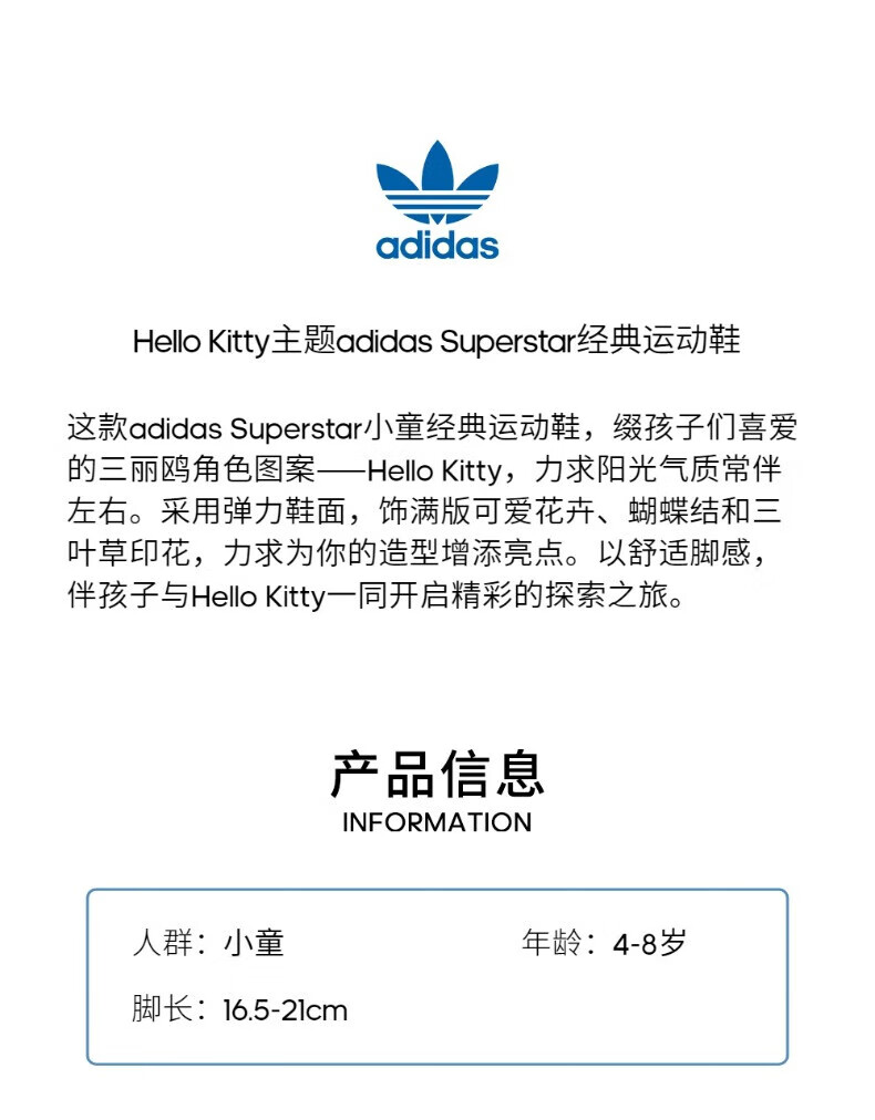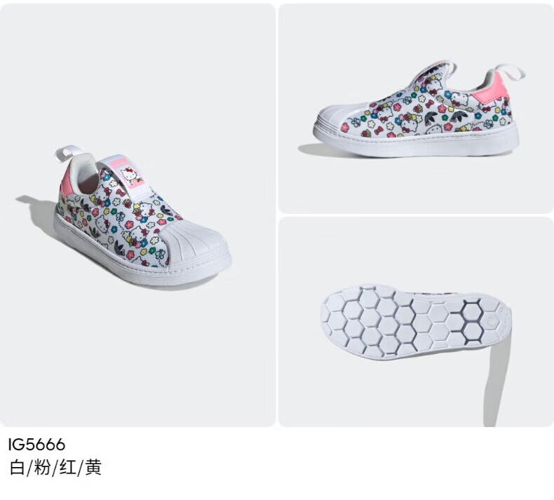 阿迪达斯(adidas)Hello Kitty猫联名童鞋夏秋款女童小童贝壳头板鞋IG5666