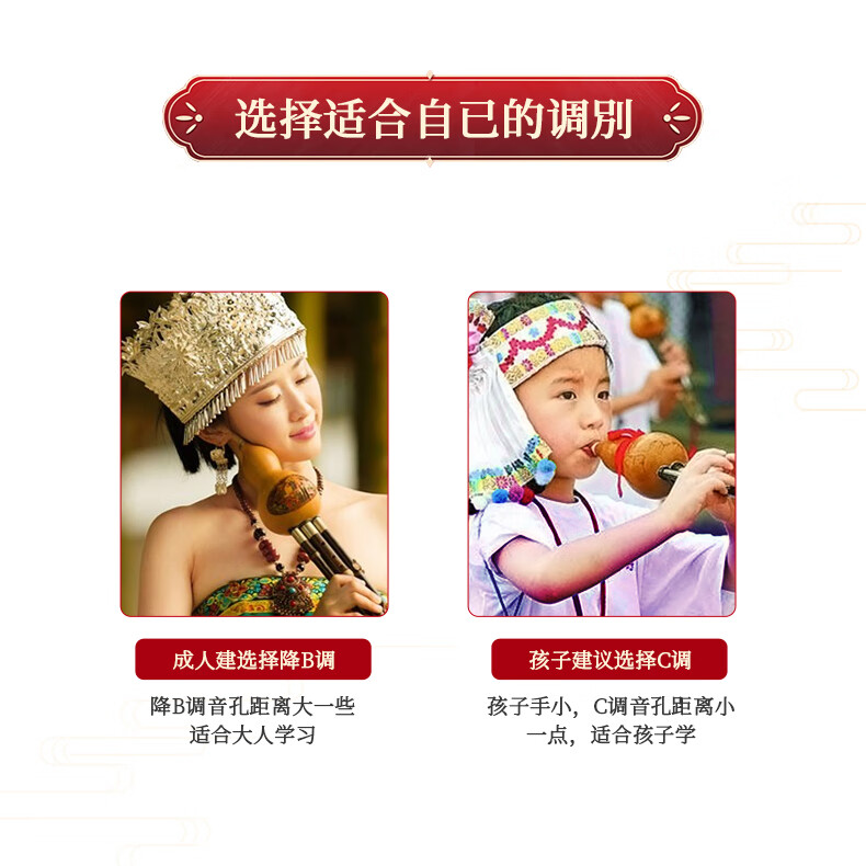 相思鸟葫芦丝乐器 三音音降B调 防摔白铜紫竹可拼插葫芦丝 降b调初学