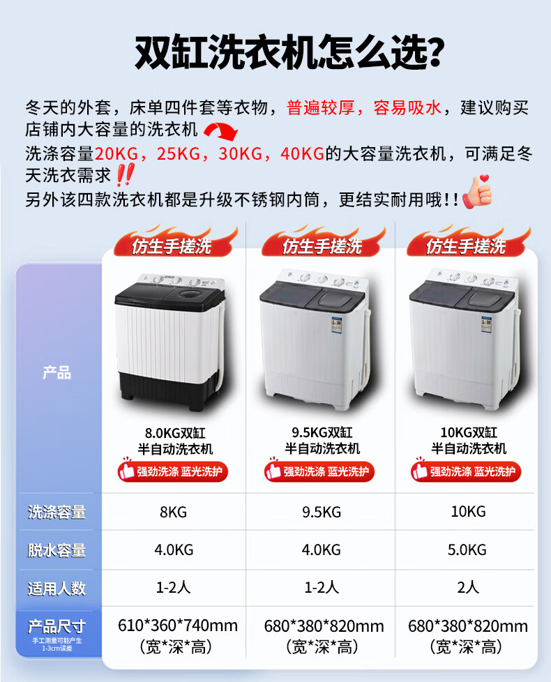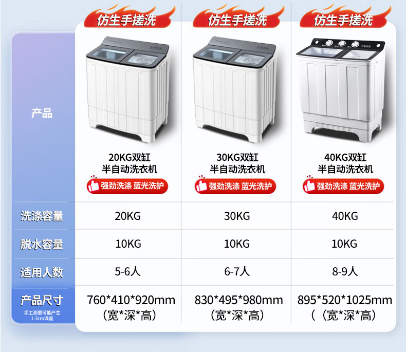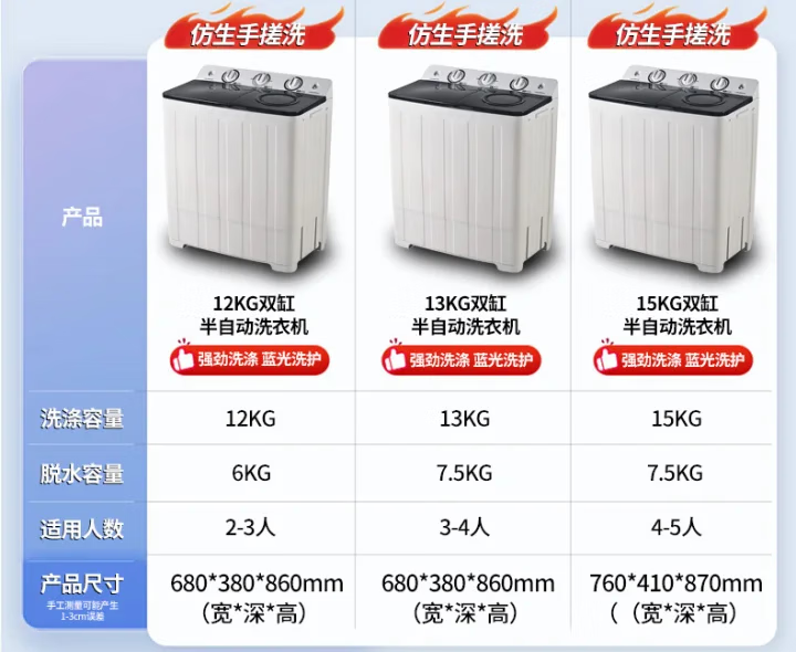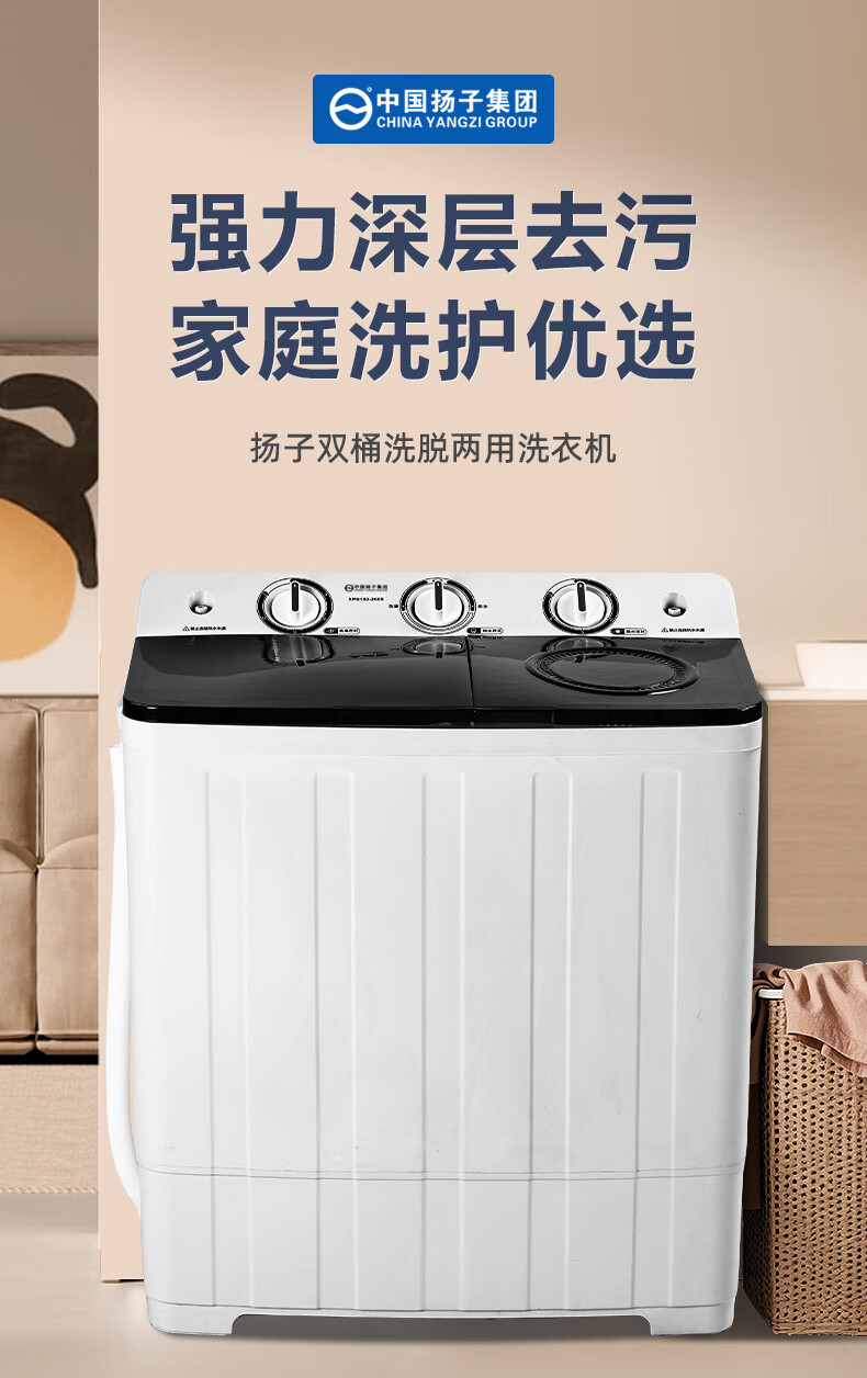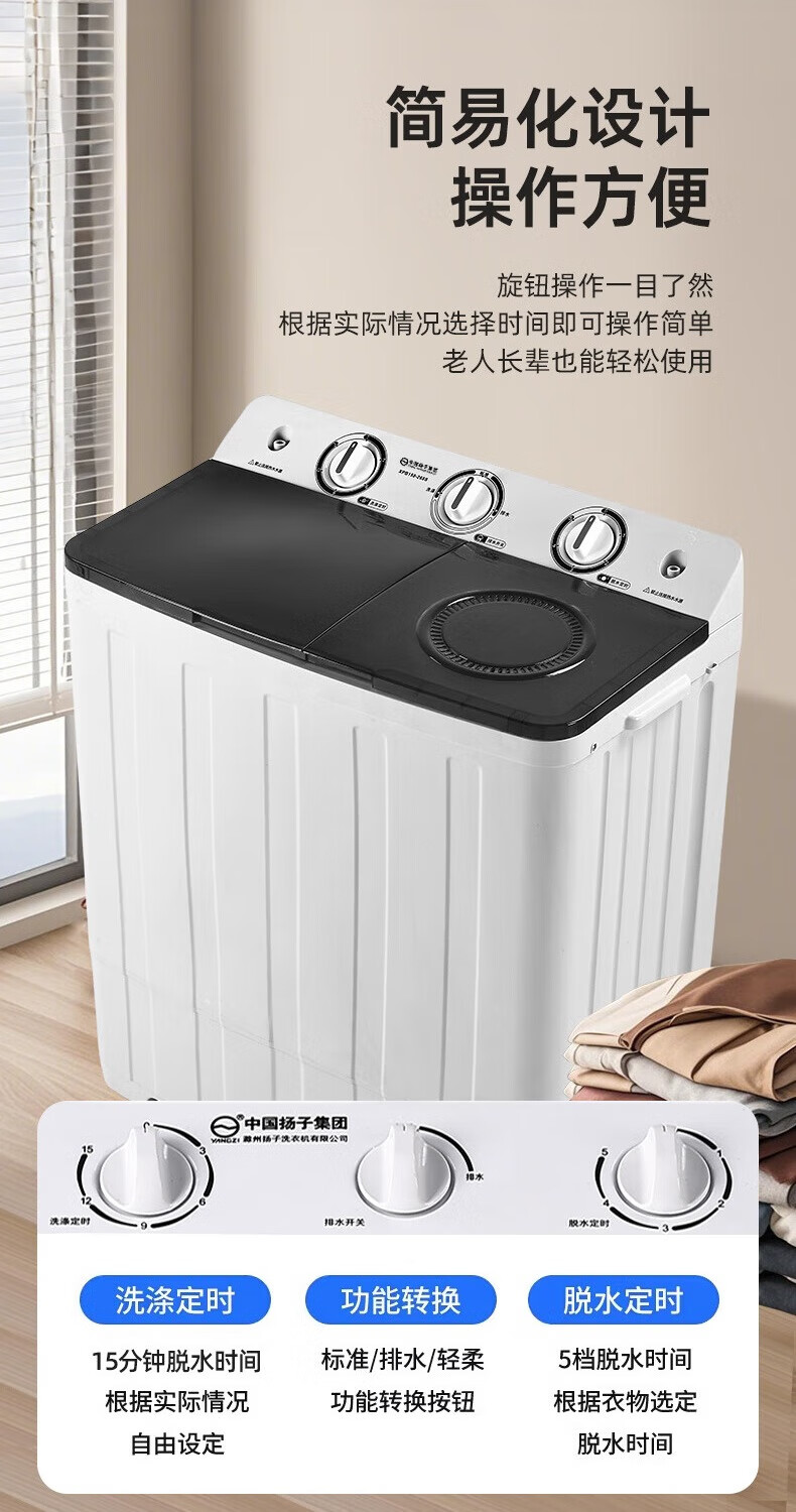 扬子中国扬子集团洗衣机 半自动大容量30KG家用双桶双缸洗衣机脱水双筒 18公斤加厚【洗12KG+ 脱6KG】|蓝光洗护