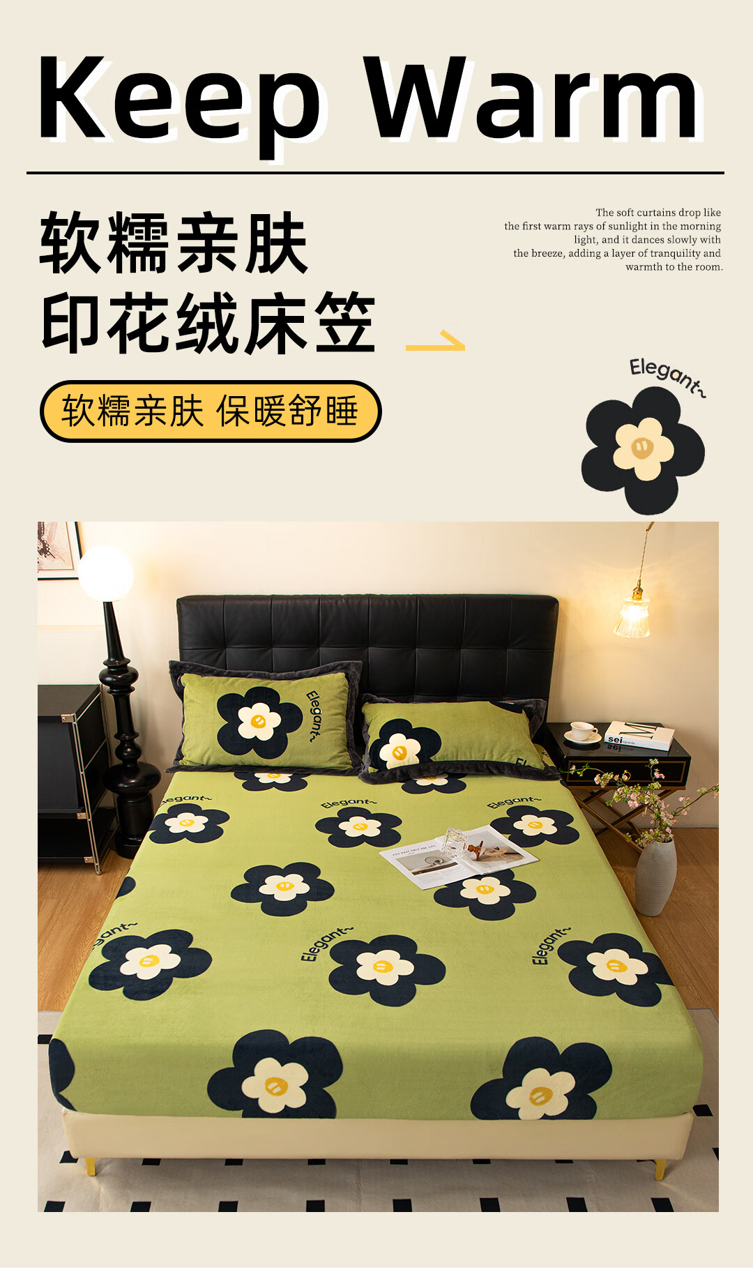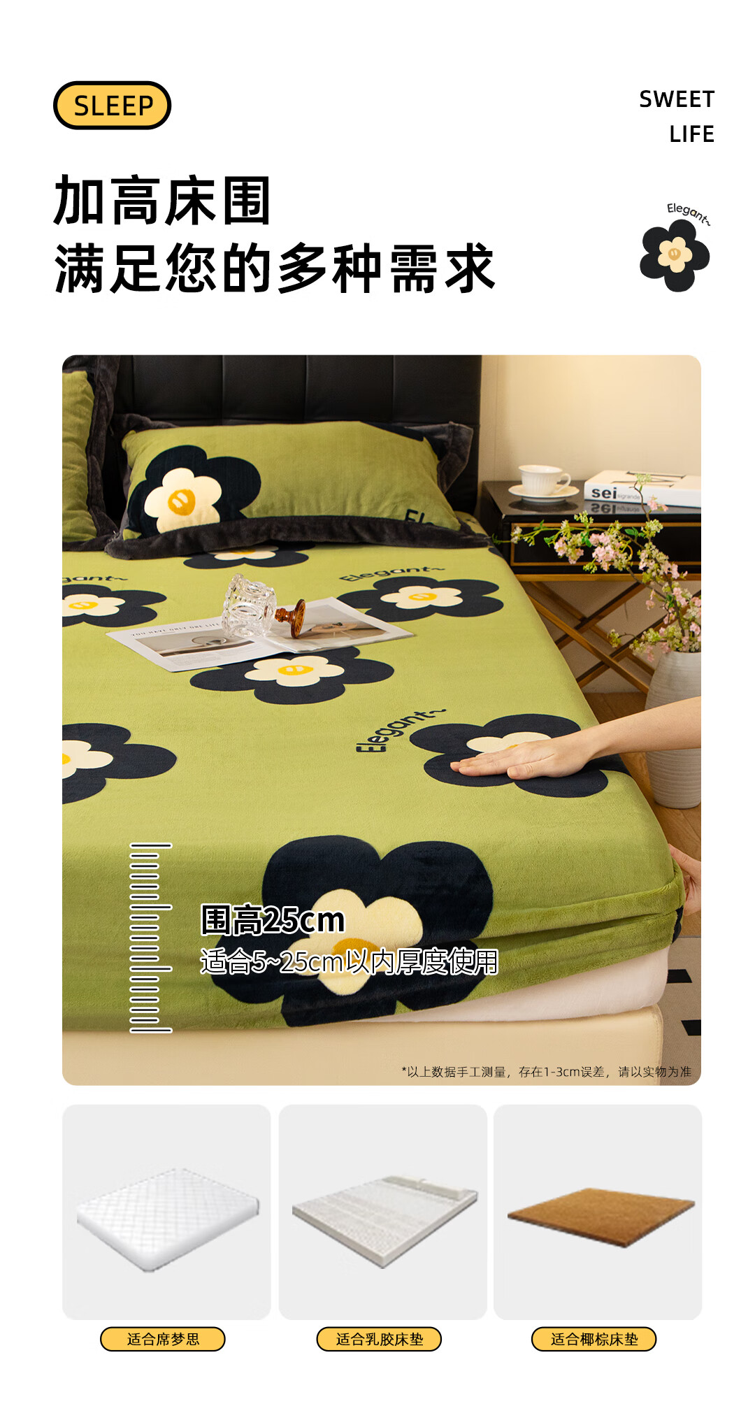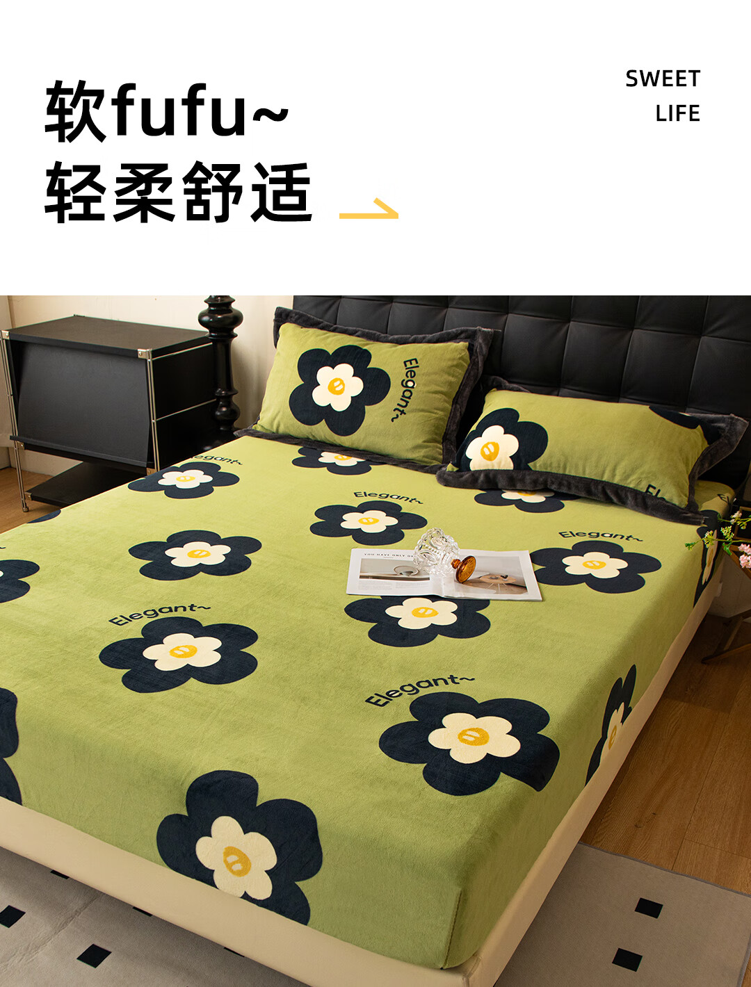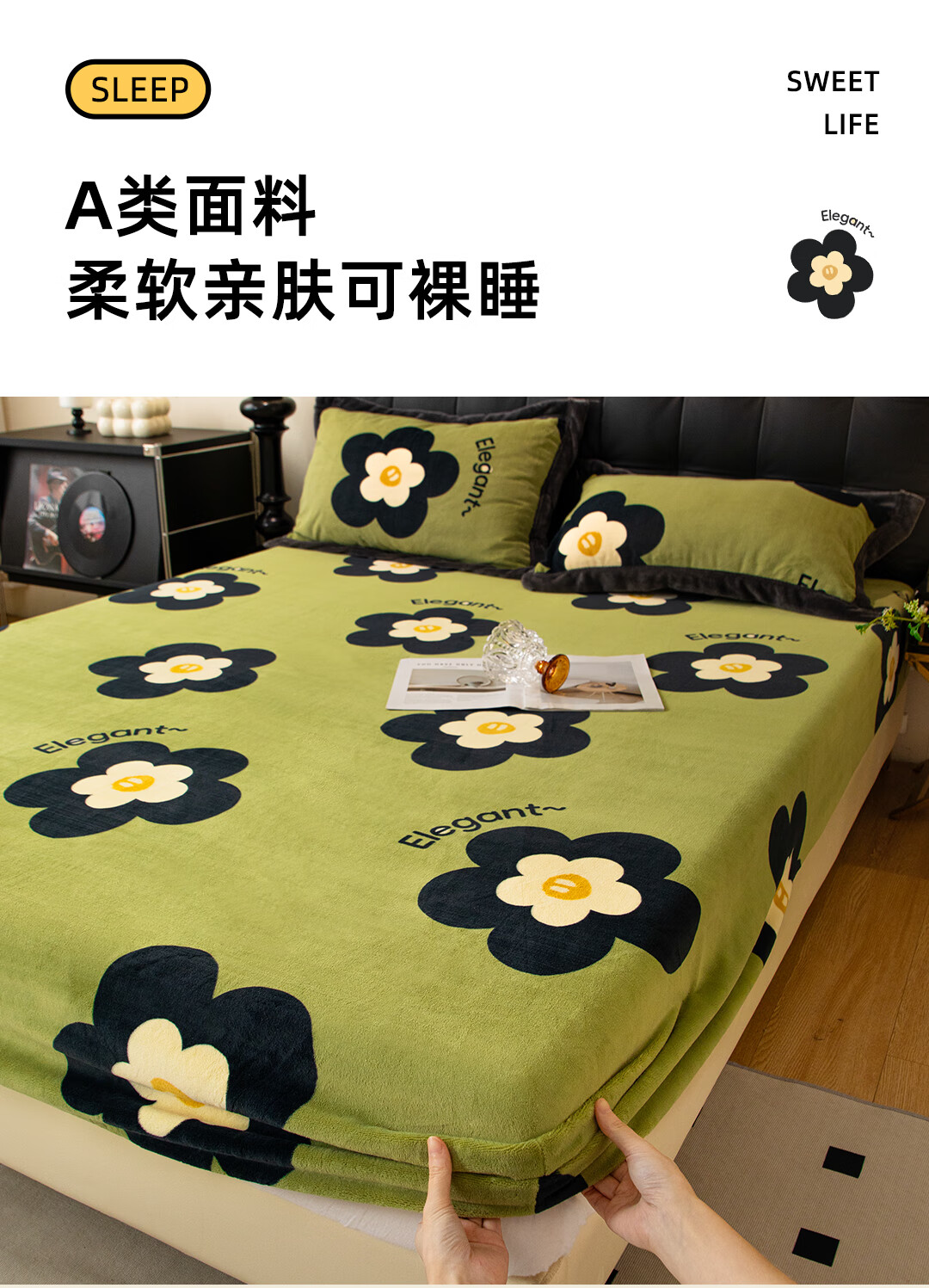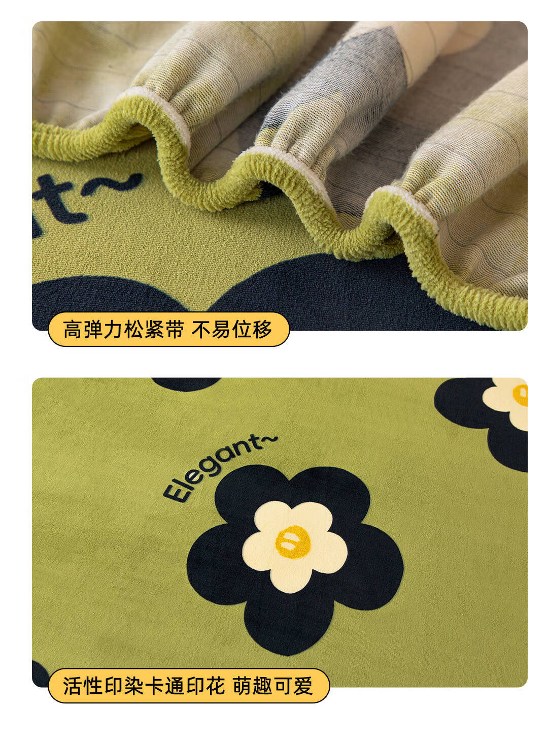 高睿加厚牛奶绒床笠单件冬季加绒法兰珊瑚绒床罩床垫保护罩全包床单套 米底碎花熊【加厚保暖】 绒床笠单件-150x200cm