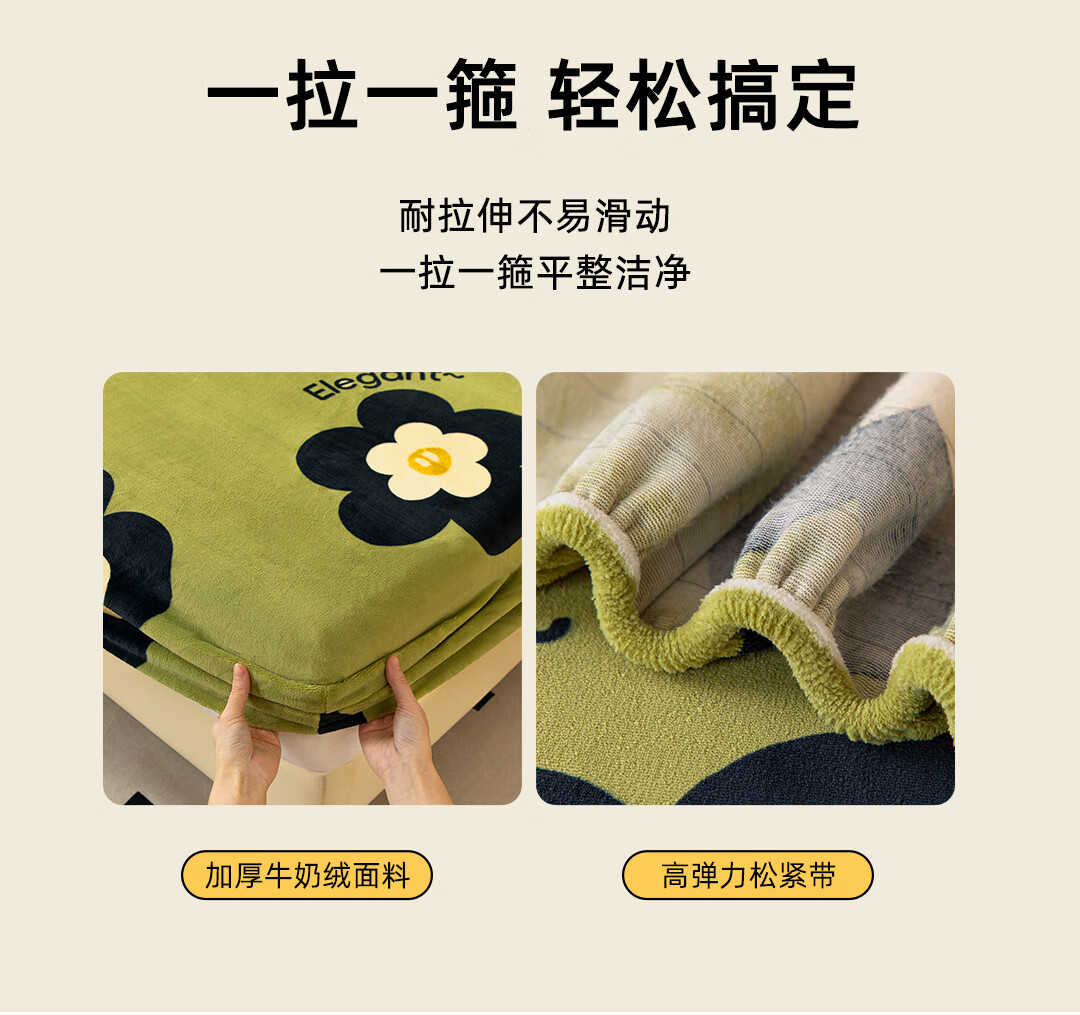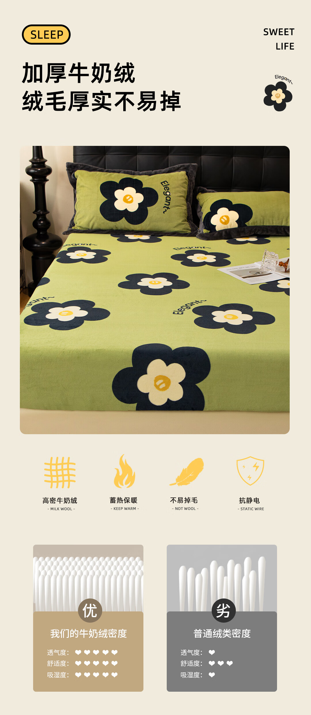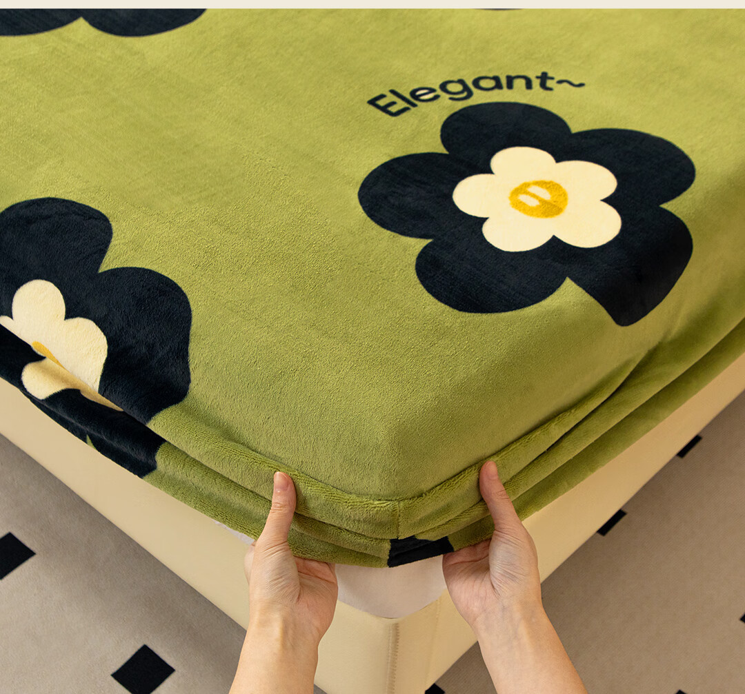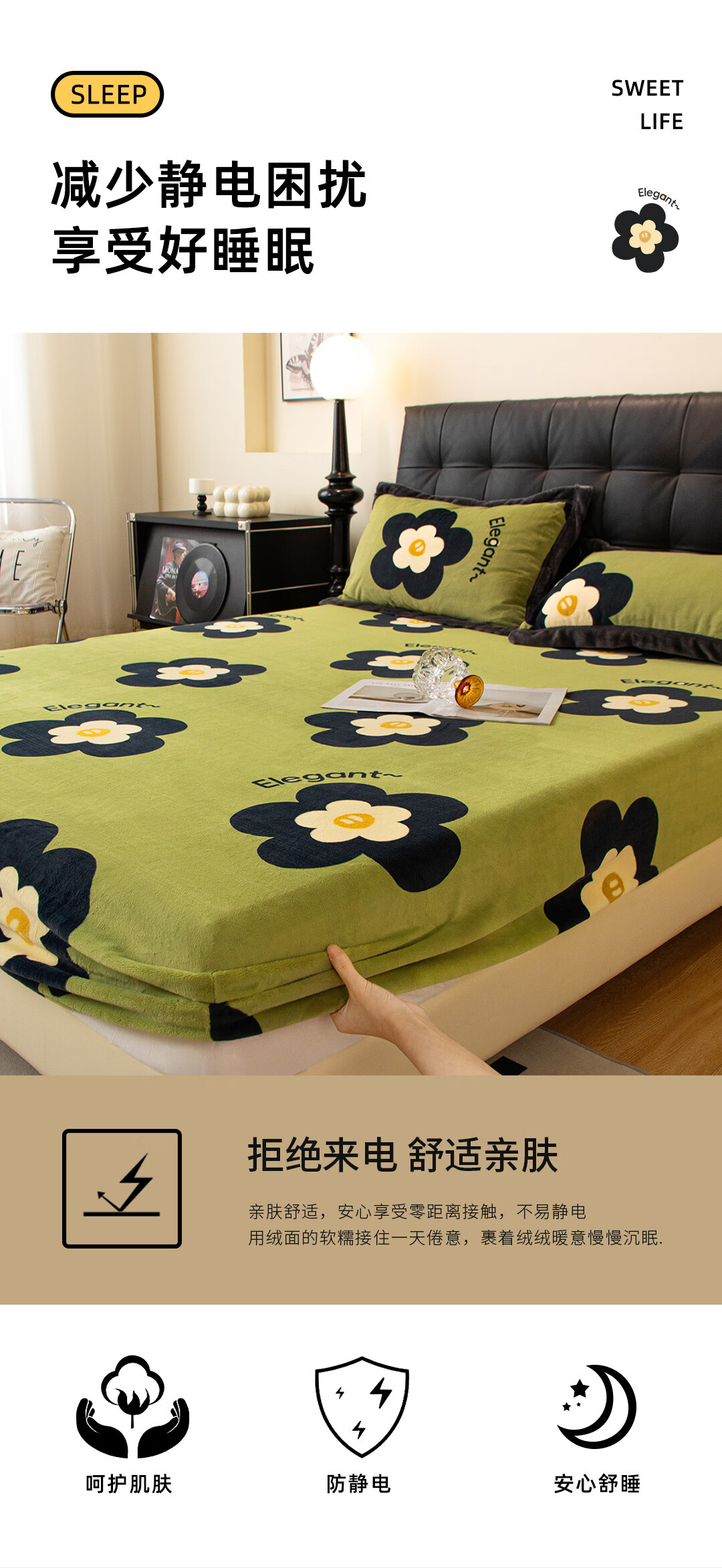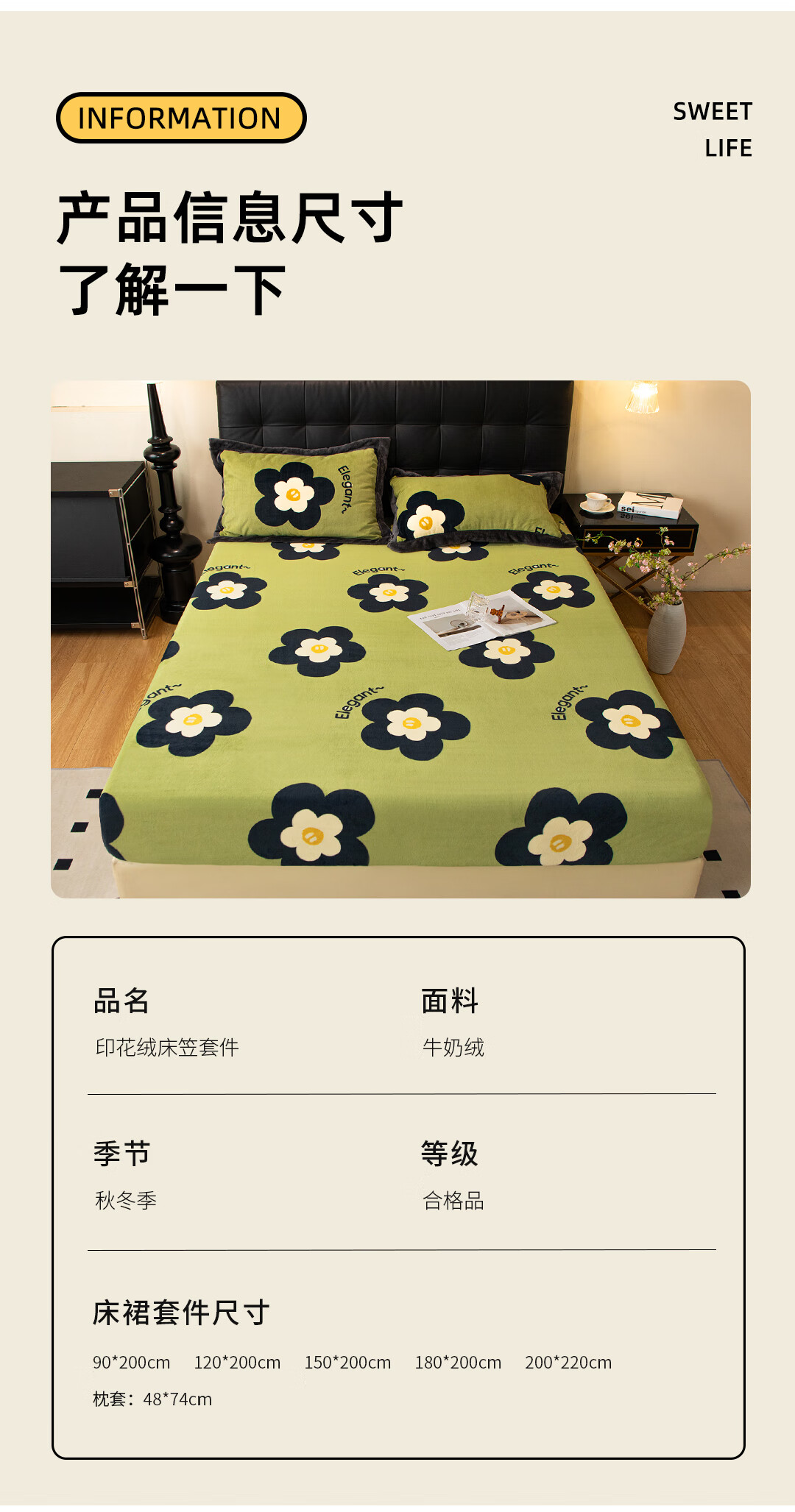 高睿加厚牛奶绒床笠单件冬季加绒法兰珊瑚绒床罩床垫保护罩全包床单套 米底碎花熊【加厚保暖】 绒床笠单件-150x200cm