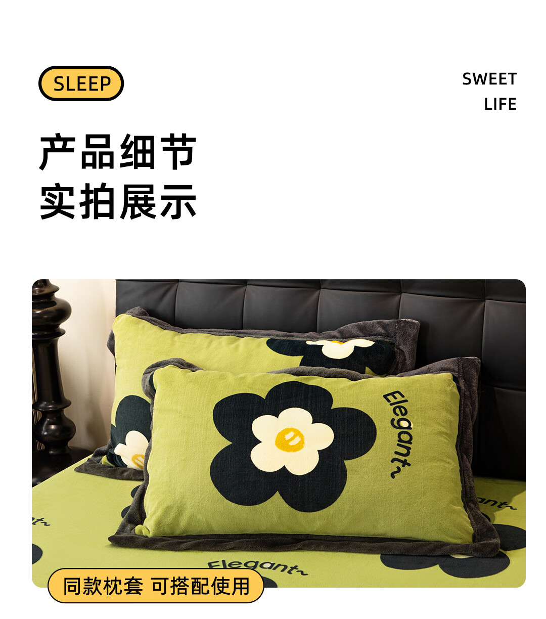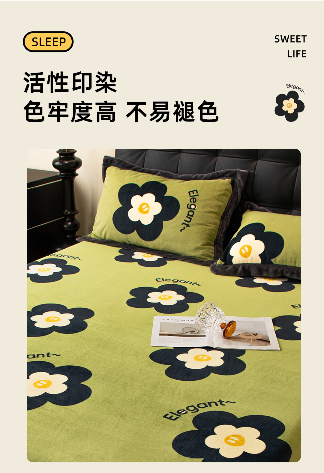 高睿加厚保暖牛奶绒床单单件双人宿舍学生宿舍被单床上专用冬季加绒 绿色大花 120*230cm