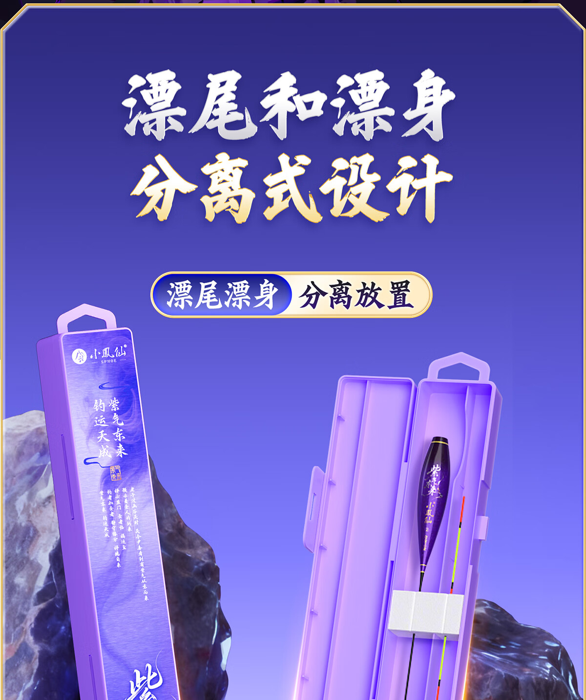 小凤仙紫气东来UV打印夜光漂漂盒漂身漂尾分离式电子漂鱼漂收纳盒浮漂盒 紫气东来精美收纳盒 35.5CM