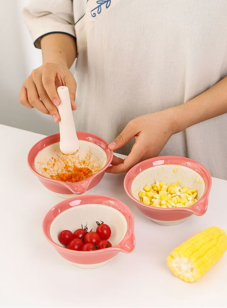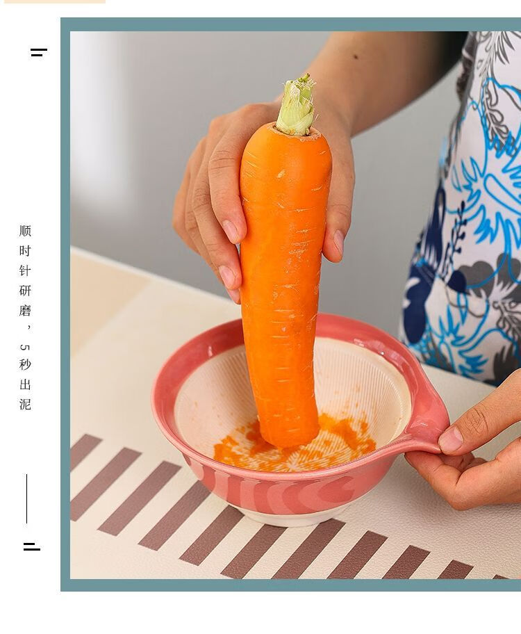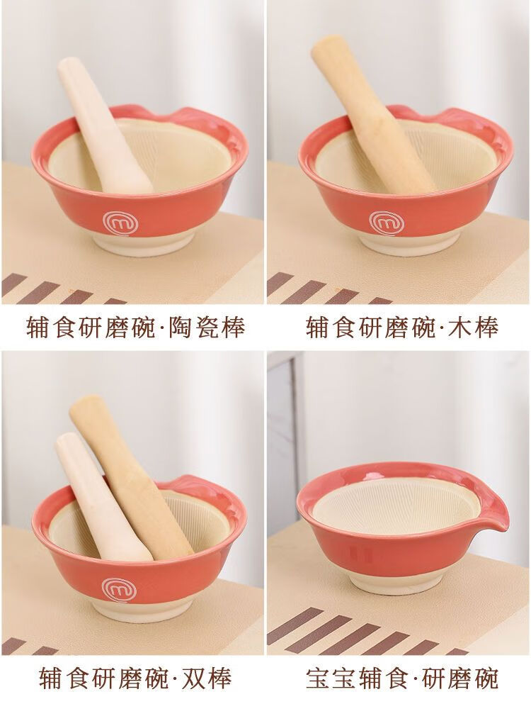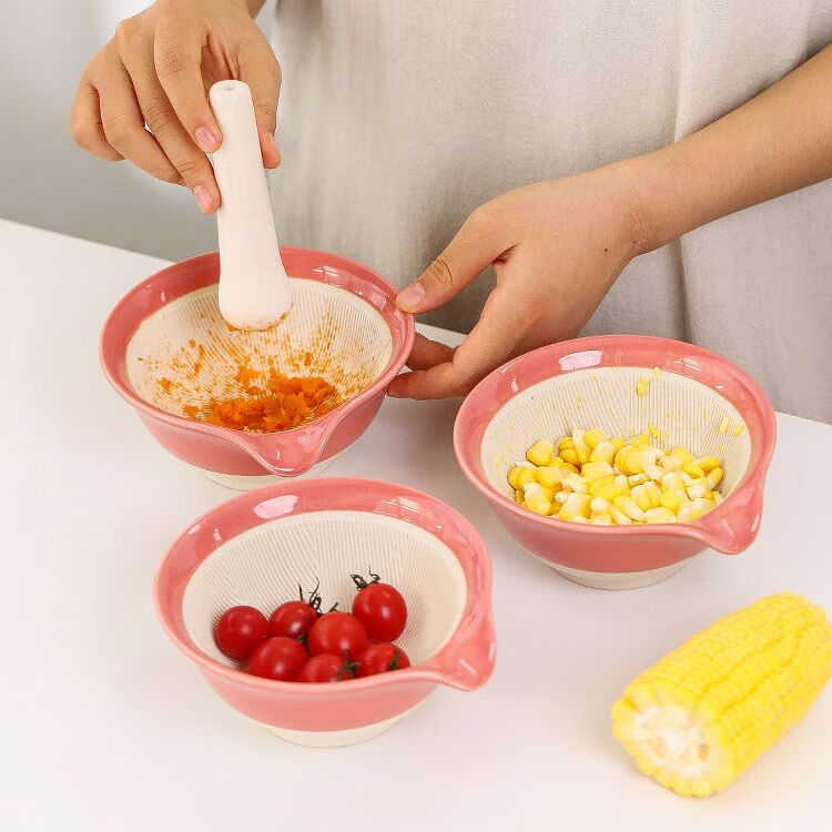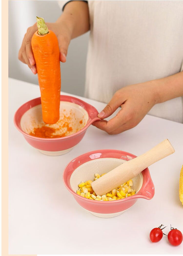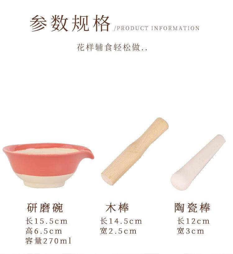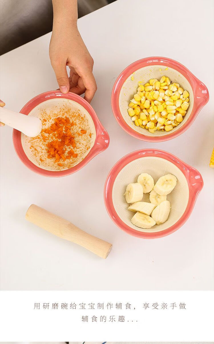 花沐禧陶瓷研磨碗婴儿研磨碗中药磨粉碗宝宝果蔬米糊肉泥研磨辅食碗 粉色研磨碗+木棒