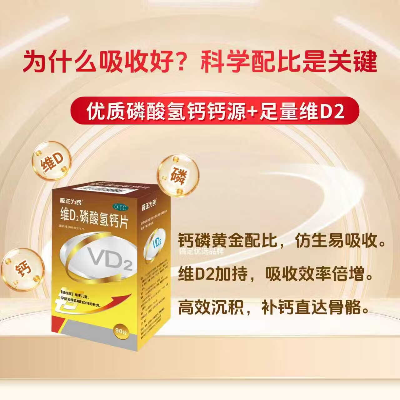 [石药集团]维D2磷酸氢钙片 500IU:0.15g*90片 1盒装 补钙