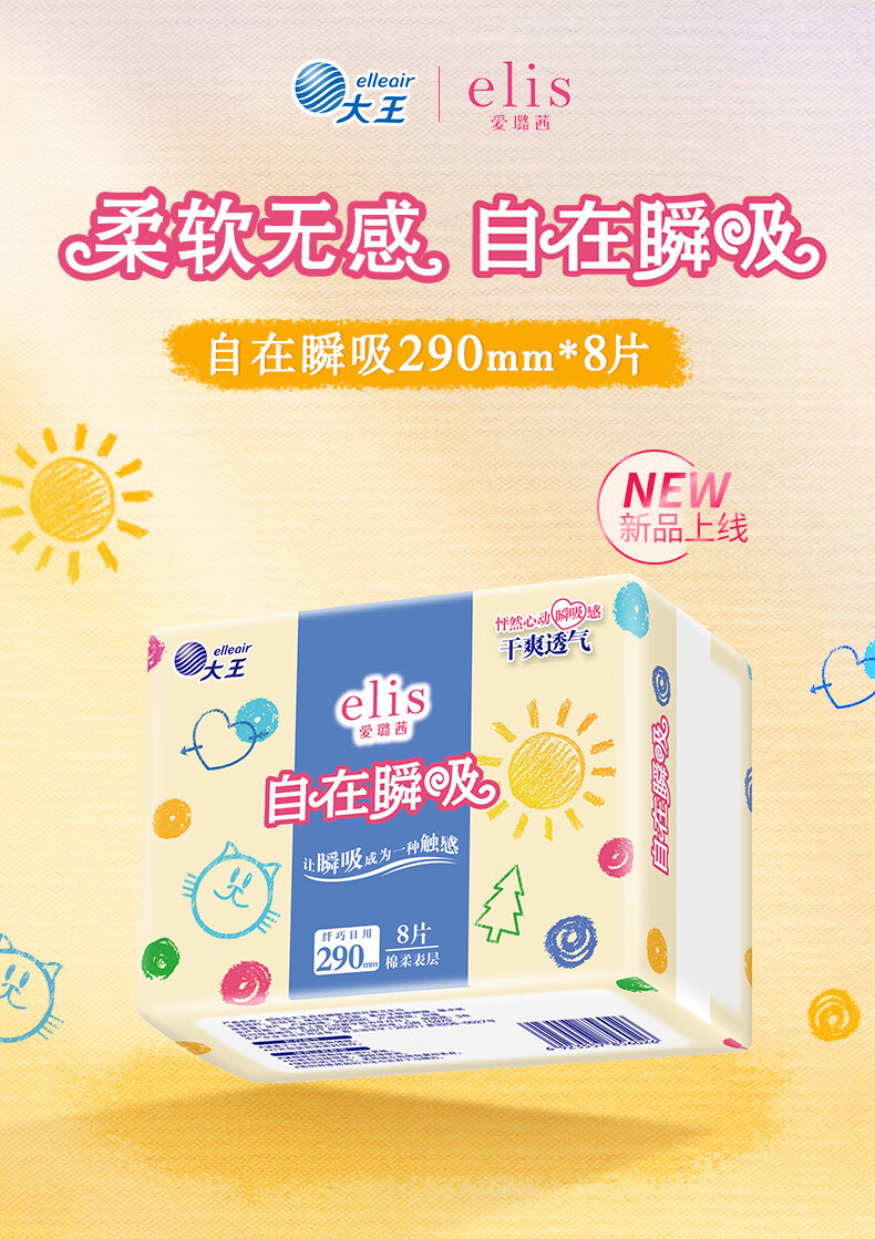 爱璐茜日用卫生巾 大王自在瞬吸姨妈巾超薄透气 棉柔 290mm 24片 【日用/夜用】