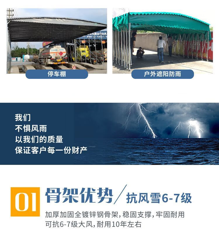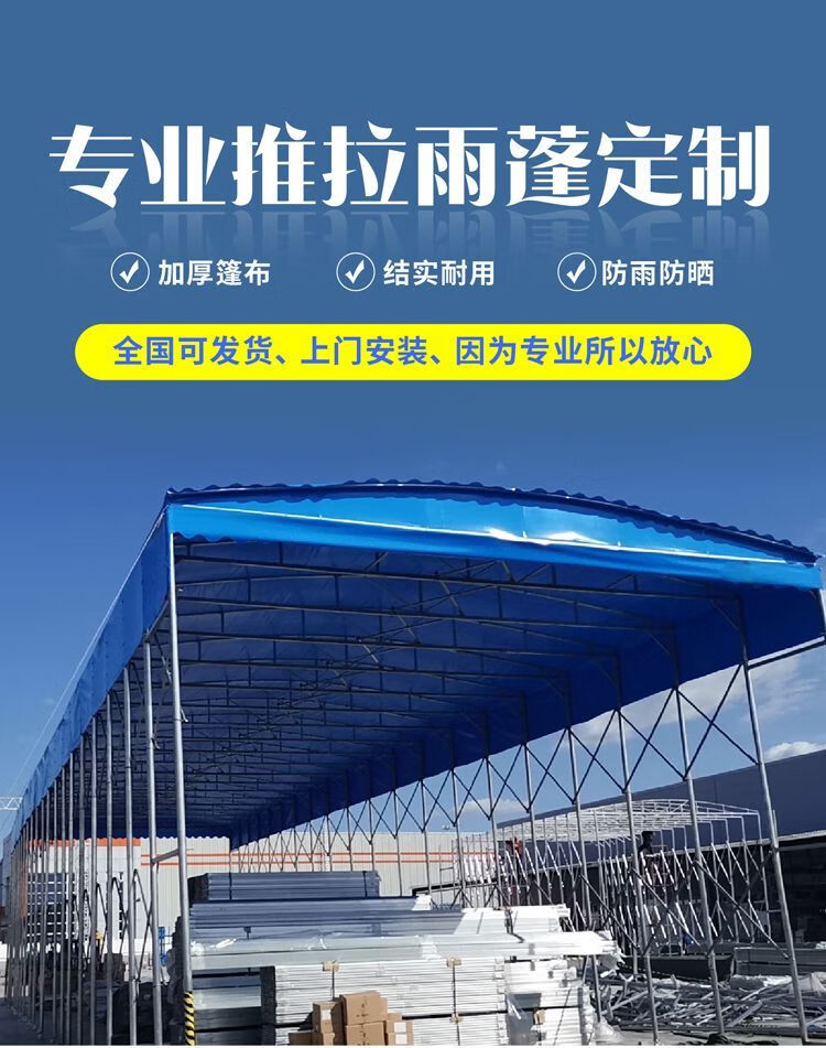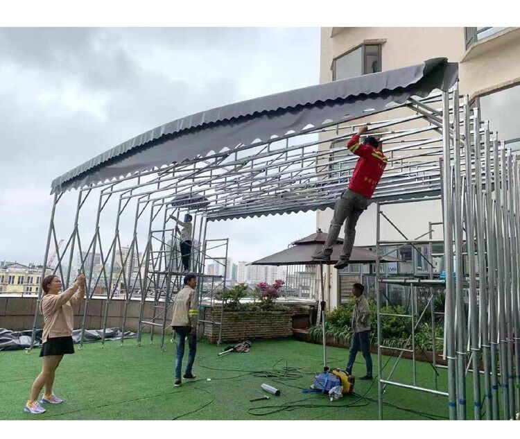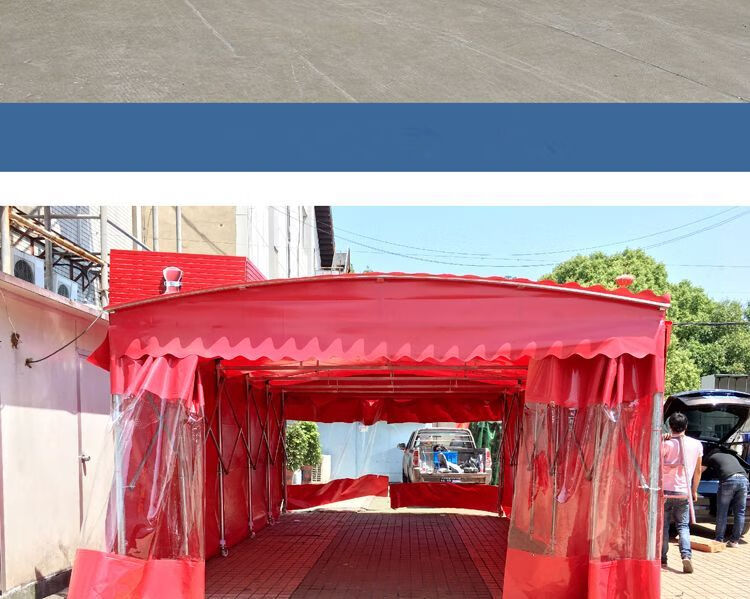 大型推拉雨棚定制户外厂房仓库活动棚篮球场遮阳帐篷移动伸缩雨蓬 红色 长4*宽4高2.5米 顶布+钢架 质保10年