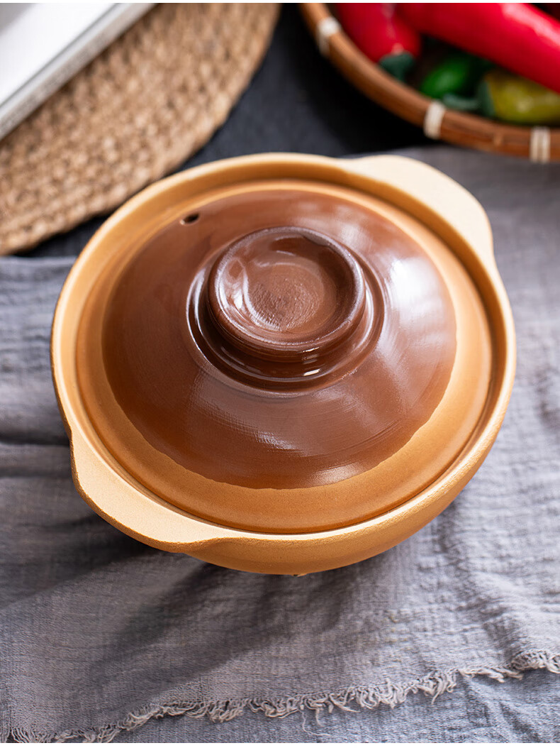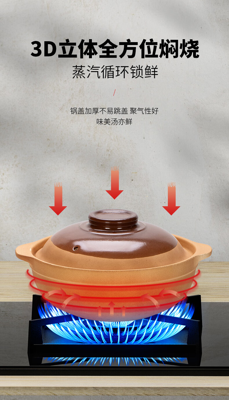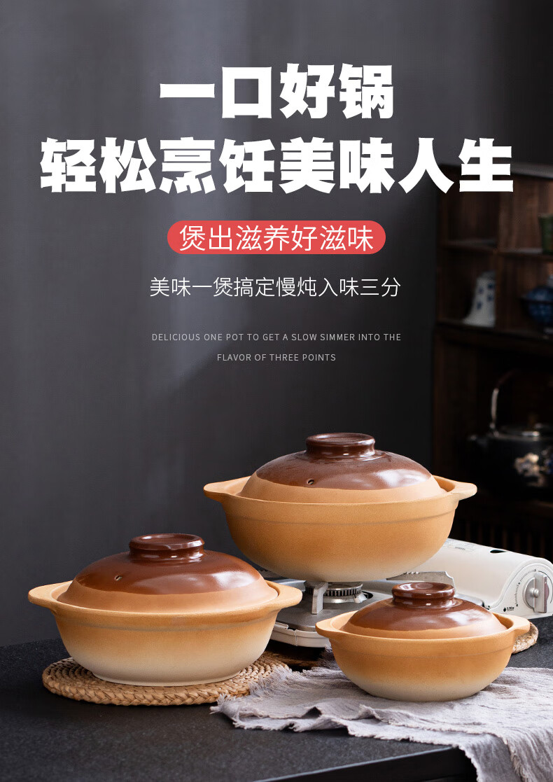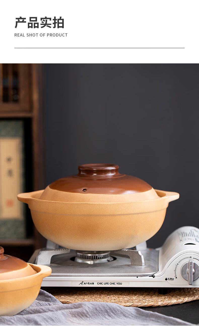 炎礼陶瓷老式砂锅煲家用汤锅煲仔饭燃气灶明火专用耐高温干烧不裂 30#复古平煲(有盖) 适用7-10人 4000ml