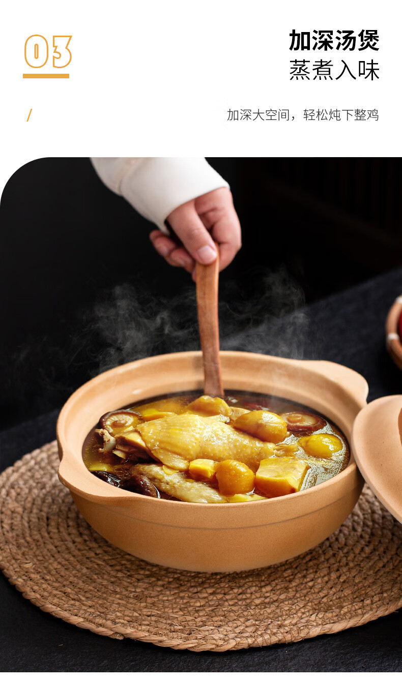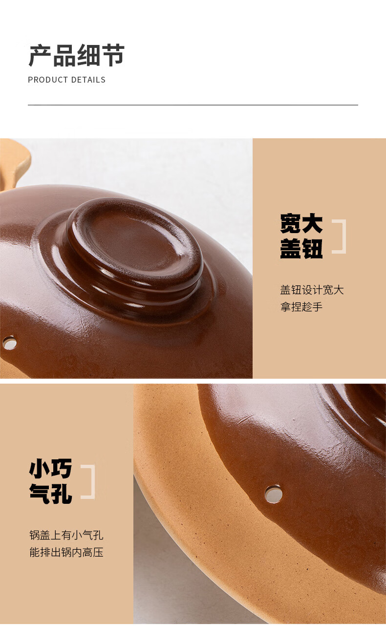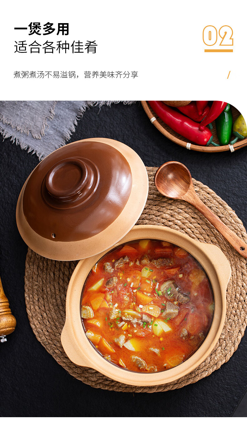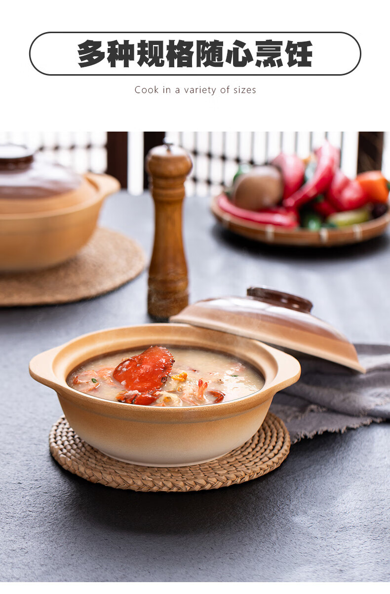 炎礼陶瓷老式砂锅煲家用汤锅煲仔饭燃气灶明火专用耐高温干烧不裂 30#复古平煲(有盖) 适用7-10人 4000ml