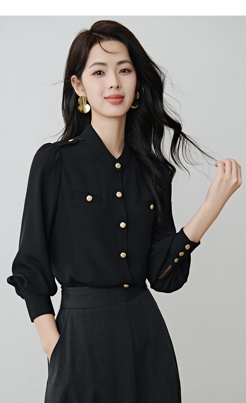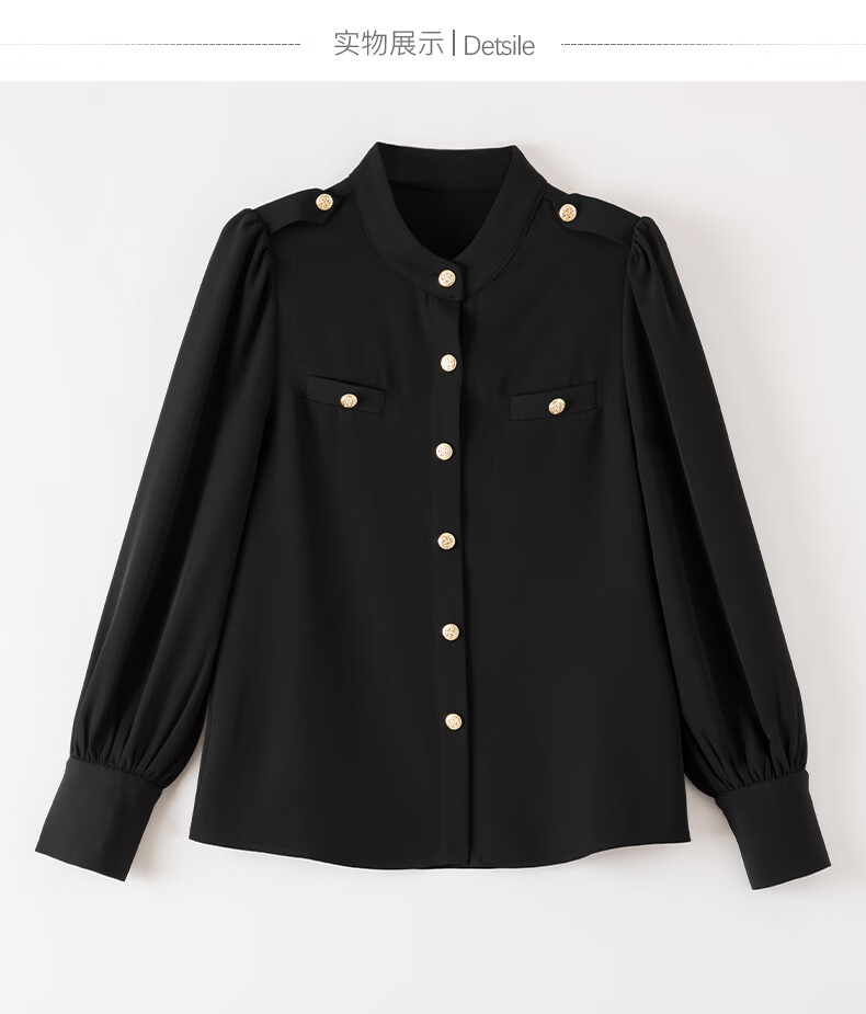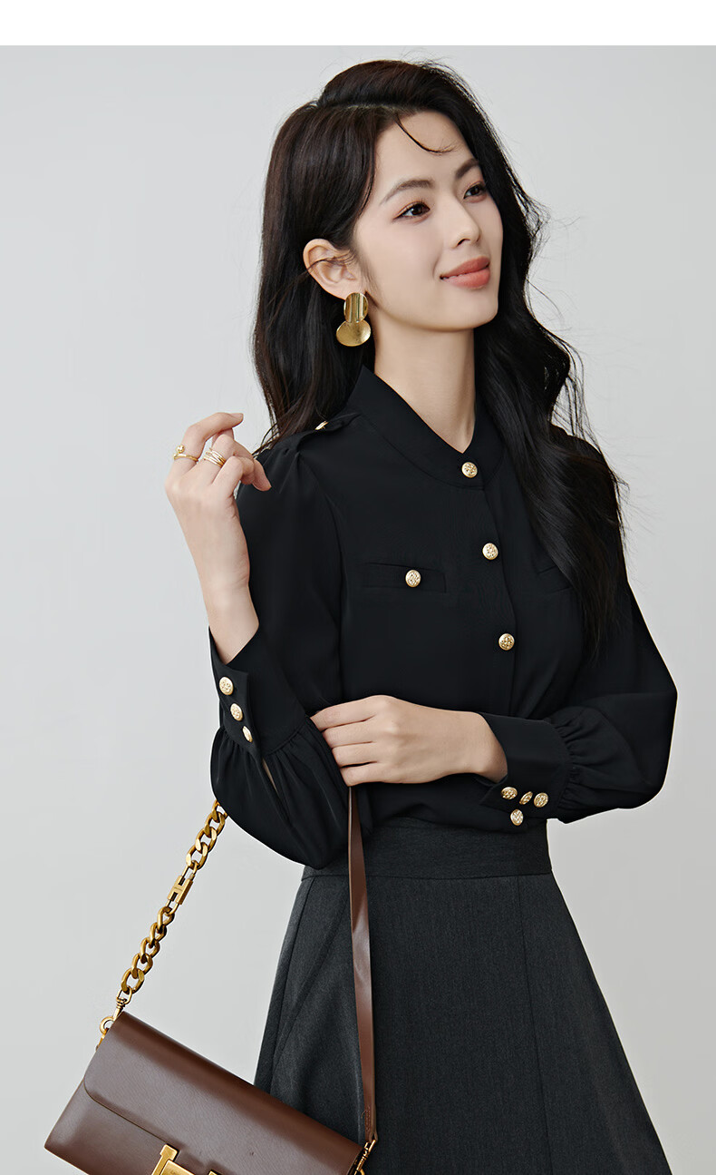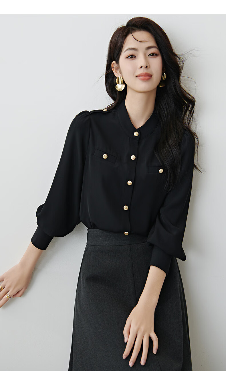 晚白【新品】2026春款气质小立领正肩上衣垂顺利落千金风小香衬衫女 黑色 M