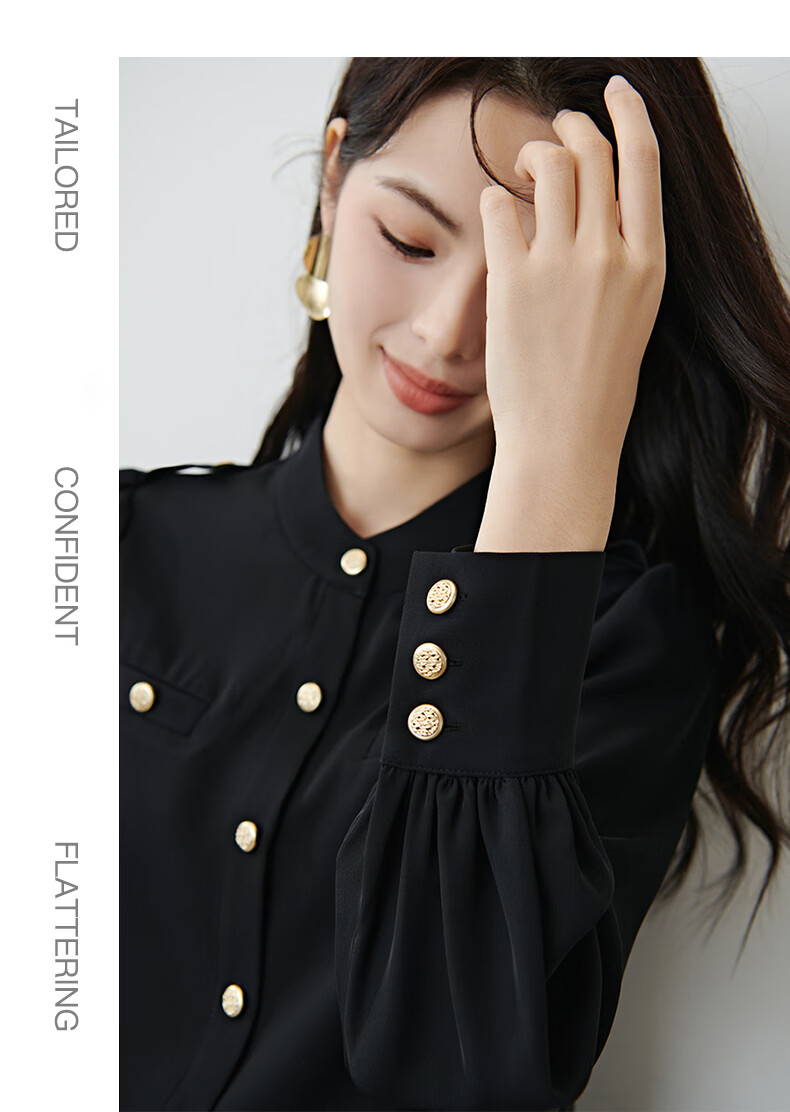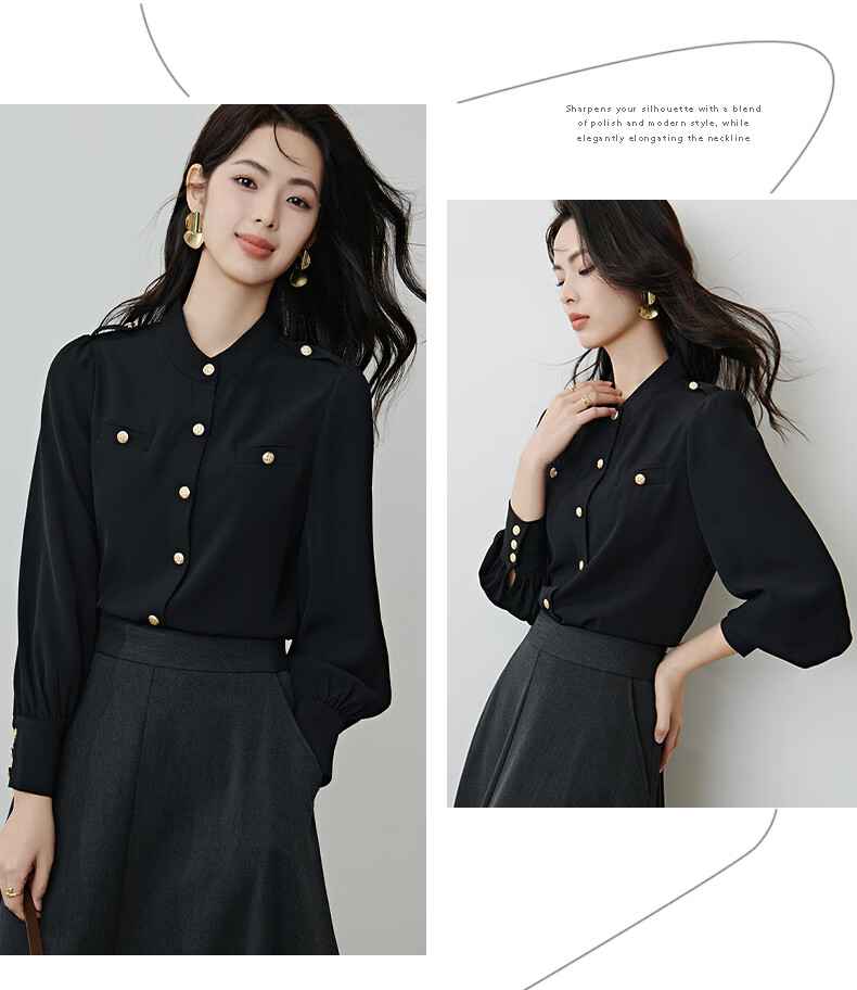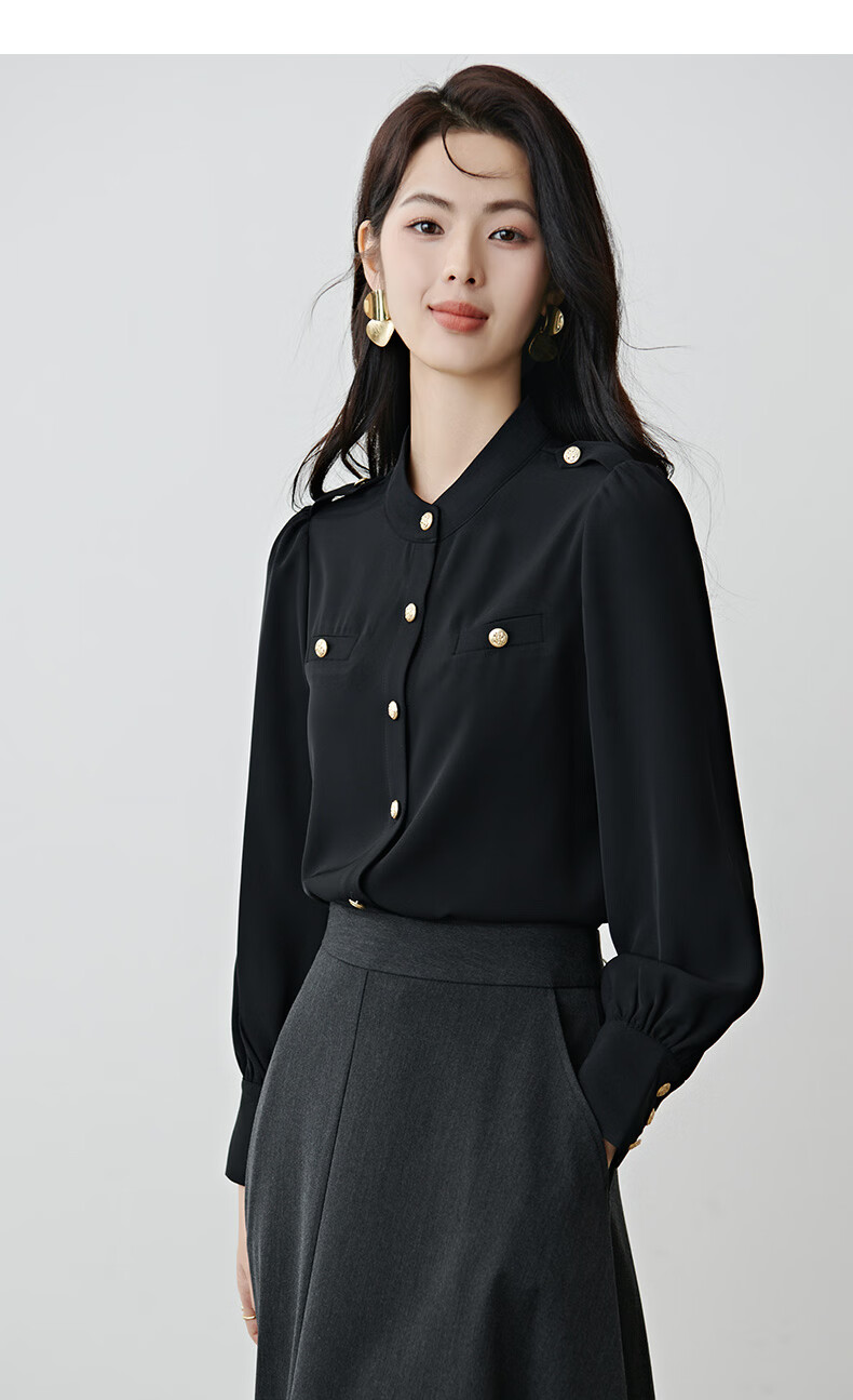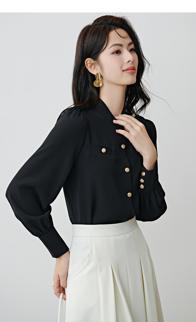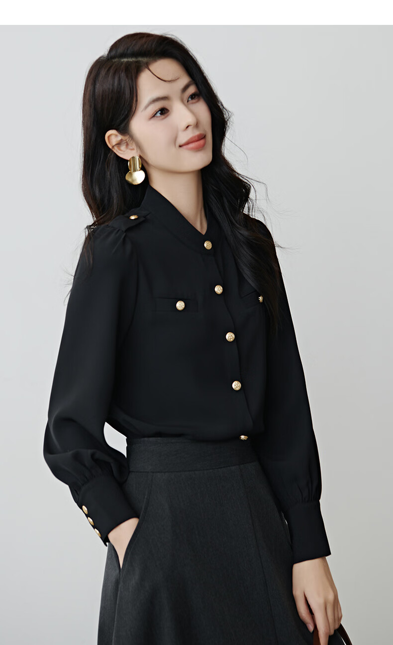 晚白【新品】2026春款气质小立领正肩上衣垂顺利落千金风小香衬衫女 黑色 M