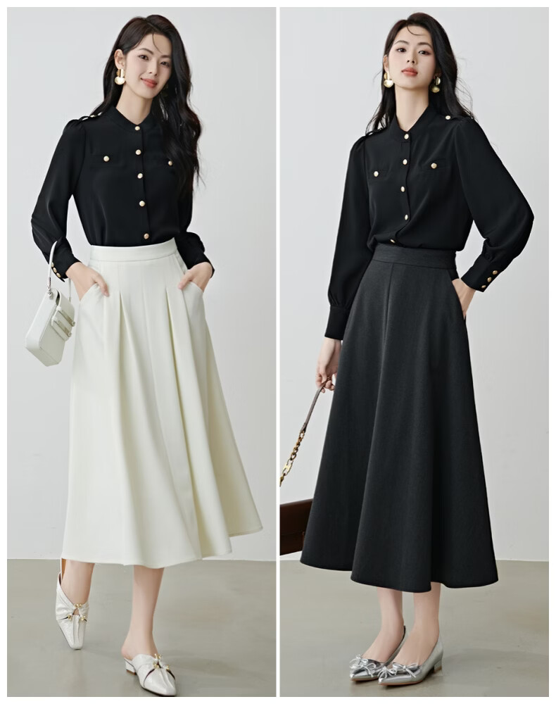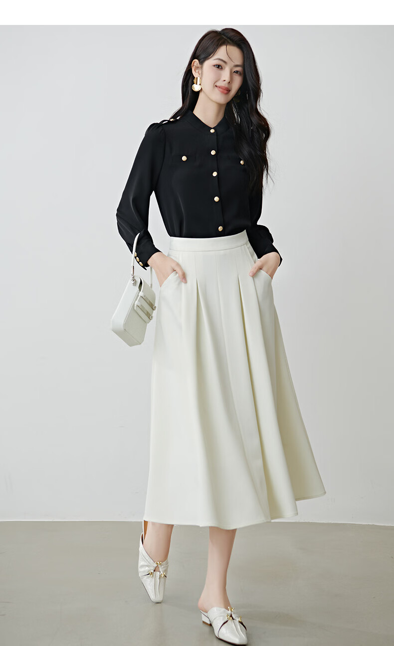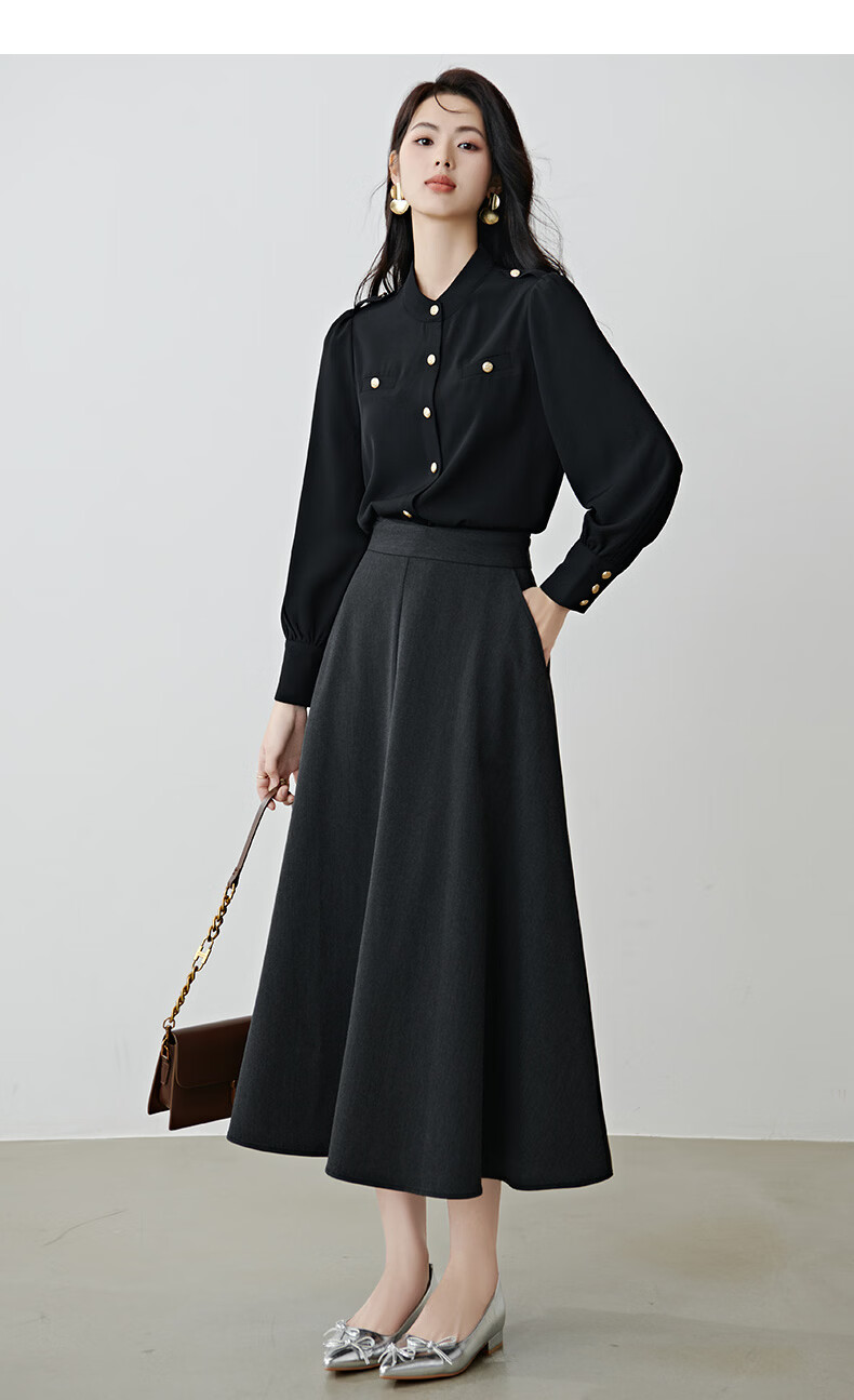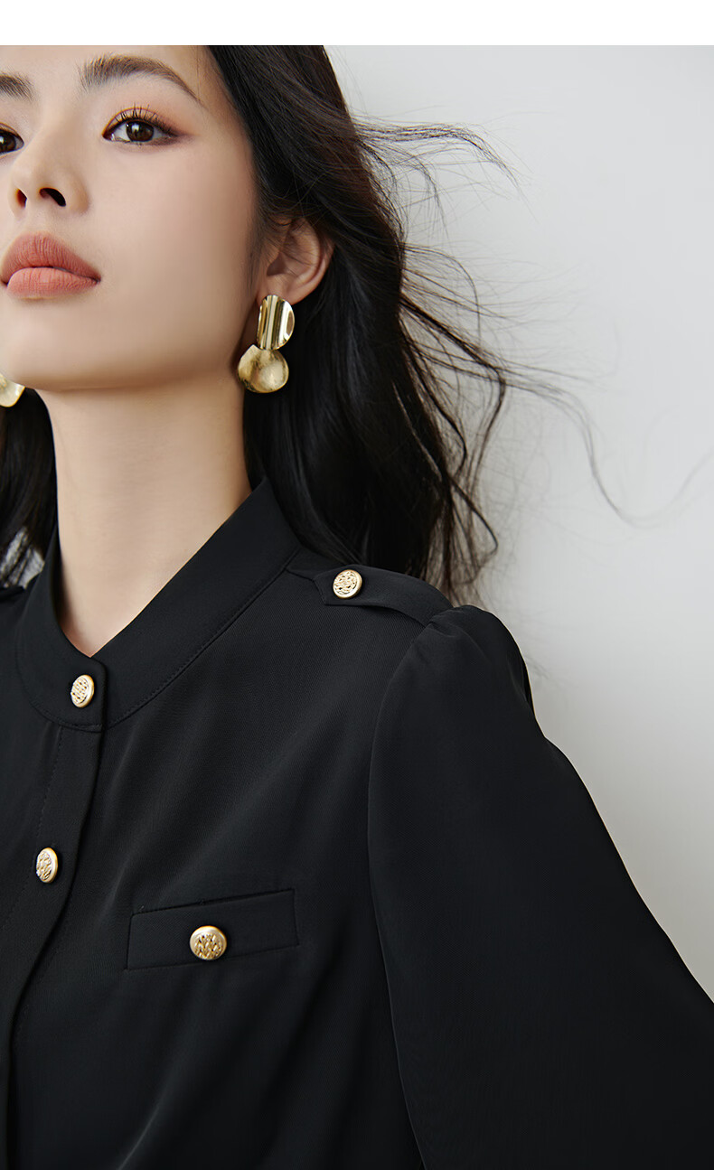 晚白【新品】2026春款气质小立领正肩上衣垂顺利落千金风小香衬衫女 黑色 M