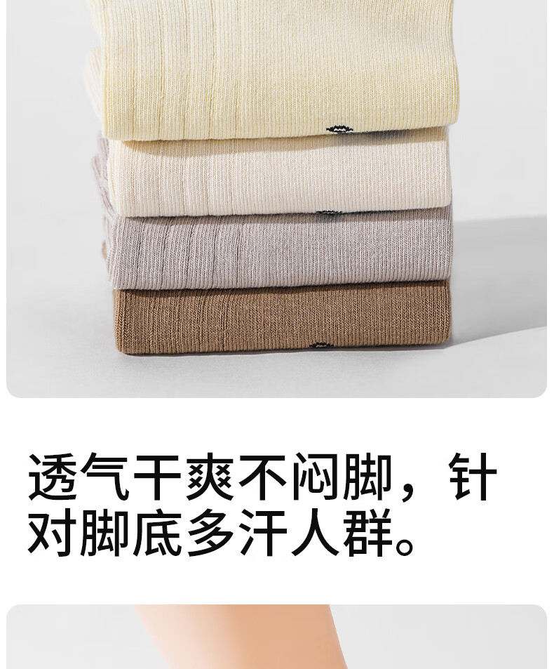 361°男士袜子男棉袜透气吸汗长筒袜抗菌防臭休闲舒适撞色中筒袜 混色10双装